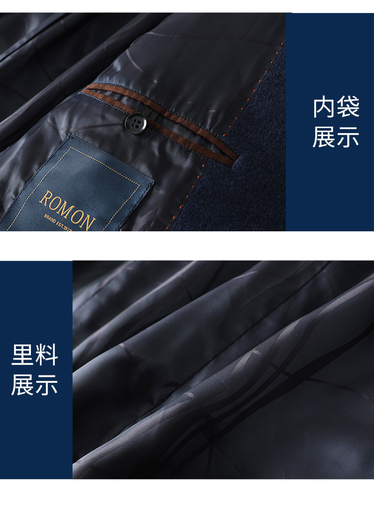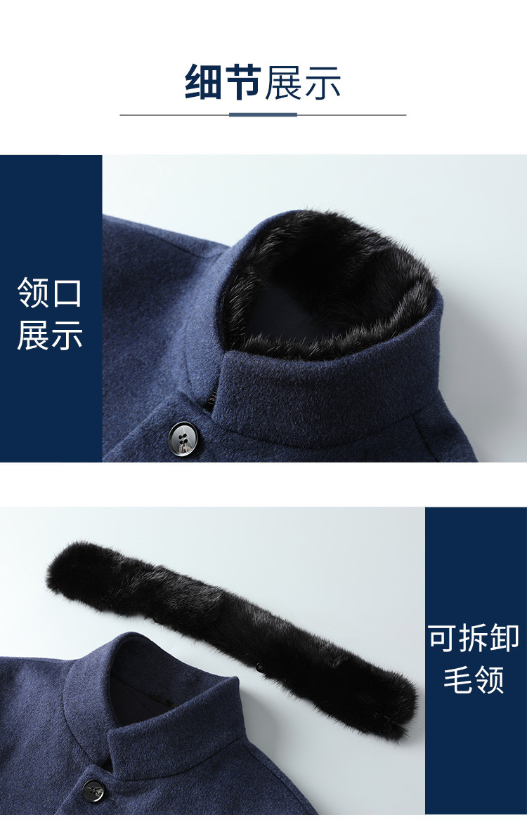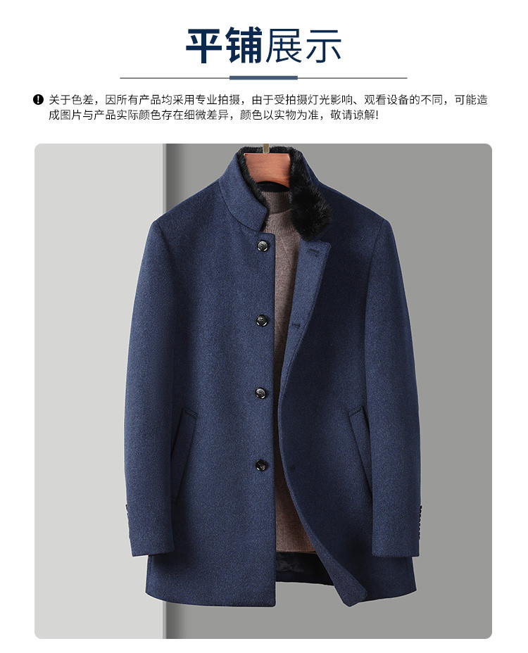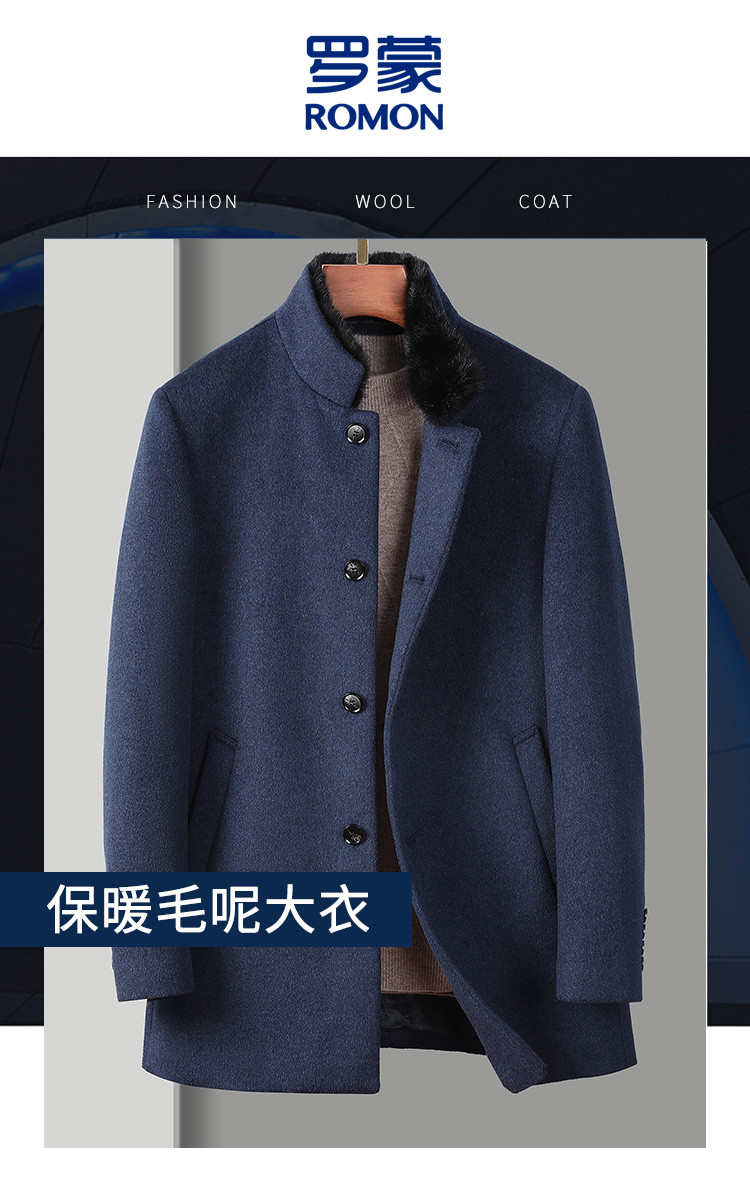 30W2330【100绵羊毛 水貂毛领】罗蒙秋冬男装毛呢大衣男士可脱卸毛领羊毛大衣男羊毛呢子外套