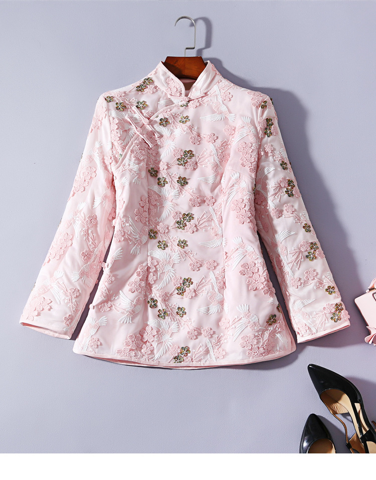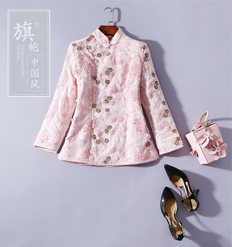 ZSM-181111冬季新款修身水溶绣花旗袍上衣