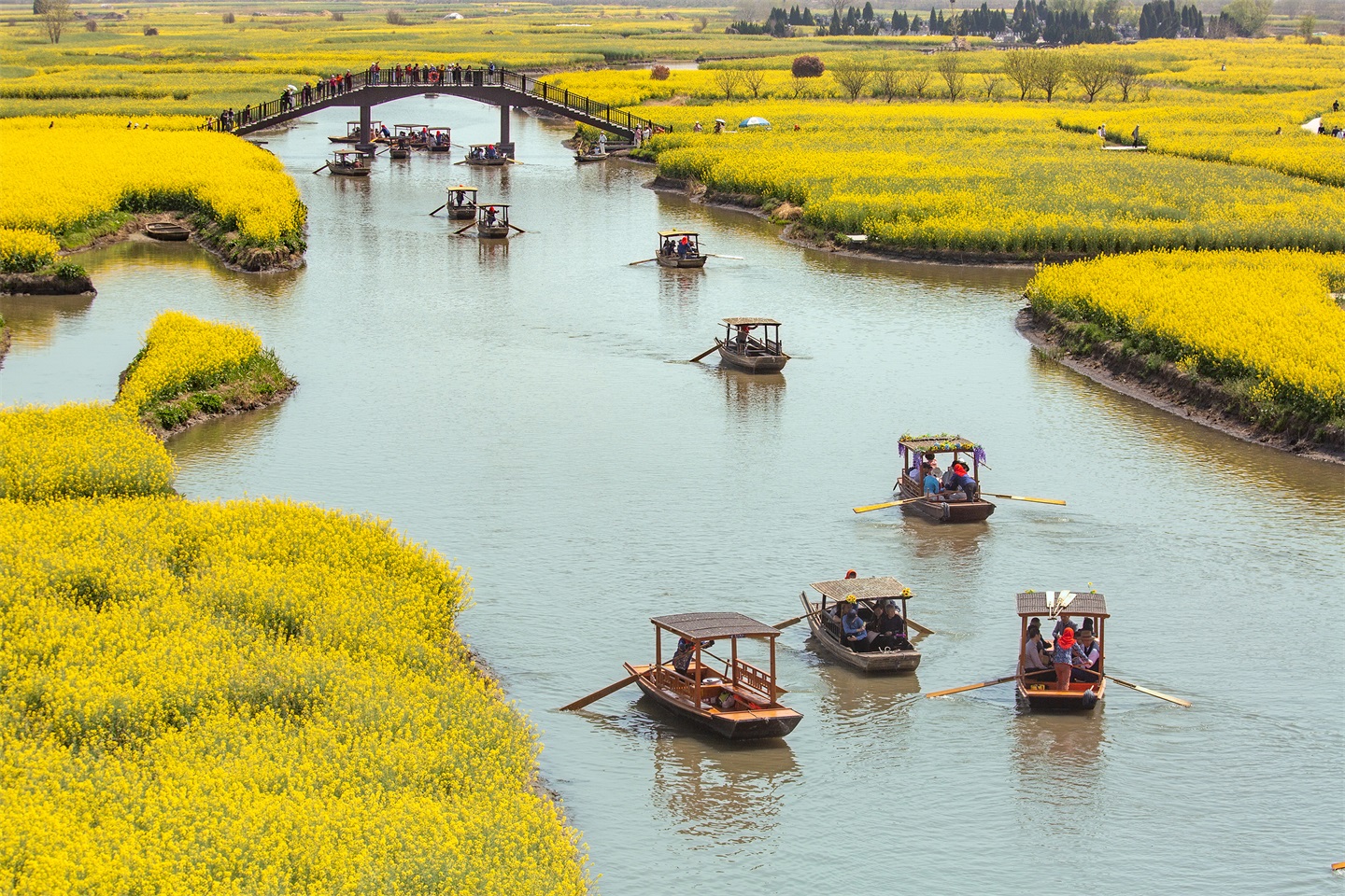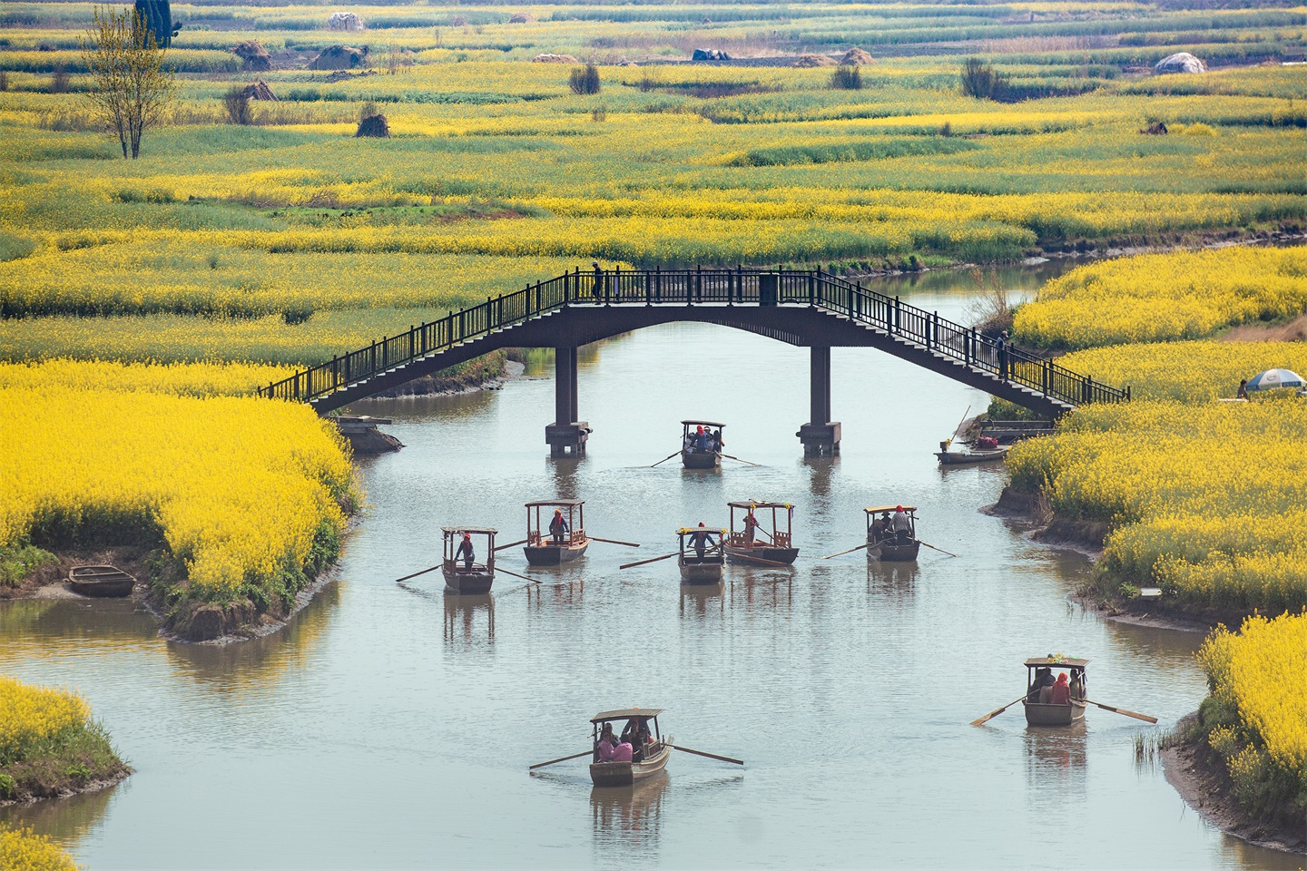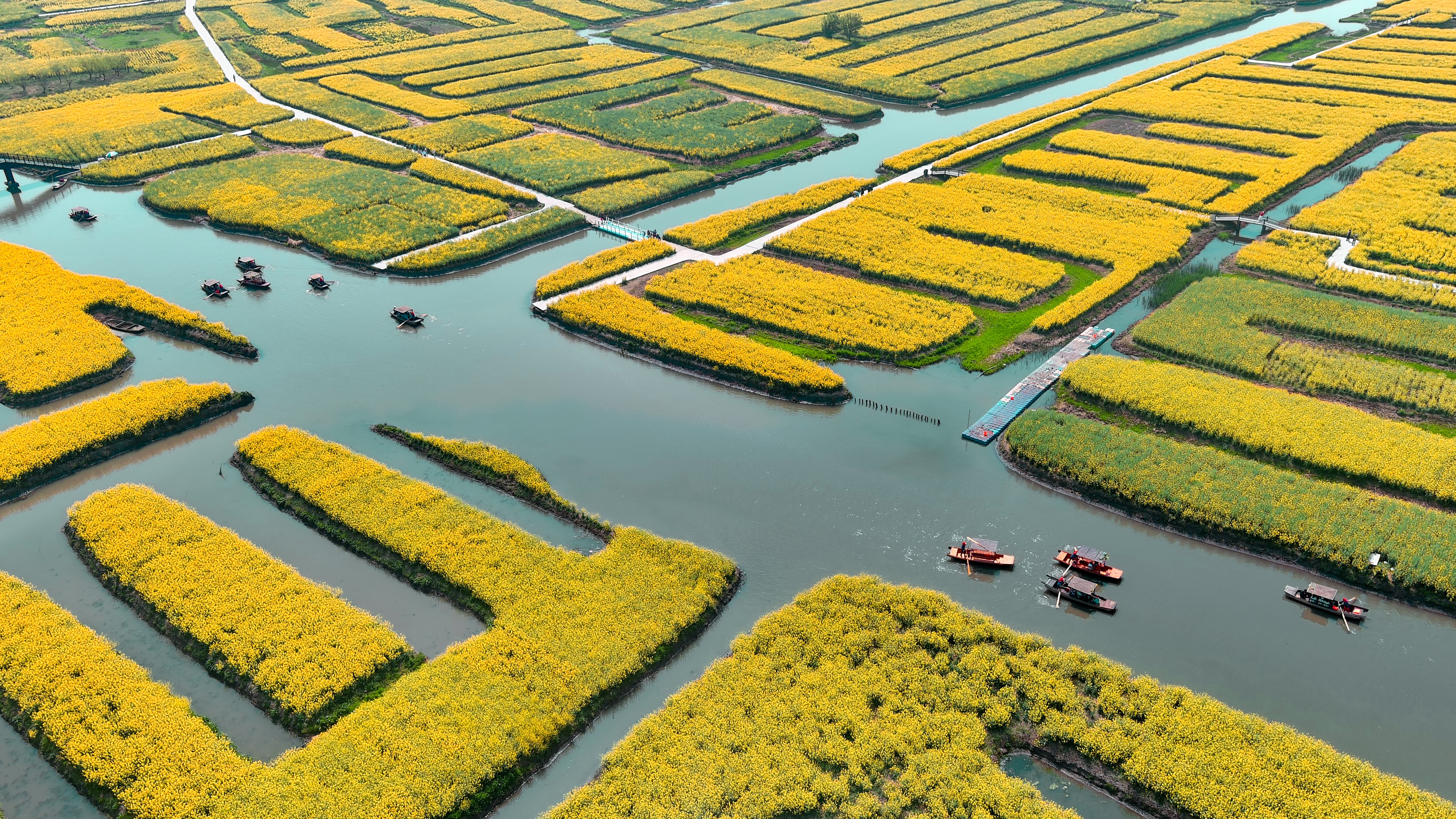 垛田油菜花:兴化特色地貌,金黄花海点缀水网村落,田埂蜿蜒、水系纵横,是春日田园风光摄影的必拍点位。