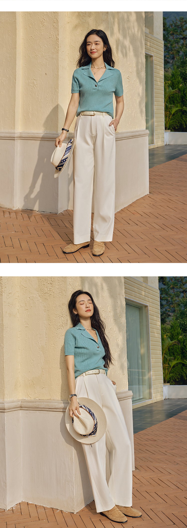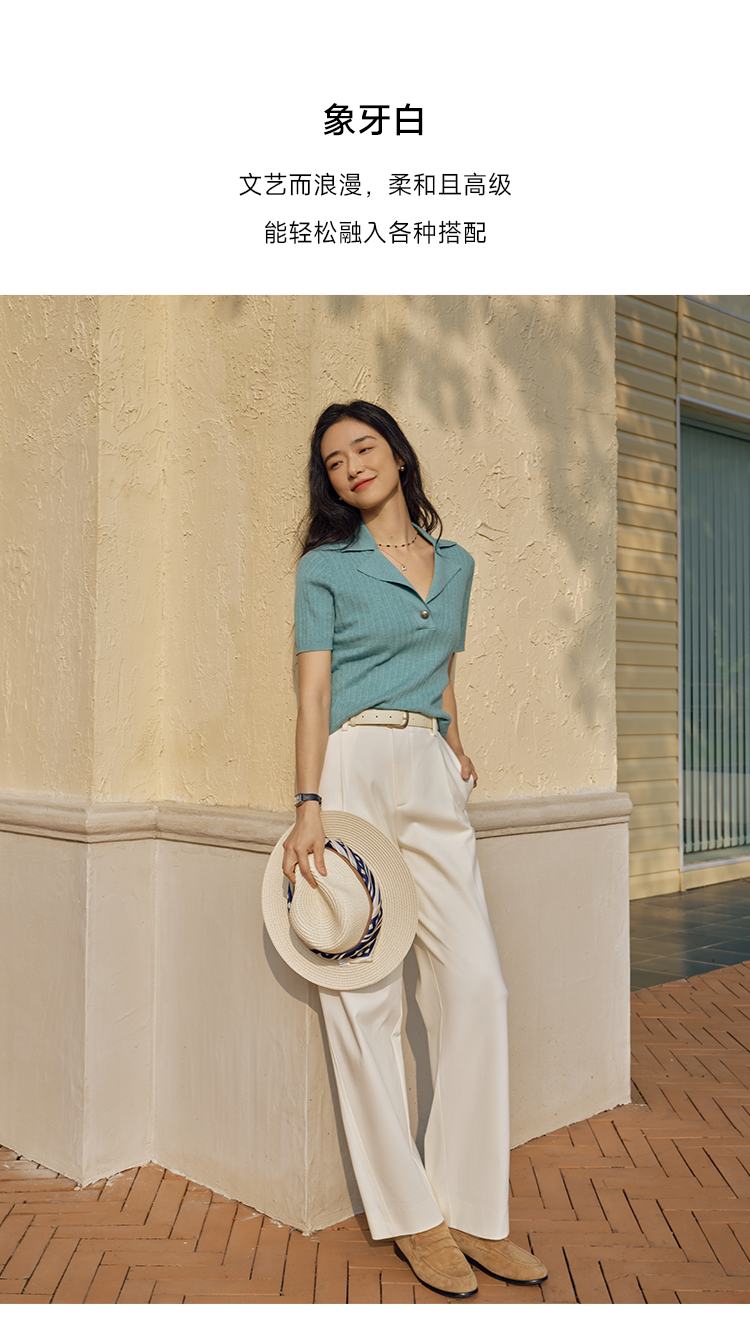 60极细美丽诺羊毛 麦秆黄POLO领套头毛衫FCF3WST072