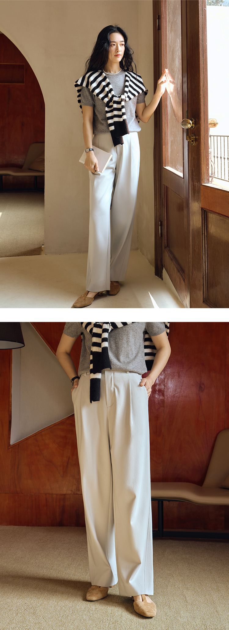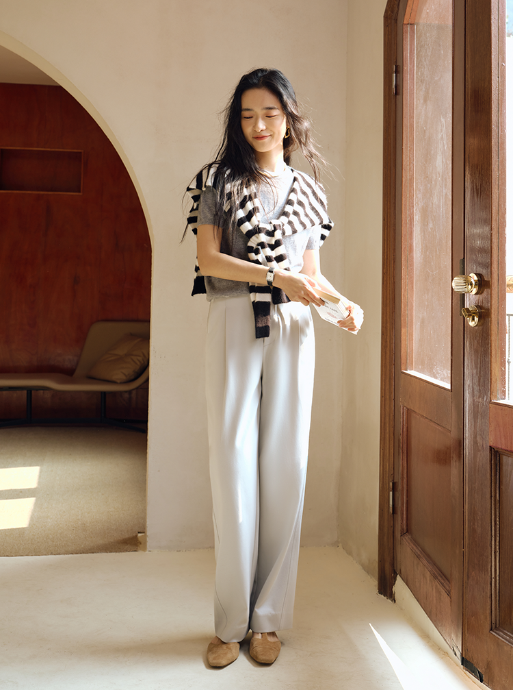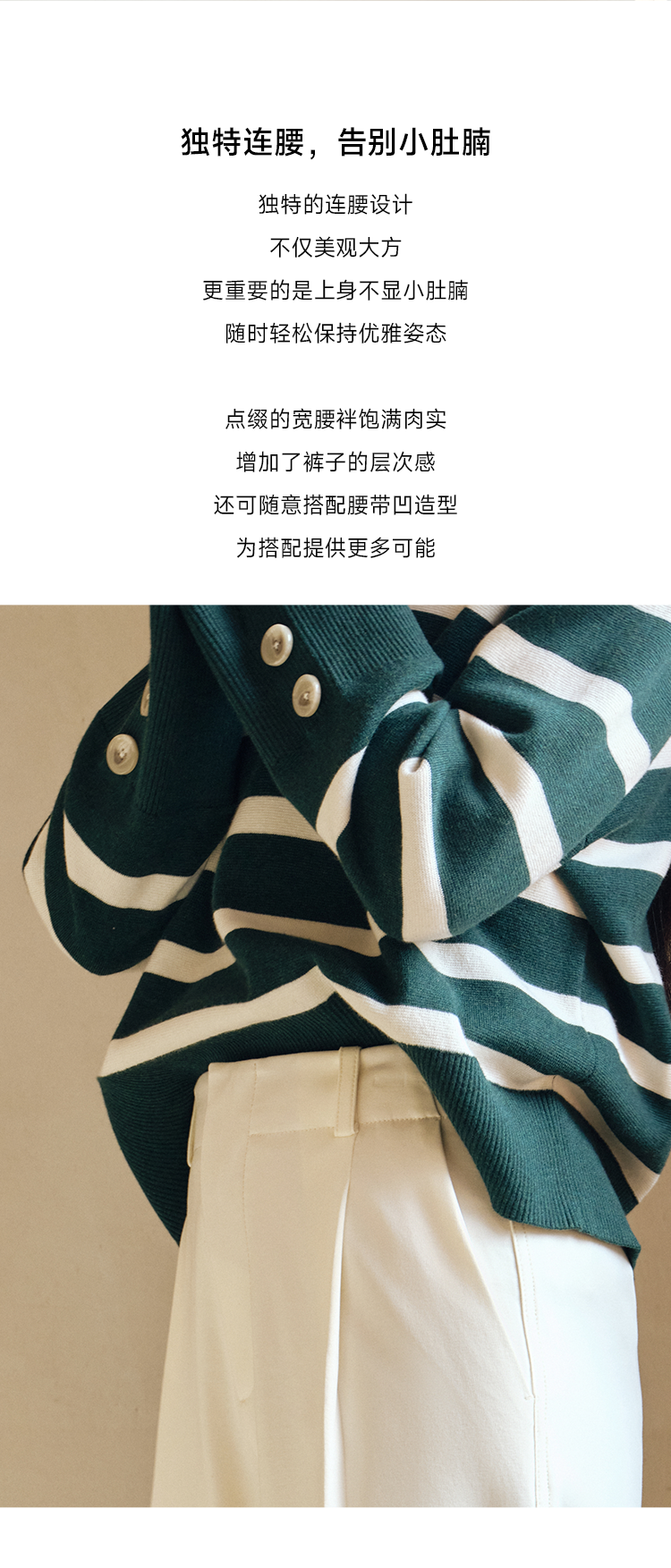 休闲V领真丝有机棉混纺条纹毛衫FCF1WST028