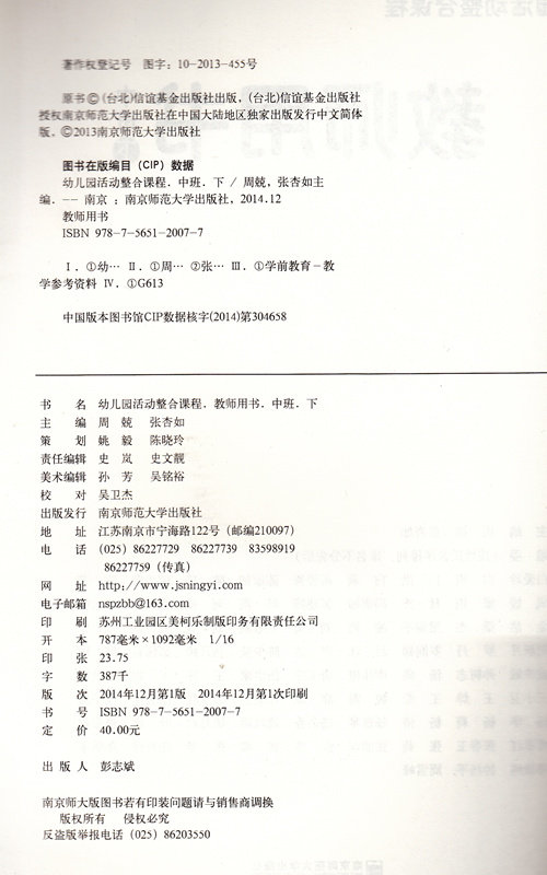 新版 幼儿园活动整合课程教师用书中班下册 南京师范大学 信谊 周兢,张杏如