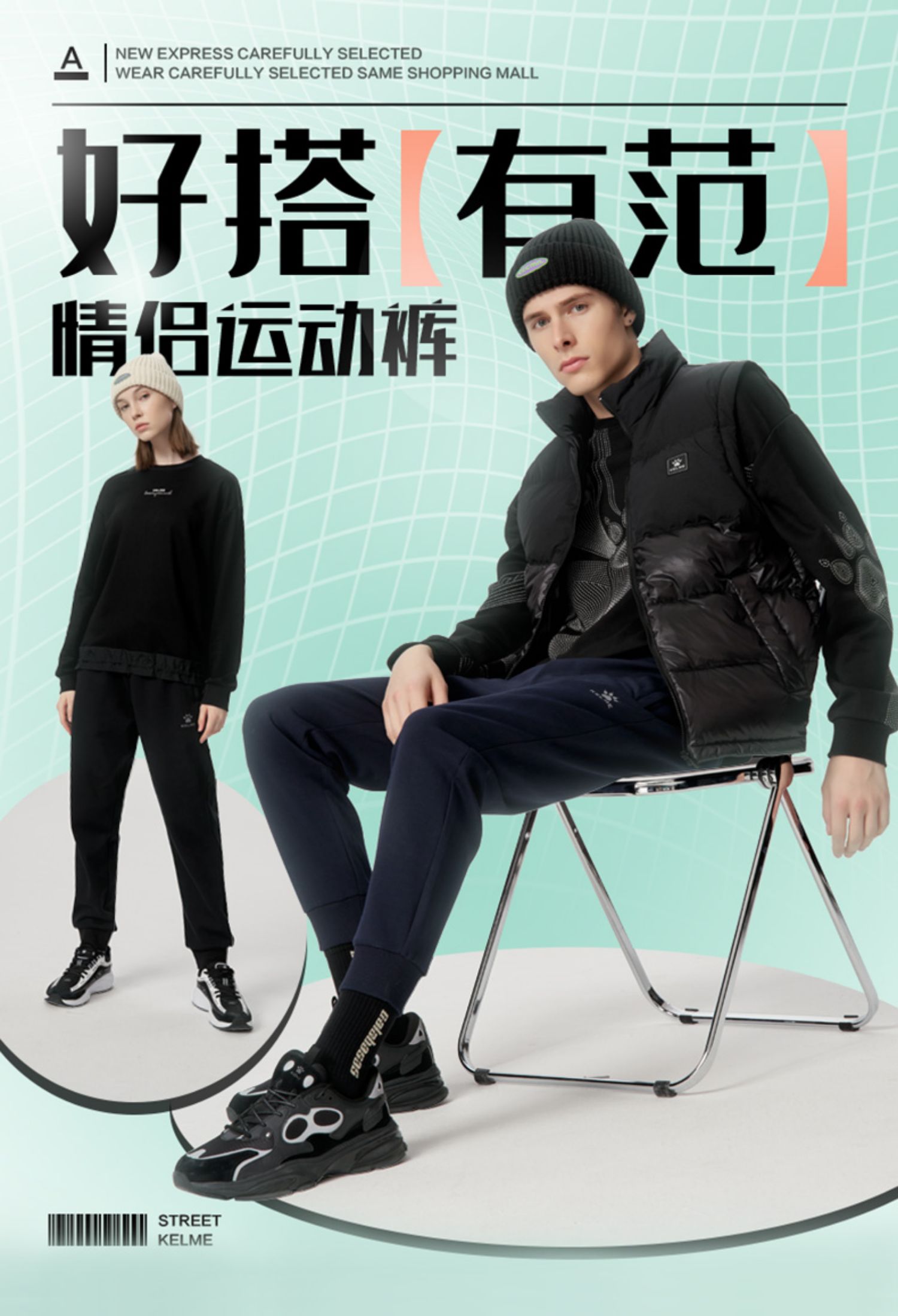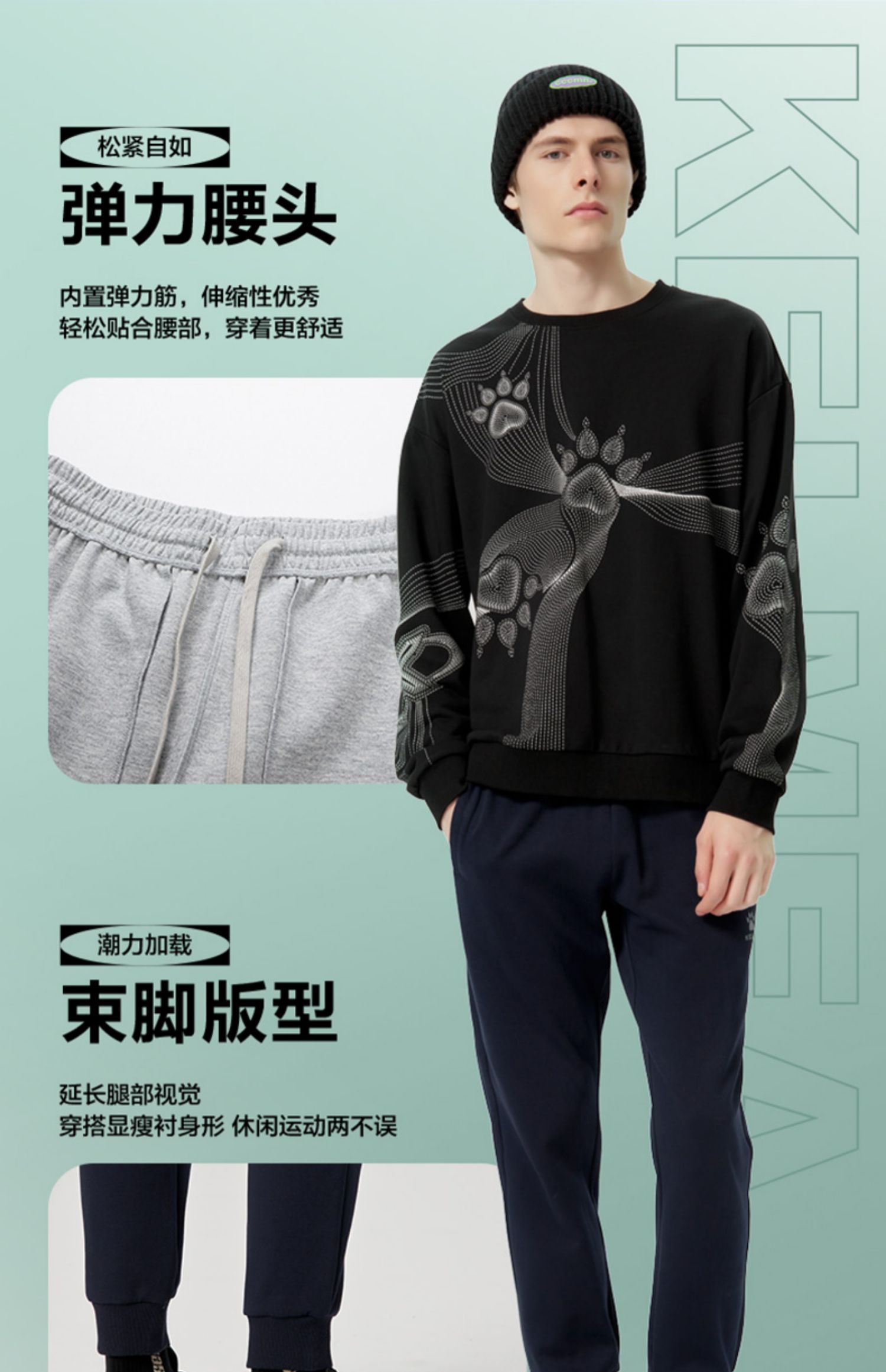 卡尔美运动裤男士秋季新款针织薄休闲宽松束脚长卫裤