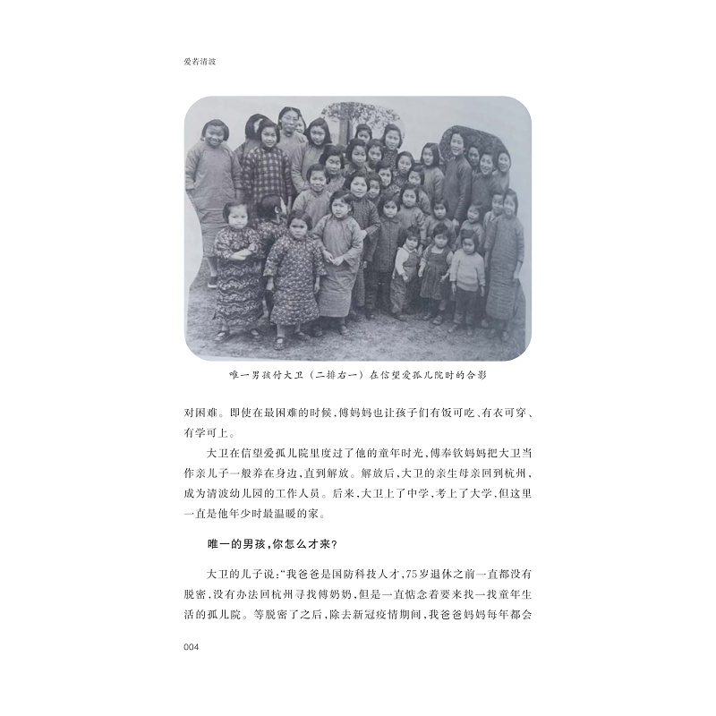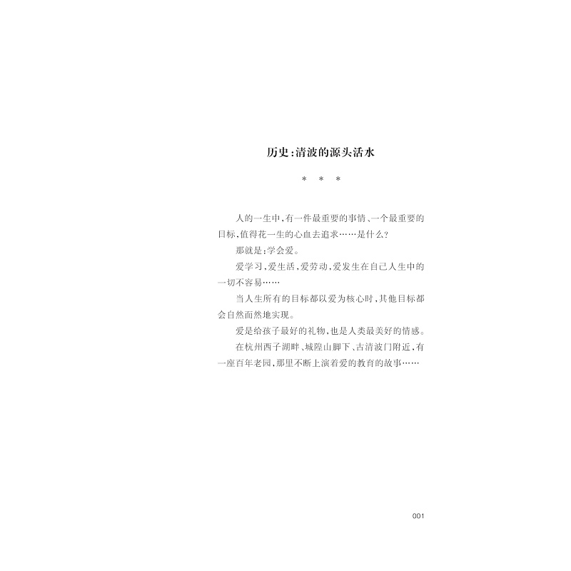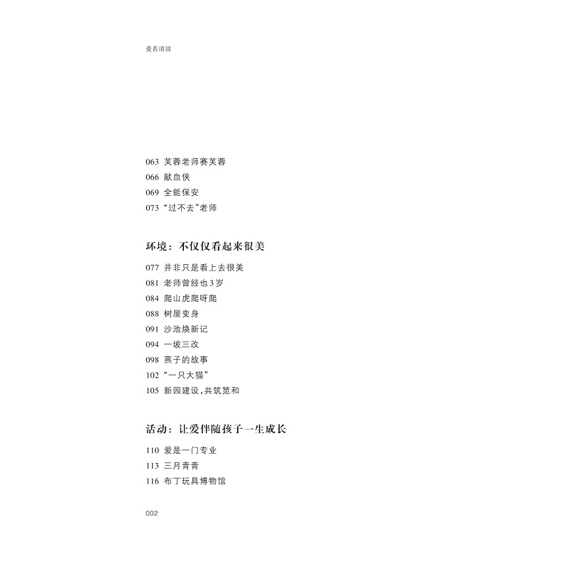 杭州市清波幼儿园爱的教育源远流长,作为一所创办于1929年的近百年老校,前身为信望爱孤儿院,学校坚持以爱育人、以情化人,文脉庚续,薪火相传。本书通过教师、家长、幼儿等多方视角,讲述了清波幼儿园追寻爱的教育百年历程中发生的动人篇章。主要内容由六个部分构成:爱的追寻,爱的传导,爱的释放,爱的链接,爱的活动和爱的表达。“爱的追寻”从讲述了上世纪清波幼儿园的第一任园长傅奉钦等人的故事,是清波幼儿园的教育内核——爱;“爱的传导”展现了清波爱的内核的滋养下提炼出的爱的艺术与智慧,把爱融入日常管理与教育中的经验与收获;“爱的释放”、“爱的链接”、“爱的活动”和“爱的表达”讲述了清波幼儿园的教职工、家长与幼儿等“清波人”爱的故事,在传承中创新,赋予爱的教育以新的历史意义。