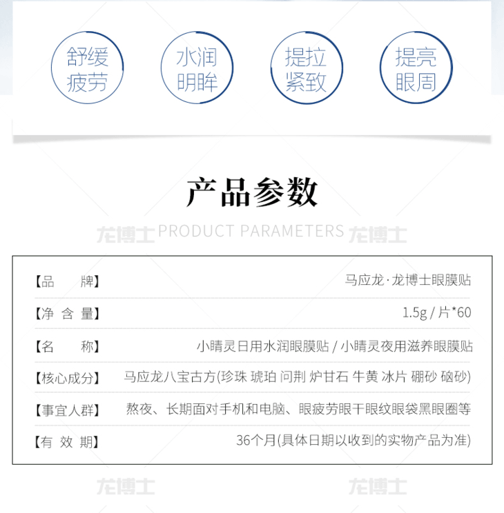 马应龙龙博士小睛灵日用水润眼膜贴夜用滋养眼膜八宝古方