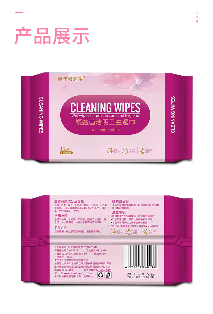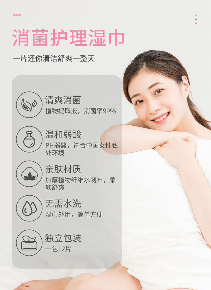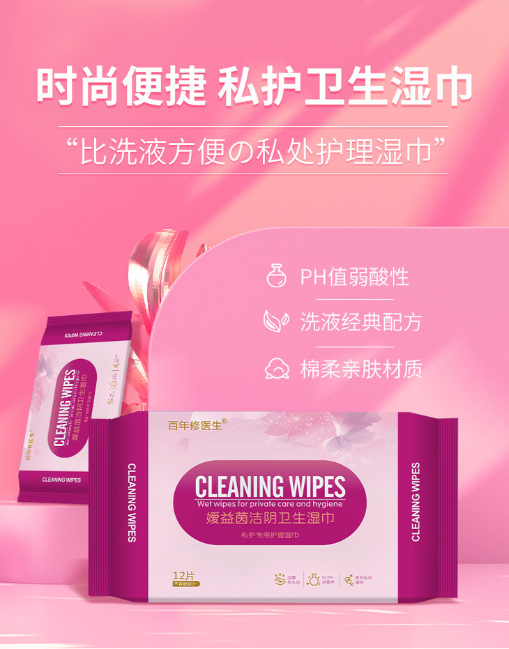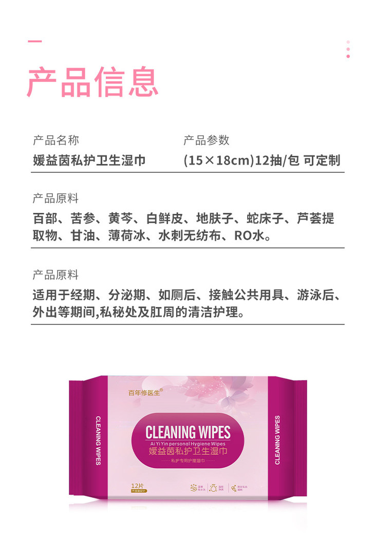【超值8包装】草本女士私护湿巾溶箘清炎去味清香呵护粉嫩亲肤柔软温和不刺激12片/包