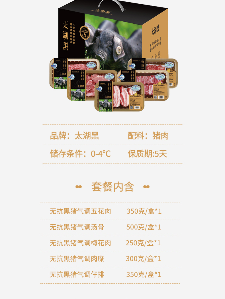 【直送到家】1650g太湖黑猪气调礼盒(冷鲜)(发货时间较长 慎重下单)
