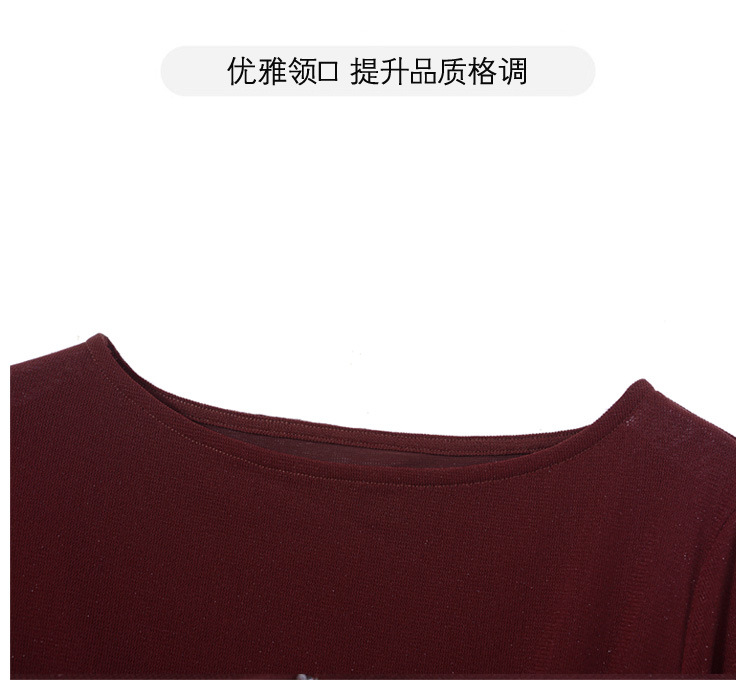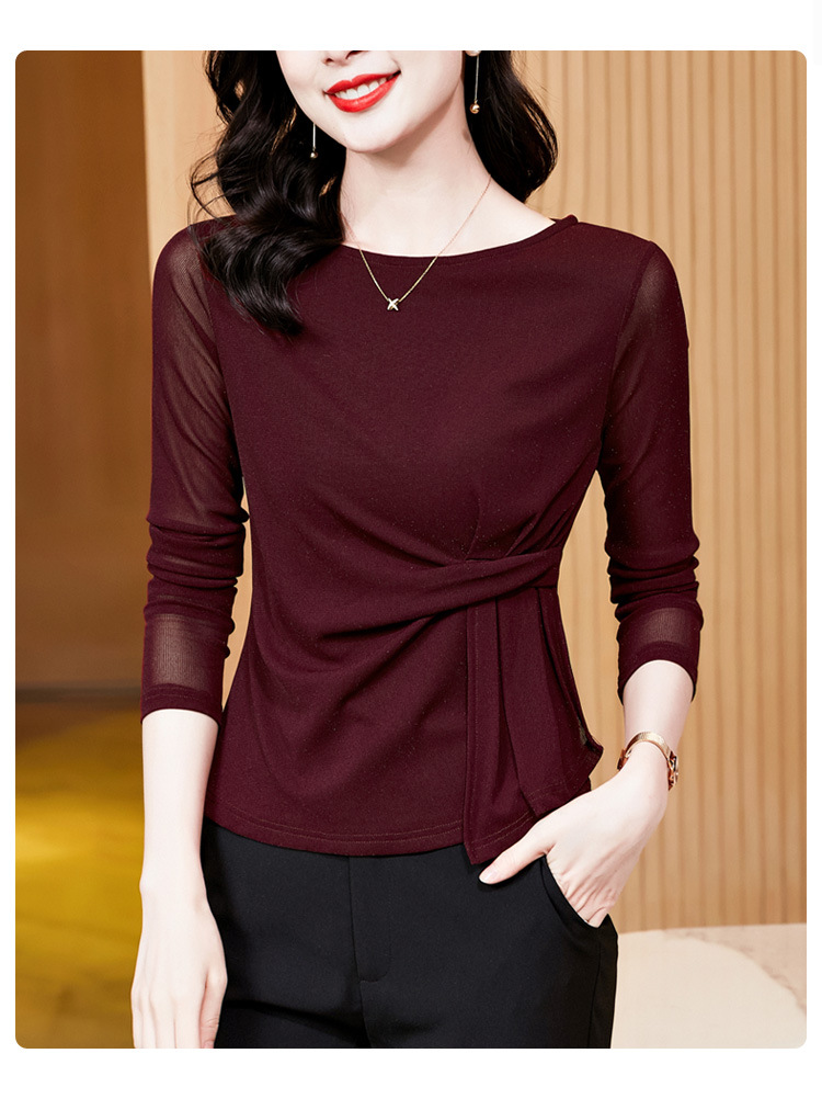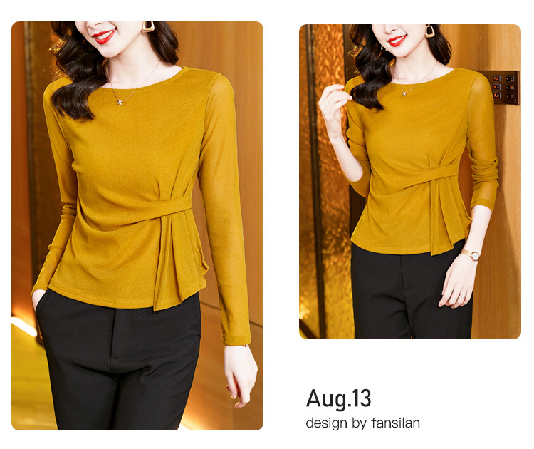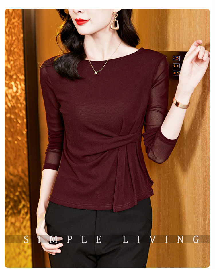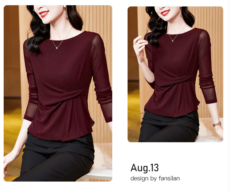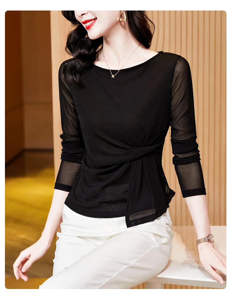KQL E37M2925洋气一字领纯色气质网纱长袖打底衫t恤