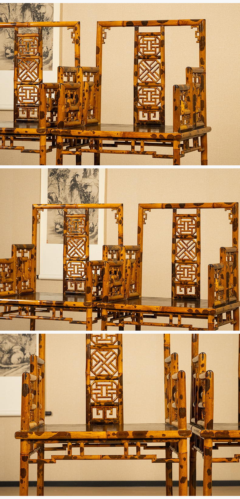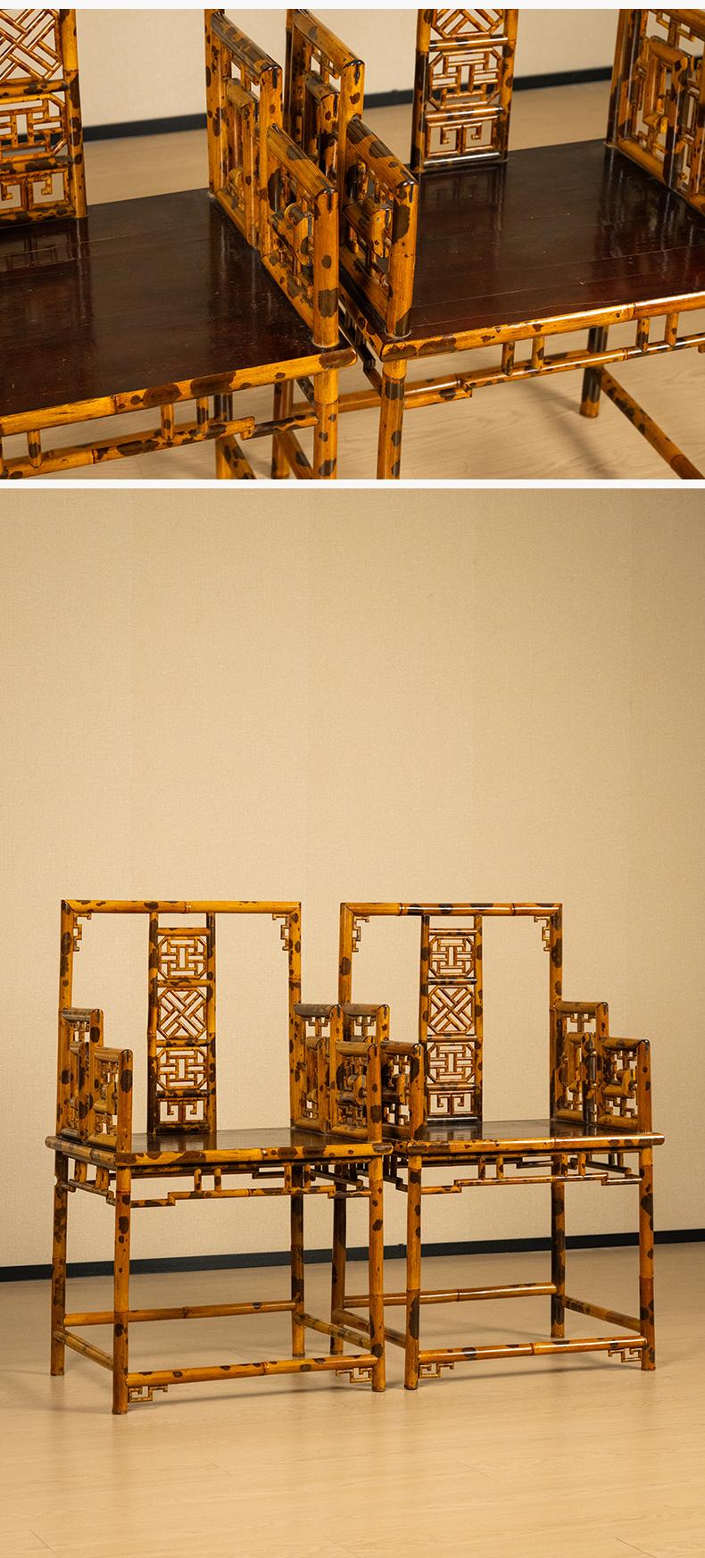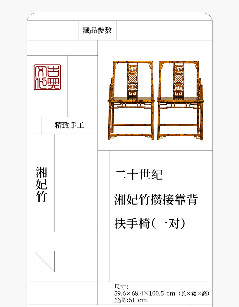 二十世纪 湘妃竹攒接靠背扶手椅(一对)