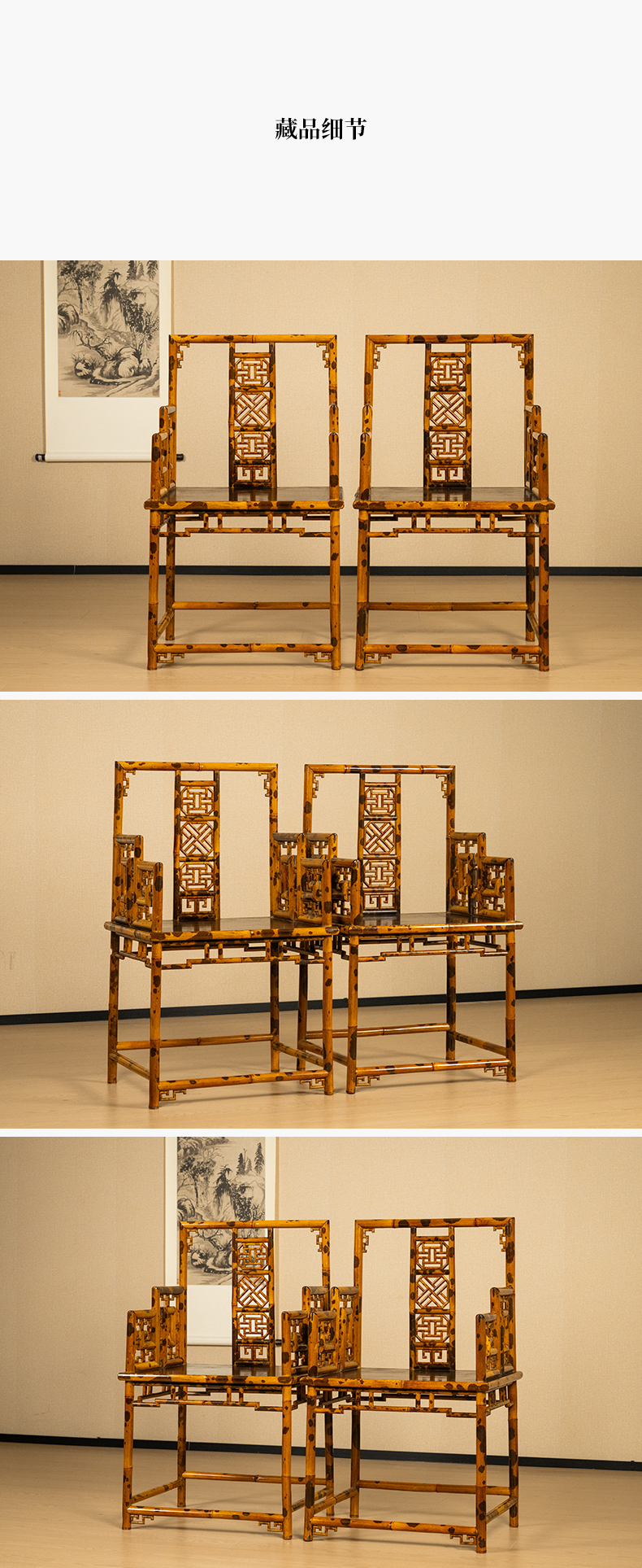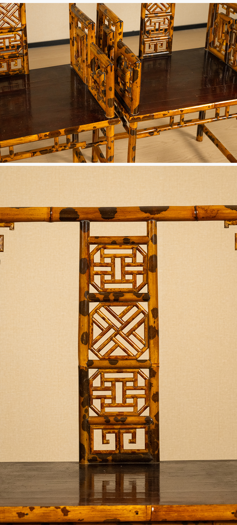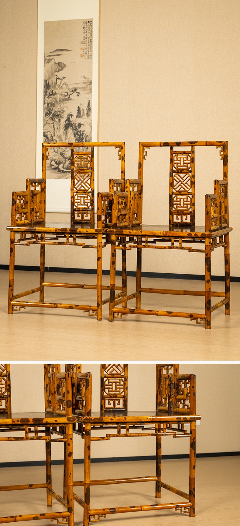 二十世纪 湘妃竹攒接靠背扶手椅(一对)