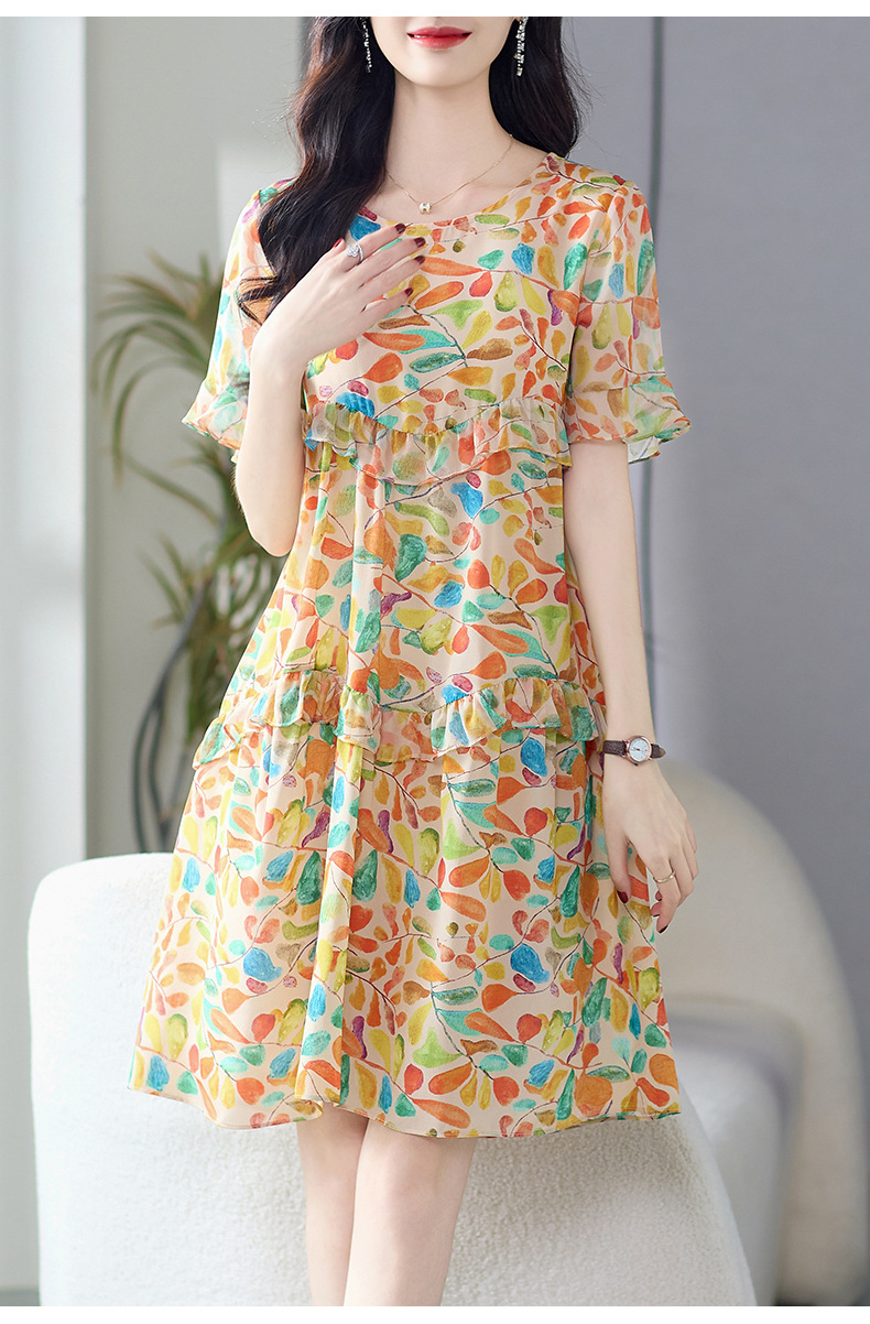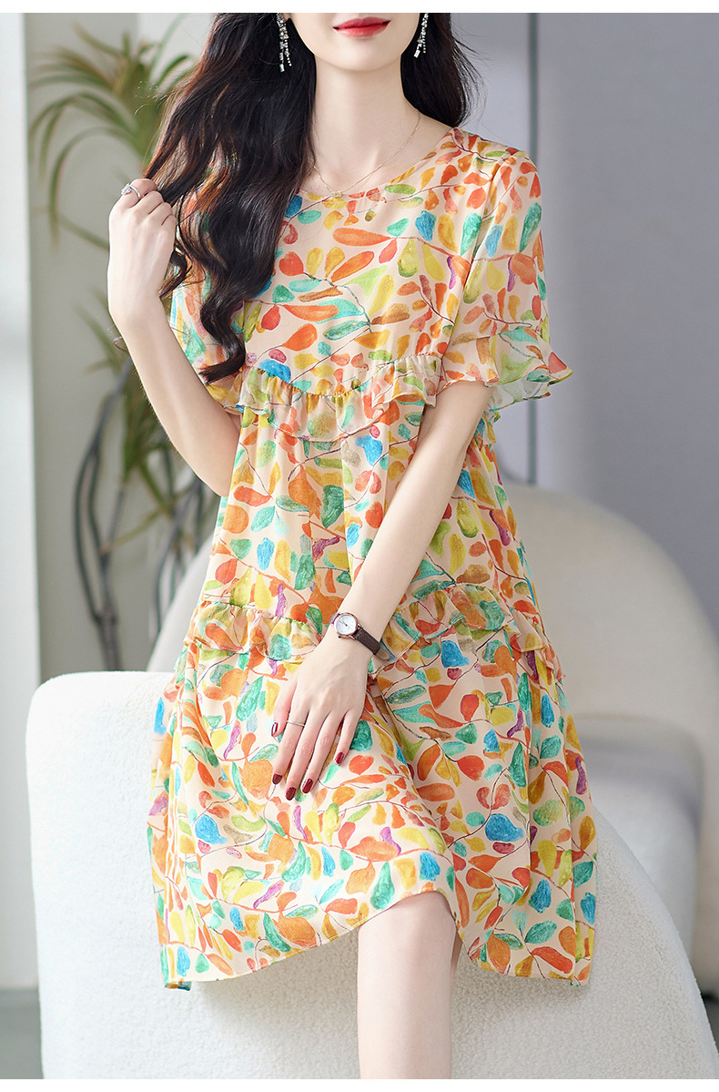 WWM-69508夏日绝美小裙子橘色碎花裙真丝桑蚕丝连衣裙女夏2025新款