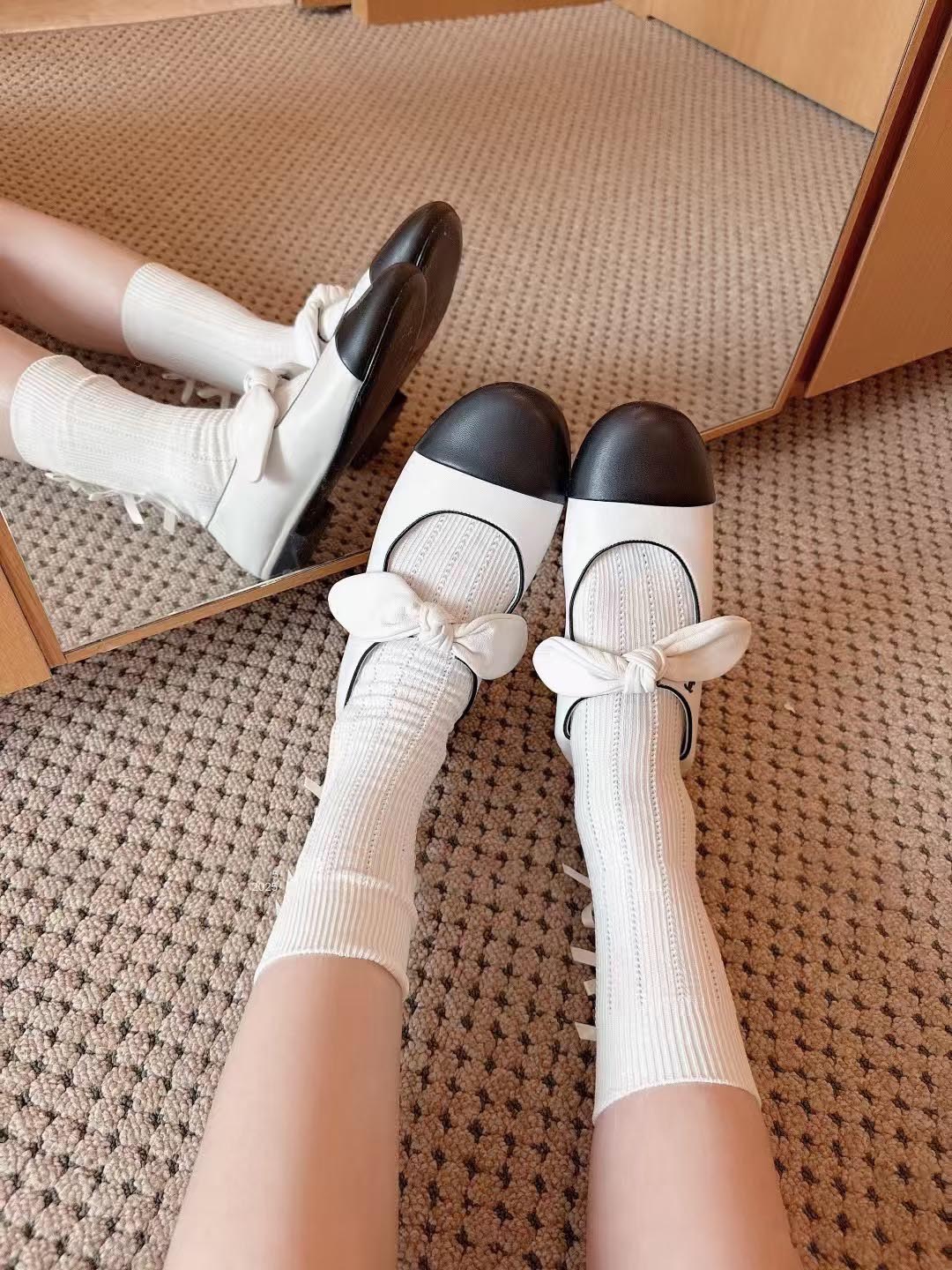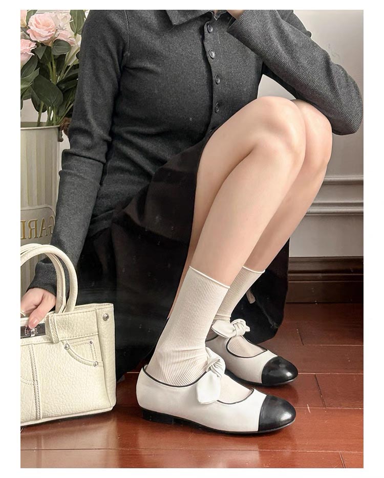 洛诗琳34149明星同款法式小香风设计感拼色浅口真皮玛丽珍鞋003