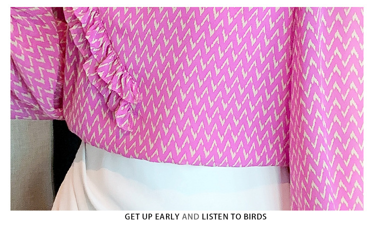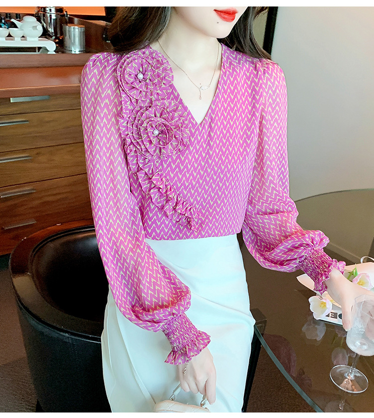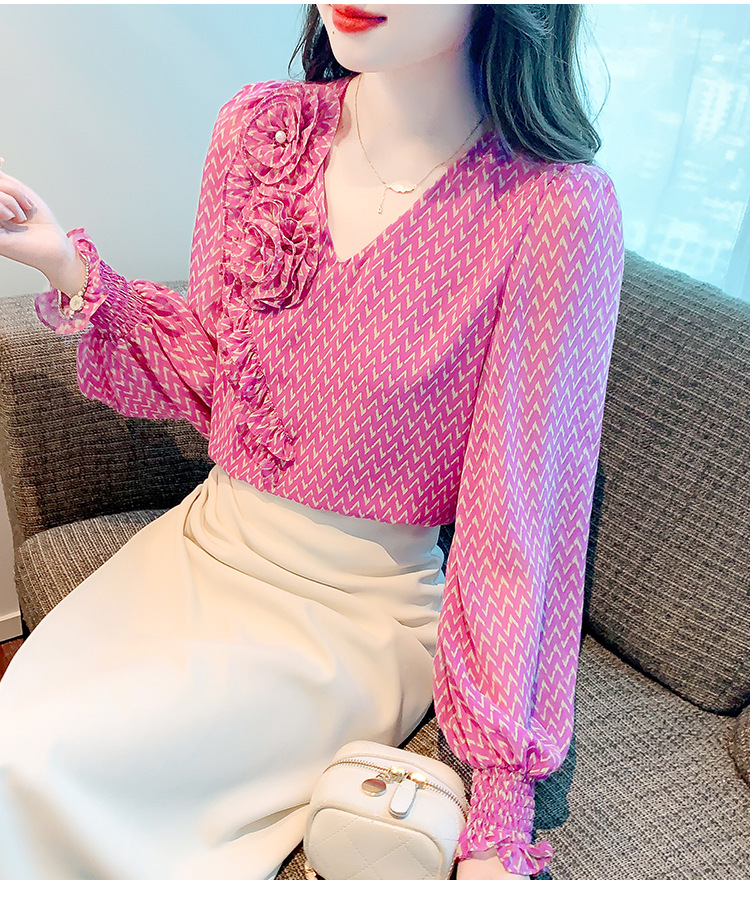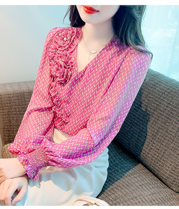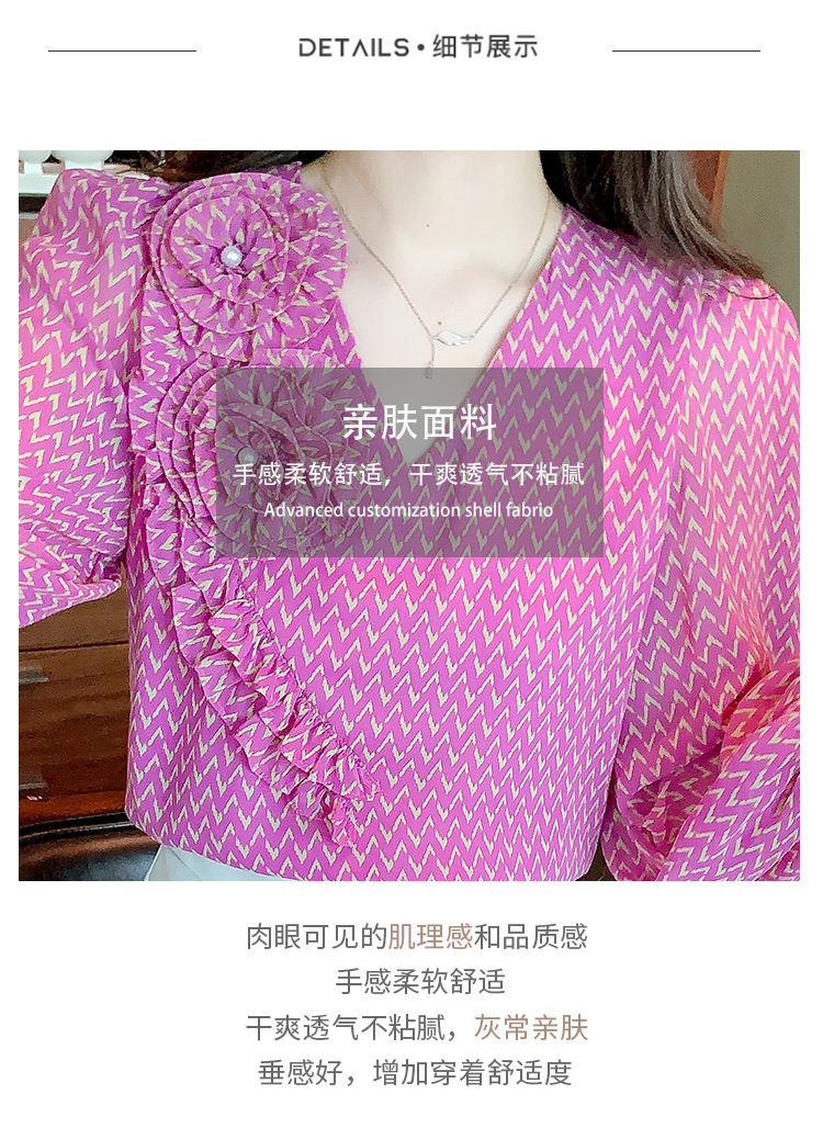 AHMlsyj7600玫瑰红色洋气减龄衬衫女2023秋季新款法式小众设计感印花长袖上衣 商品图3