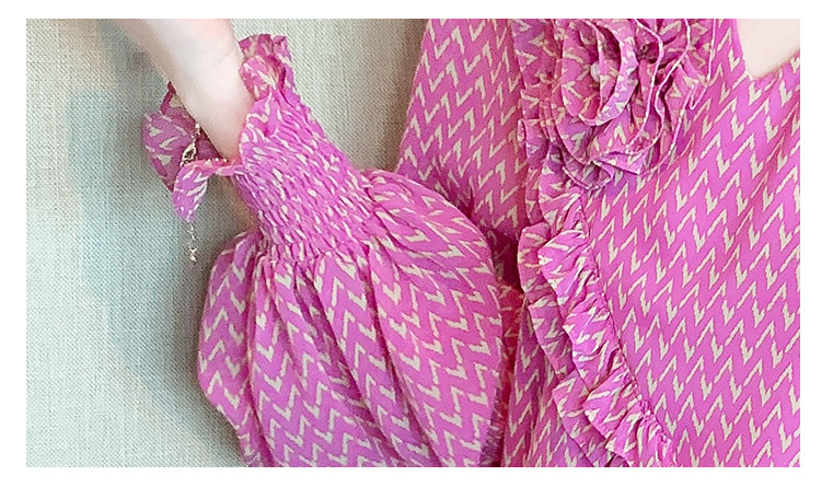 AHMlsyj7600玫瑰红色洋气减龄衬衫女2023秋季新款法式小众设计感印花长袖上衣 商品图4