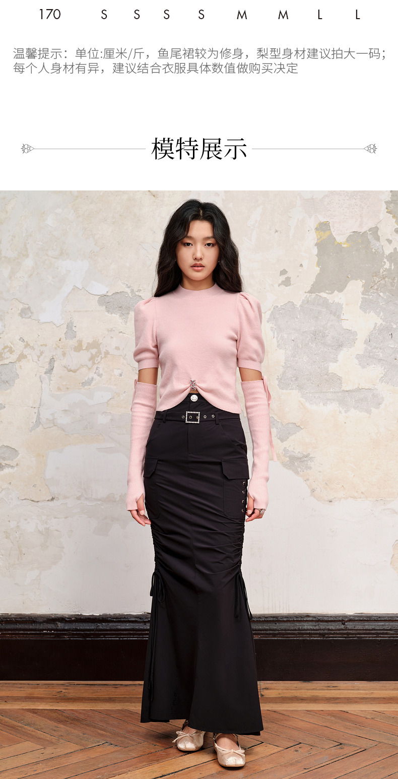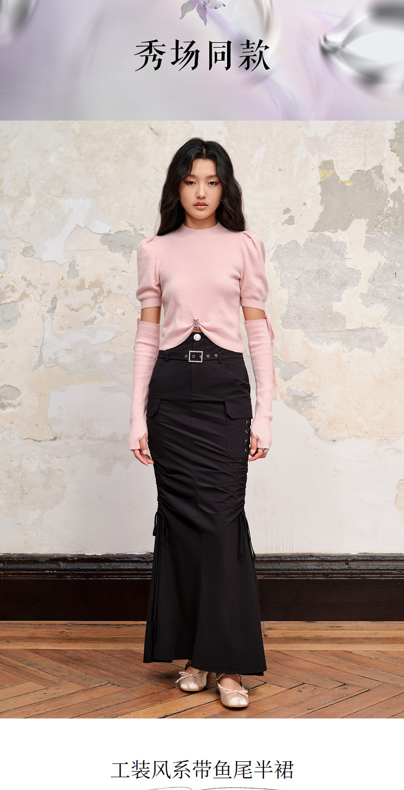 【城市芭蕾系列-商场同款】MAXRIENY芭蕾工装风系带鱼尾半裙23秋(货号:MC88SK615)