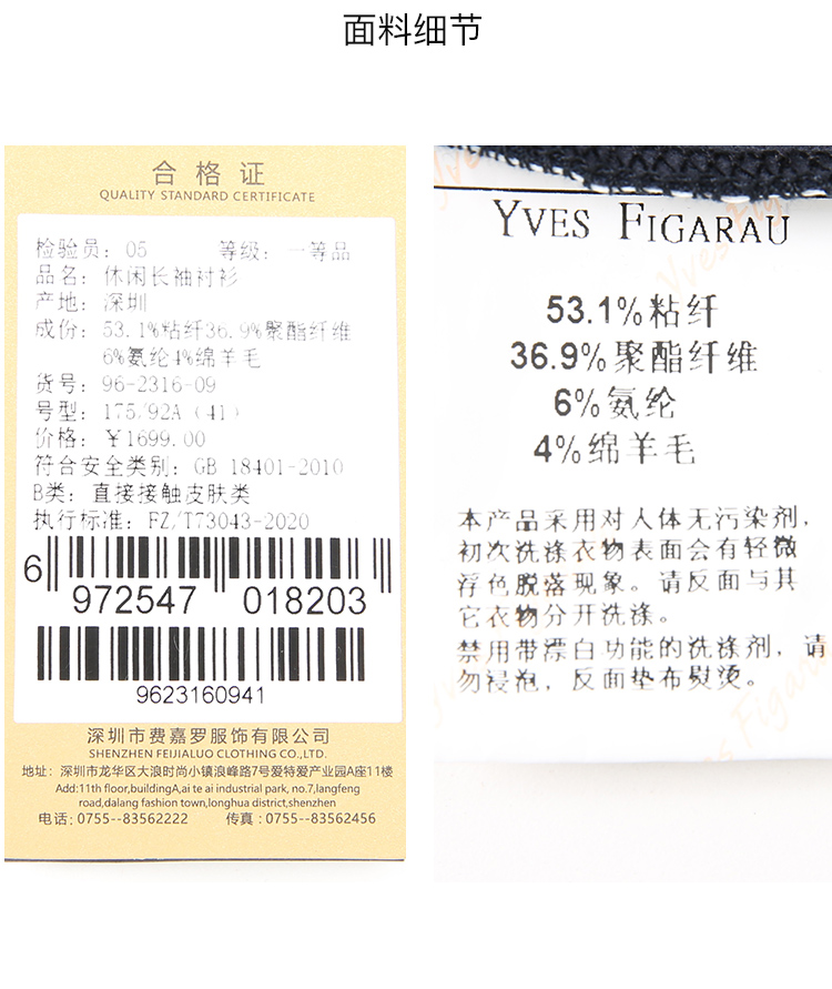 YvesFigarau伊夫·费嘉罗休闲长袖衬衫962316