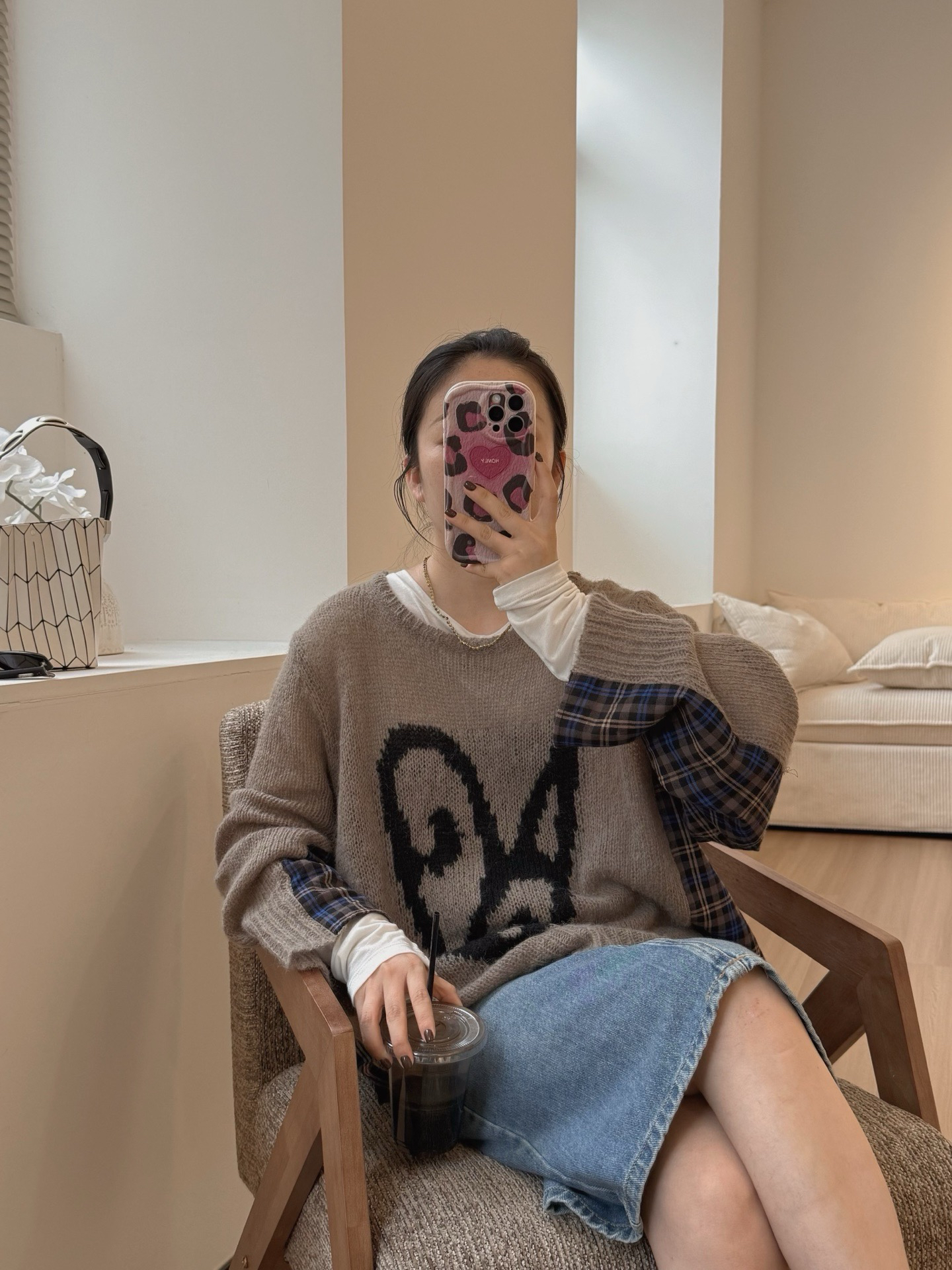 经典圆领慵懒又松弛,袖长衣长都很足,有种将人围裹起来的感觉,人在衣中晃的空荡感,显得很娇小很纸片人!