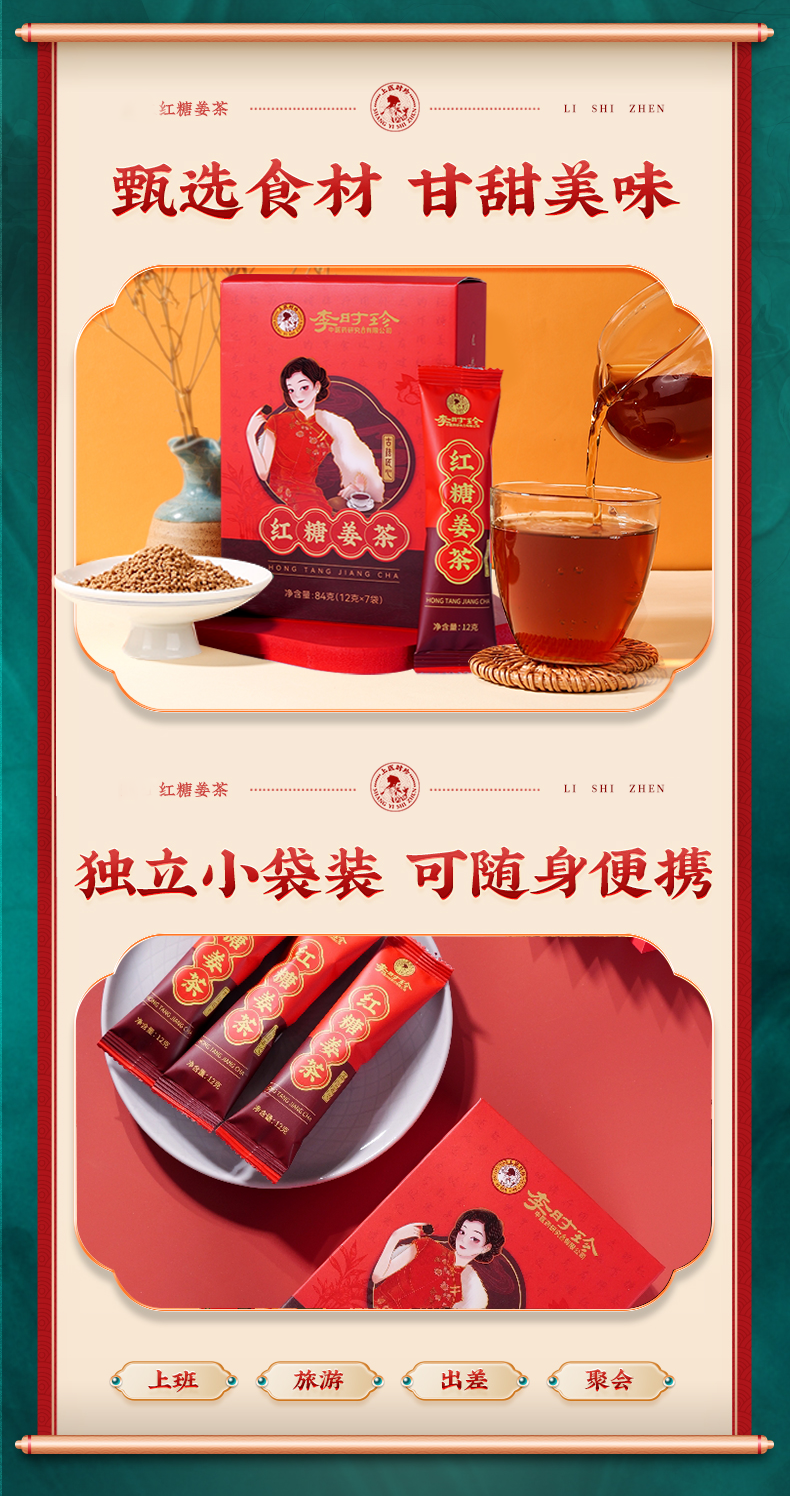 【买5送4 】李时珍红糖姜茶玫瑰红枣蜂蜜茶女性养生大姨妈