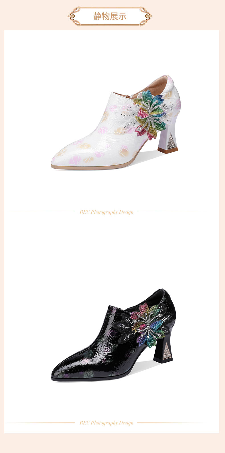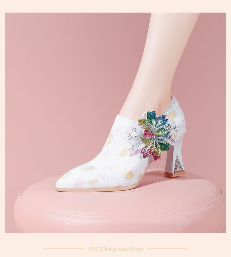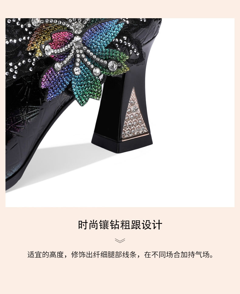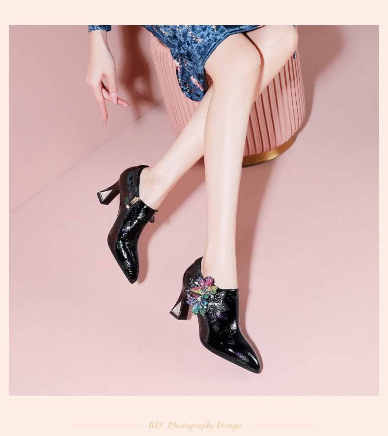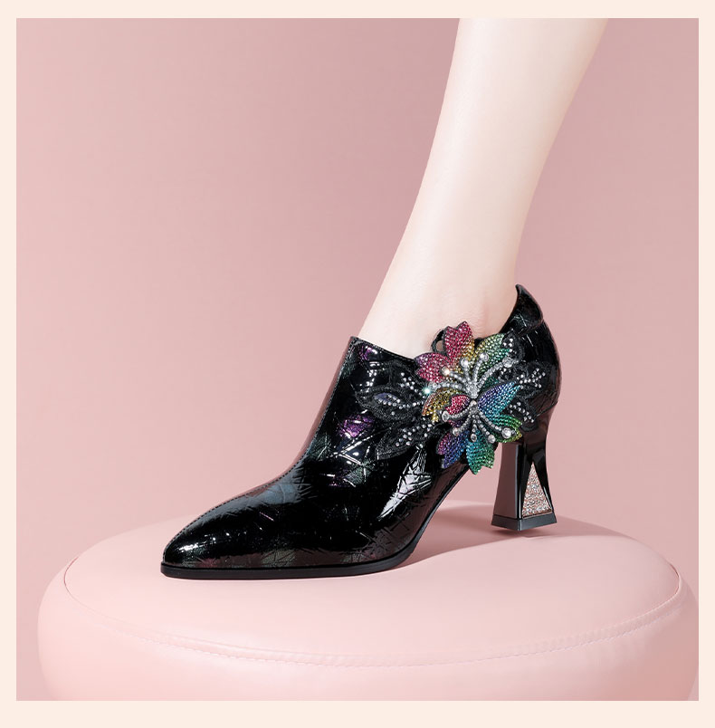 优雅百搭,尖头超迁皮粗跟高跟鞋YSML-A009-H958