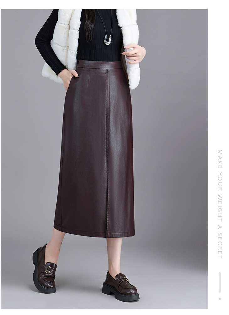 PU皮开衩半身裙,气质包臀裙中长款一步裙MYX-OMS-66925-Y
