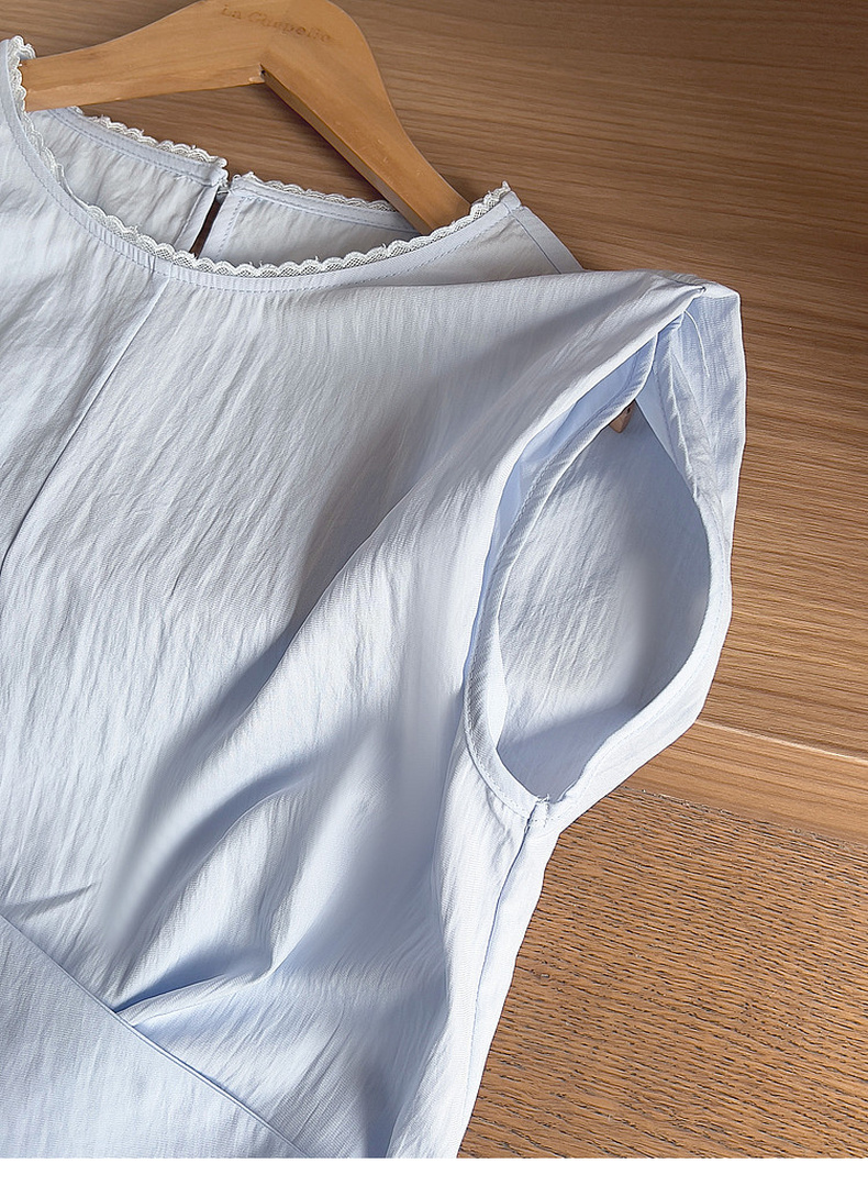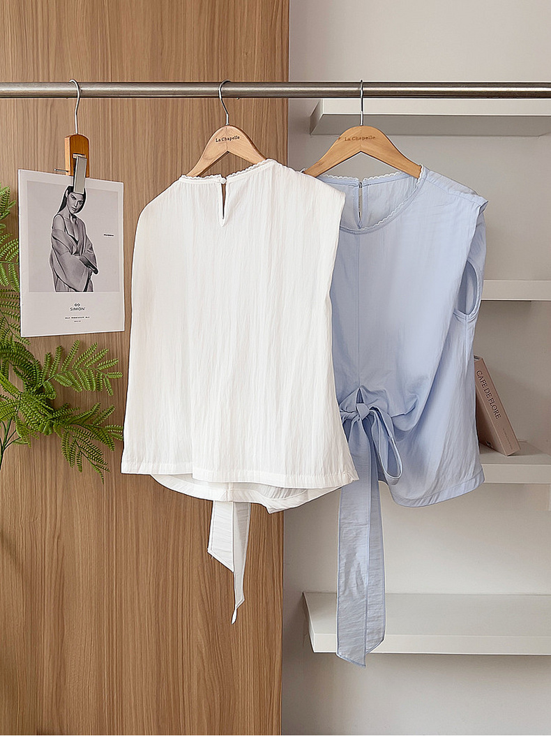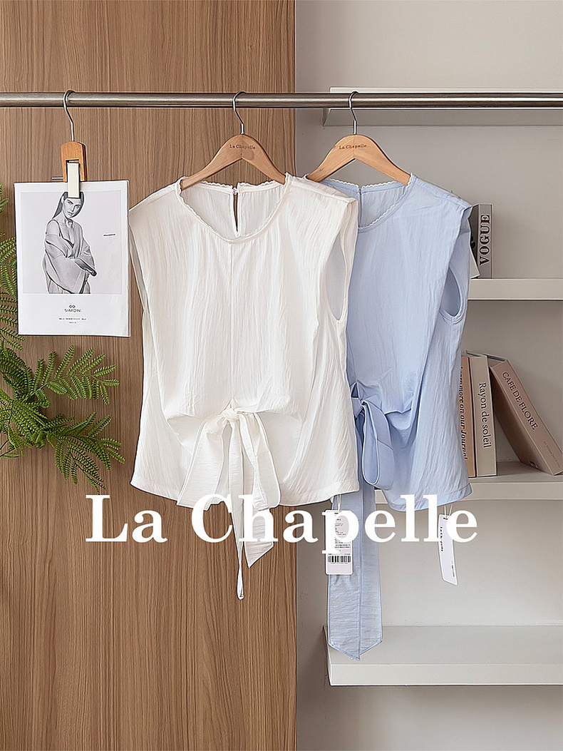 专柜实拍【小众设计!】拉夏贝尔/La Chapelle蕾丝圆领拼接花边下摆褶皱系带无袖小衫简约净版薄上衣