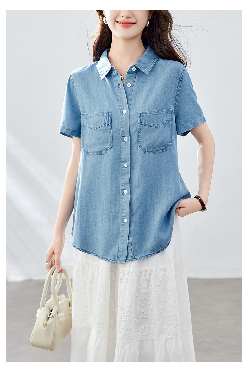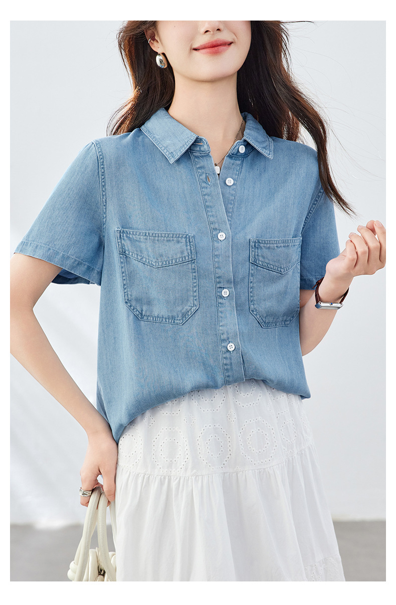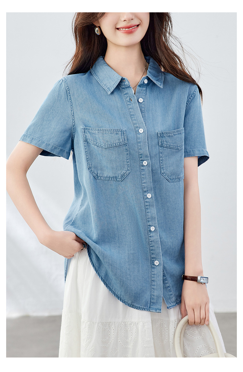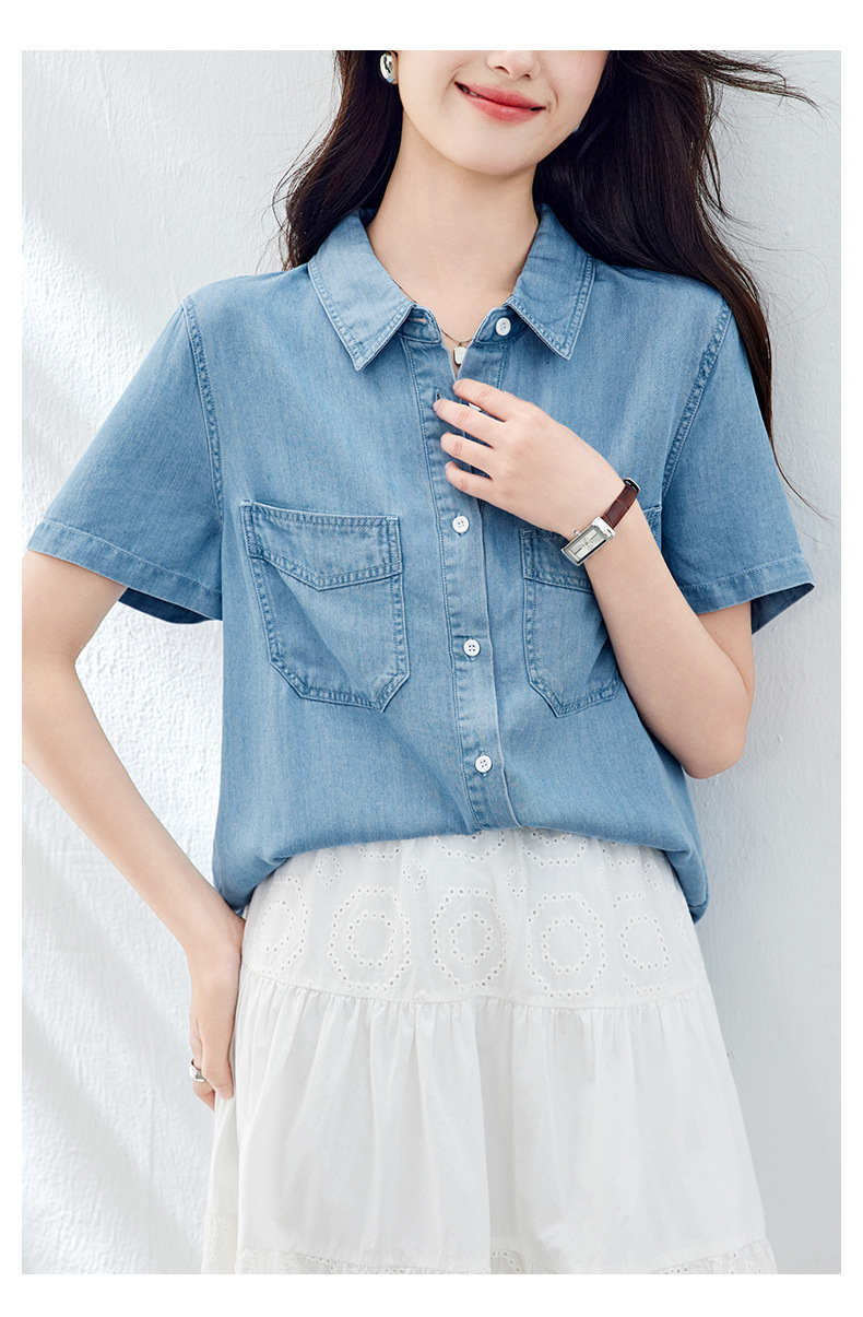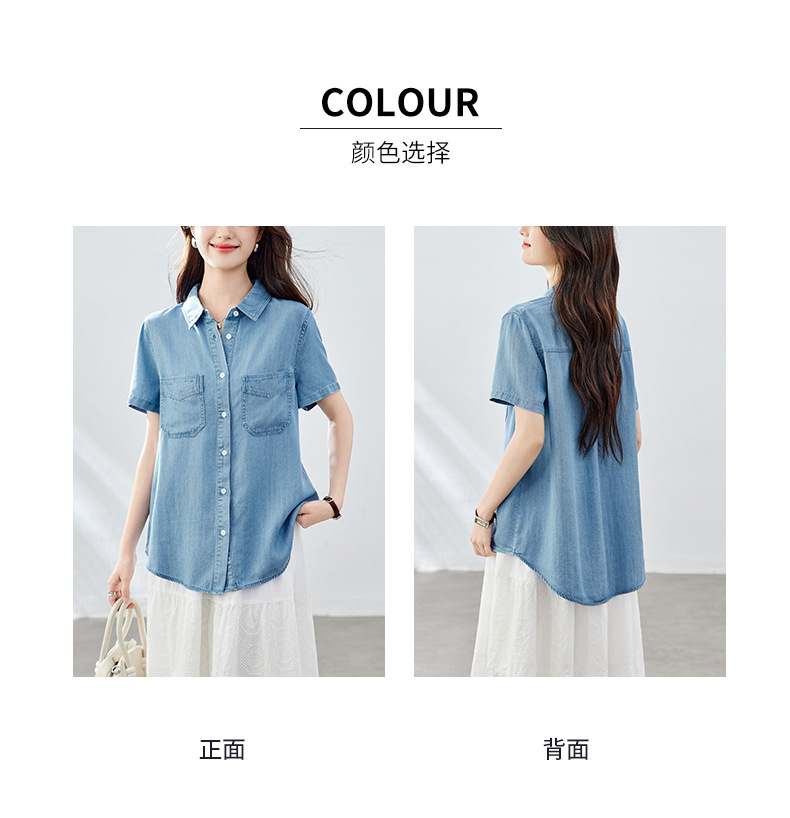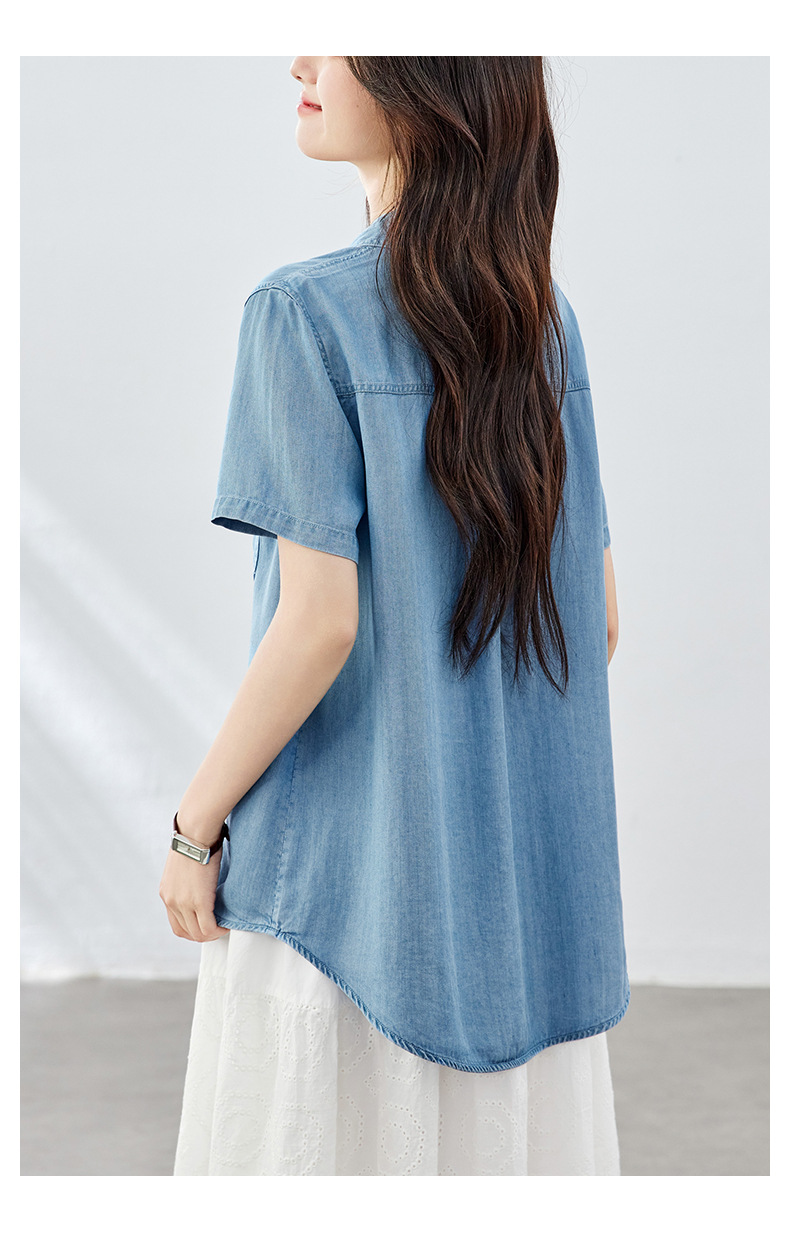 百媚生 天丝莱赛尔垂感蓝色牛仔衬衫女54092