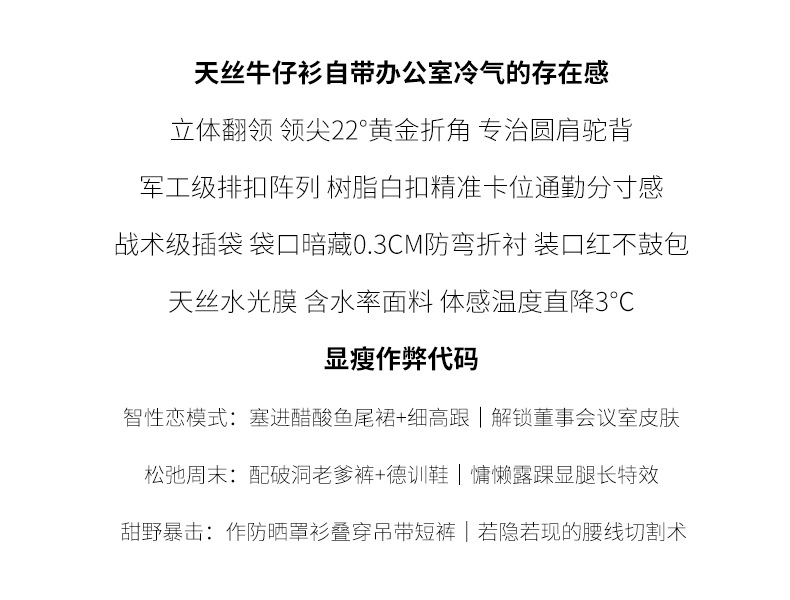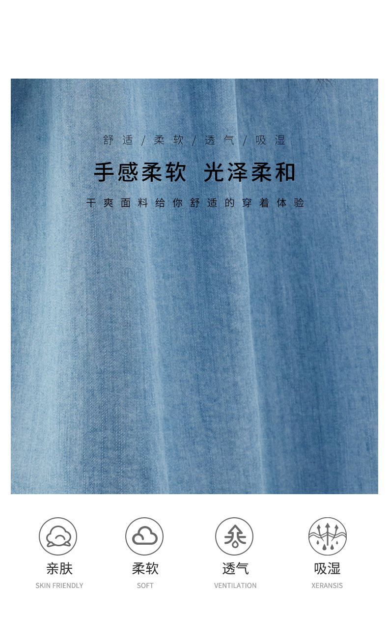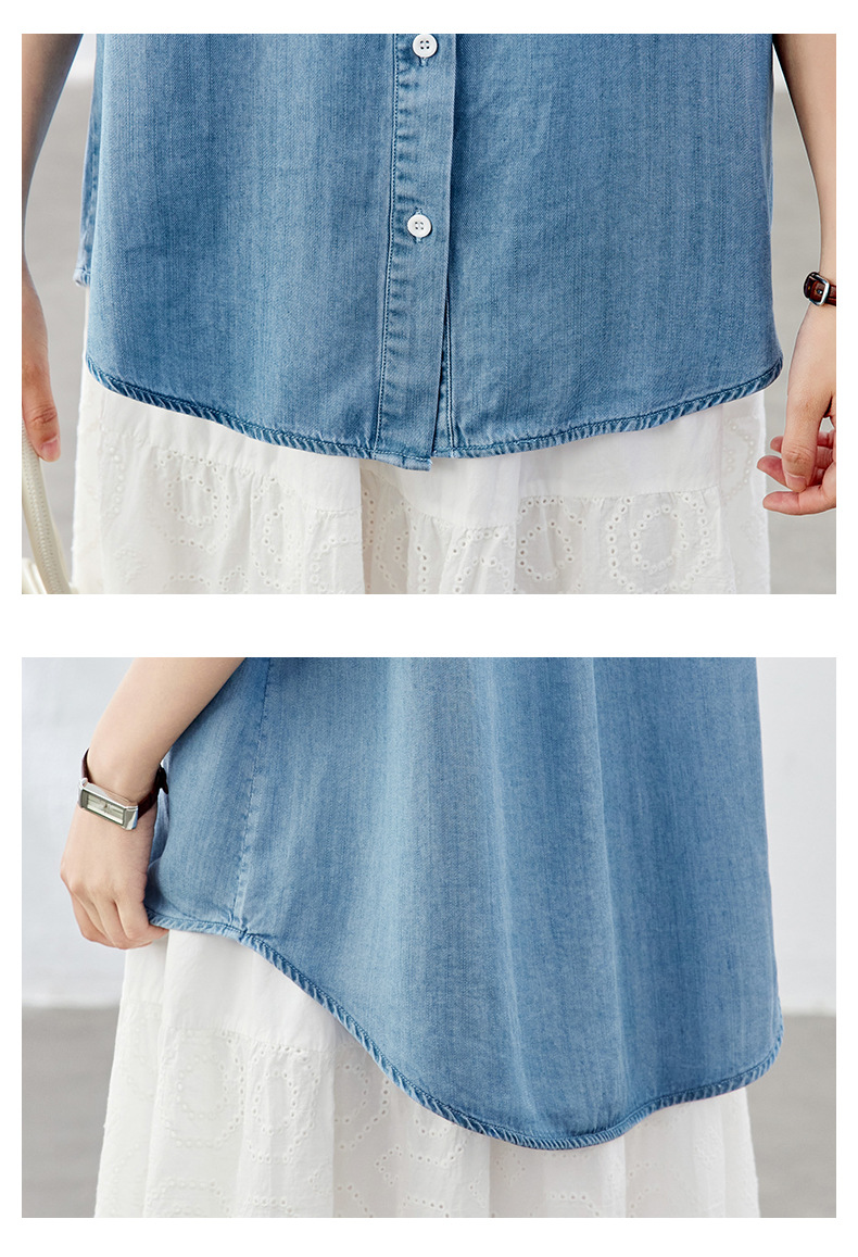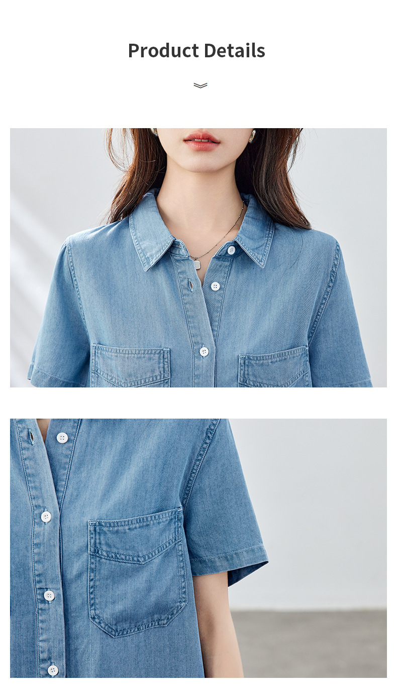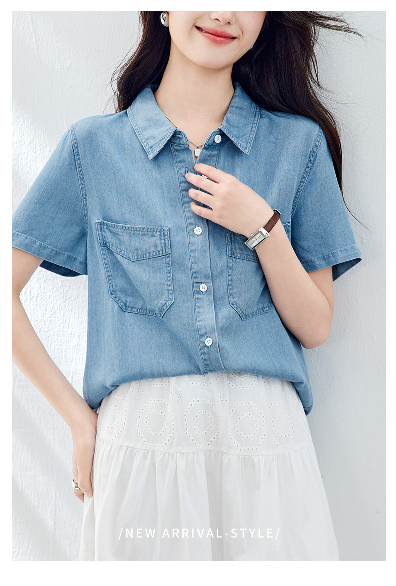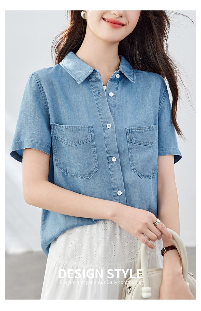 百媚生 天丝莱赛尔垂感蓝色牛仔衬衫女54092