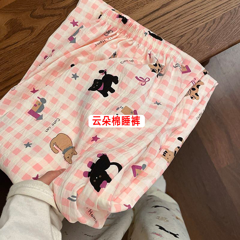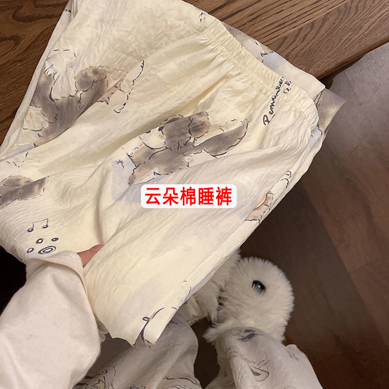雀说新款睡裤女夏季云朵棉薄款简约休闲可外穿家居长裤遛弯裤 WALC196