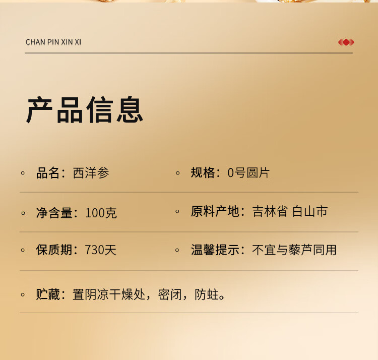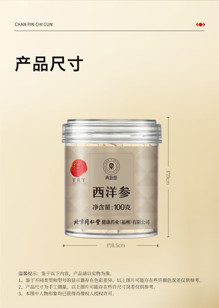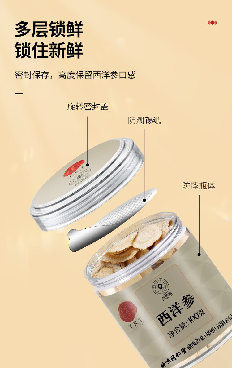 【正宗同仁堂品牌】北京同仁堂 青源堂 国产西洋参片 0号圆片 约1.8-2.5cm 100克 吉林原产 参香四溢 微苦回甘 SY