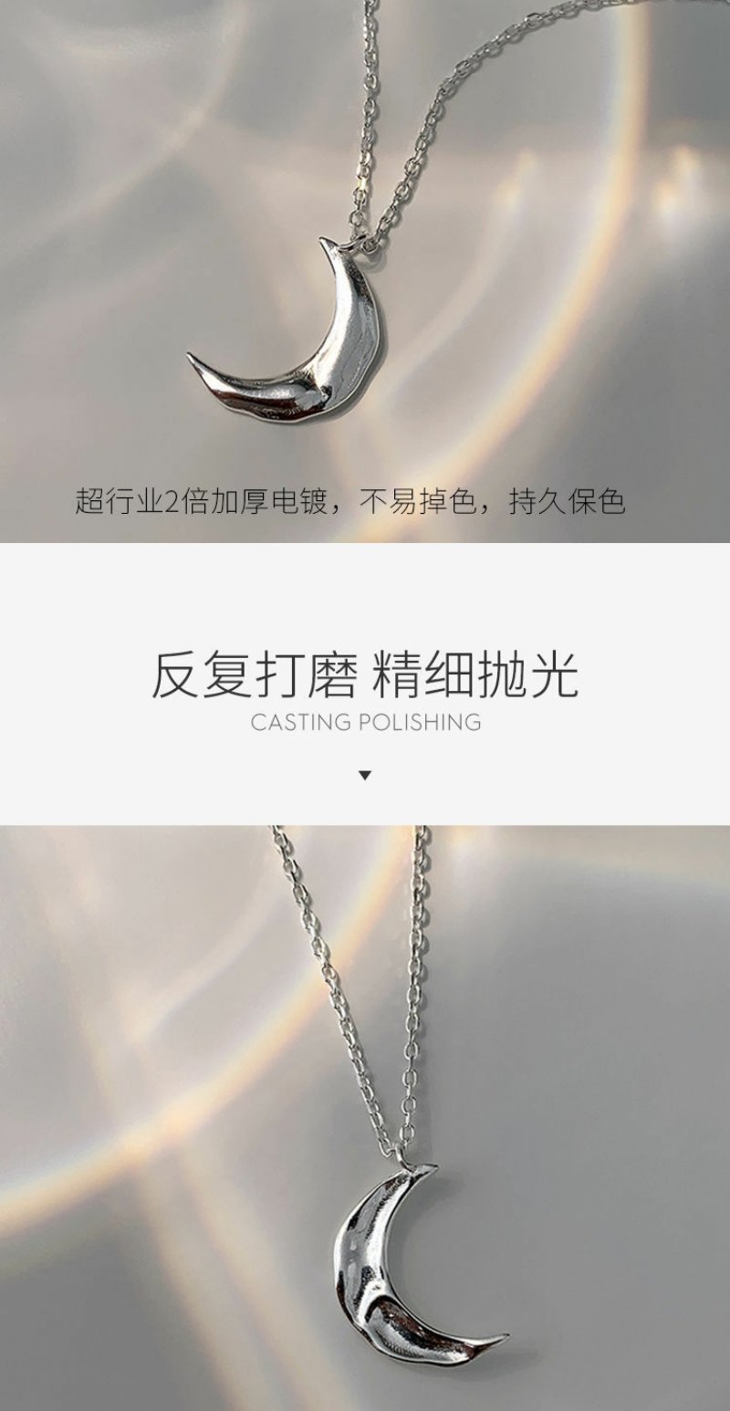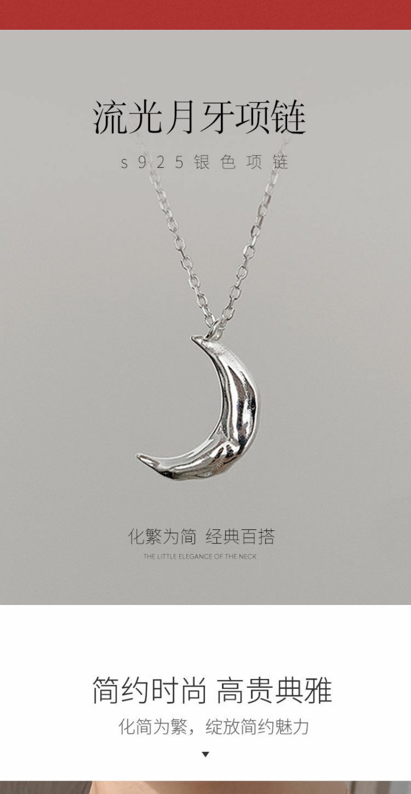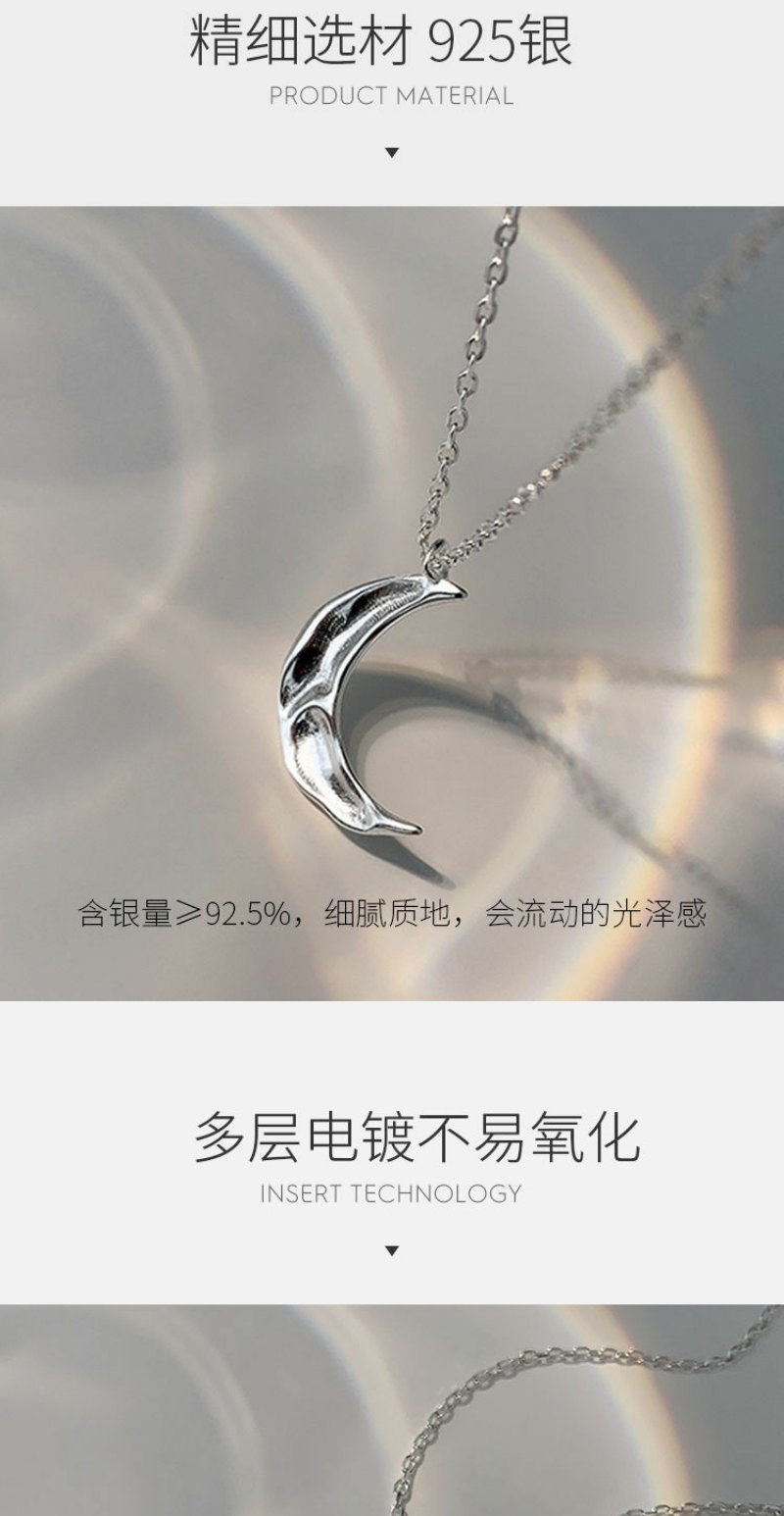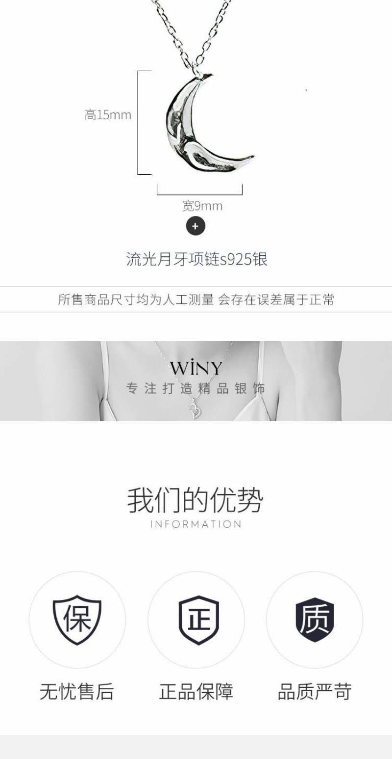 Winy925纯银流光月牙项链送女友闺蜜节日生日礼物