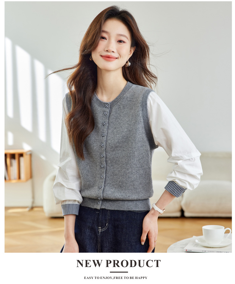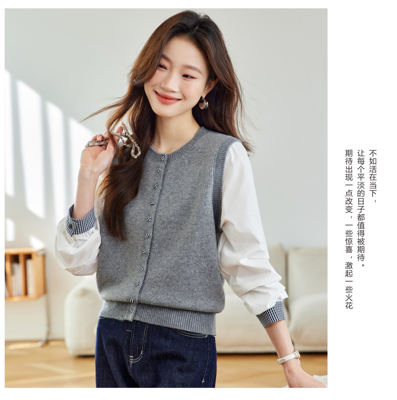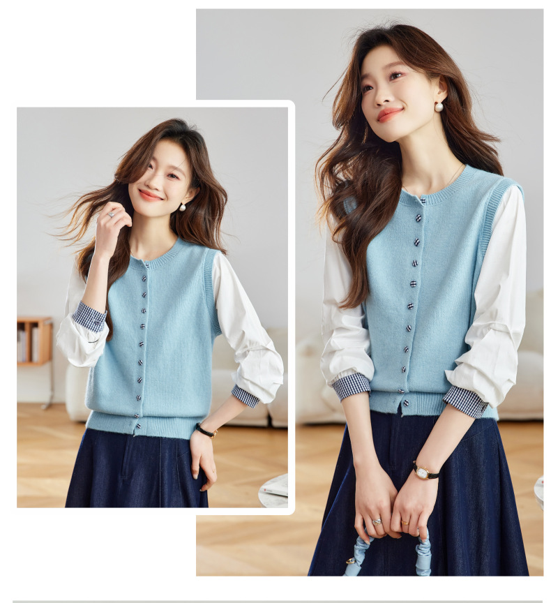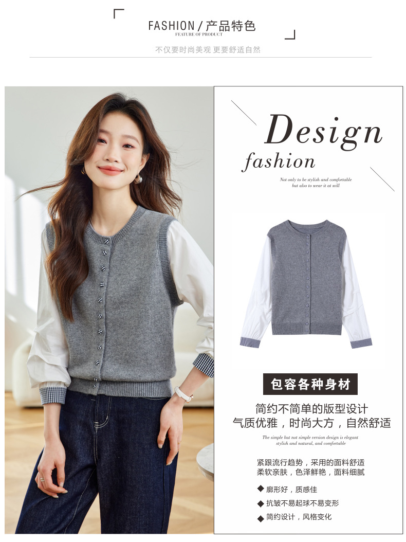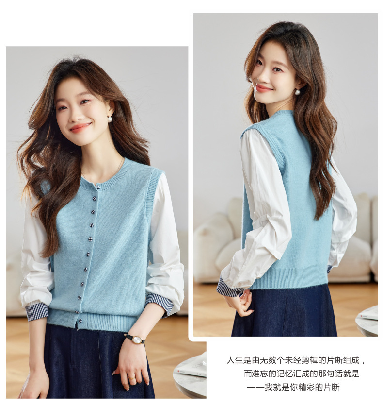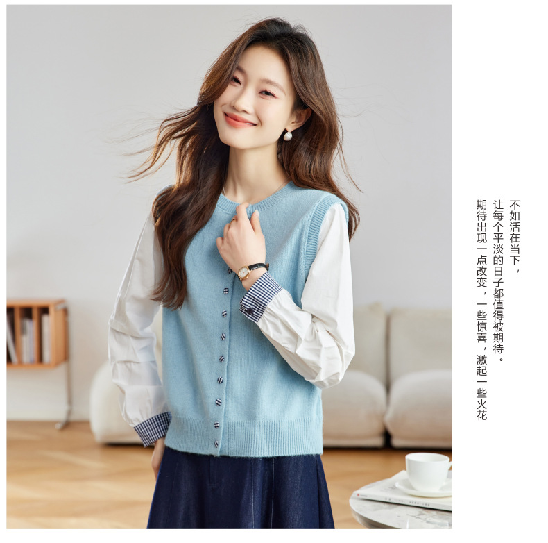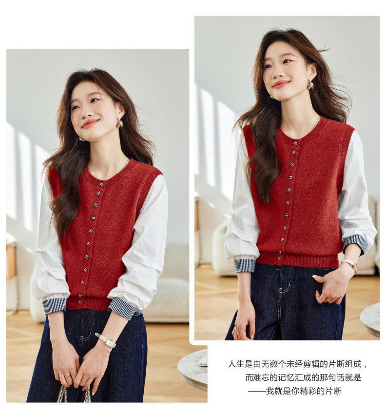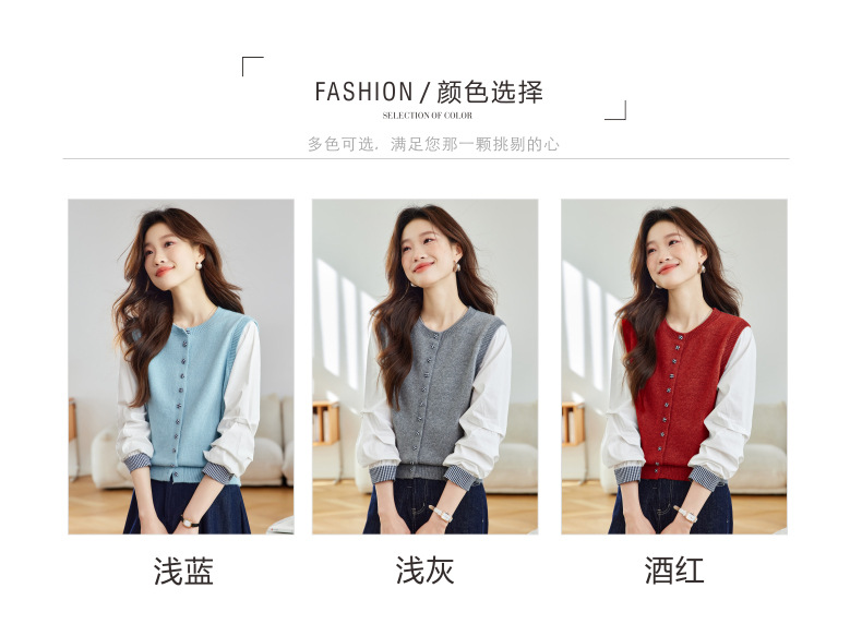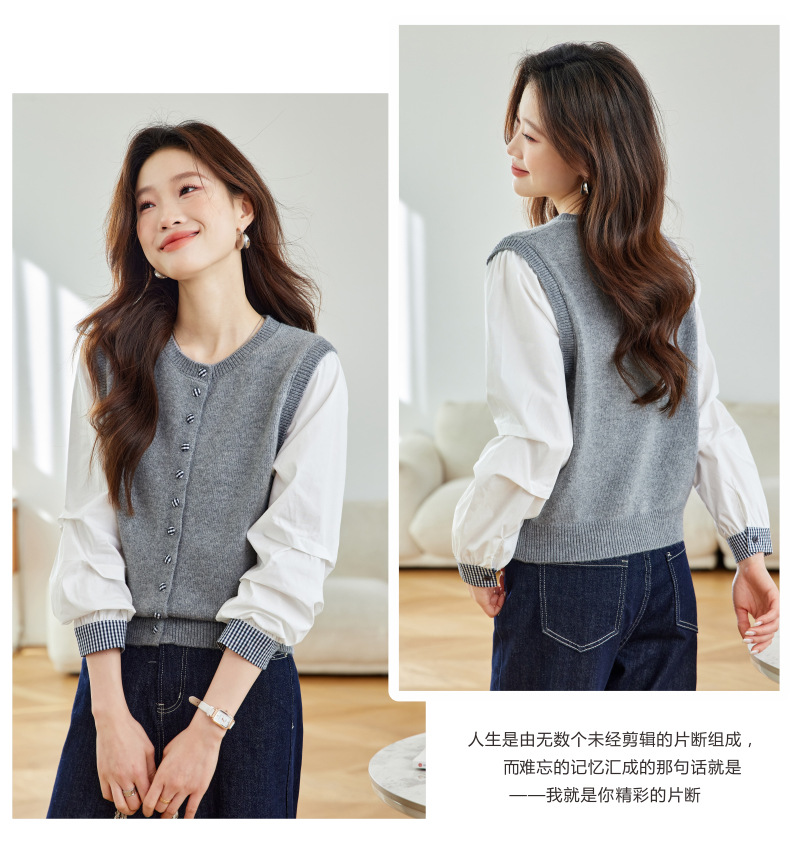 马甲拼接衬衫袖假两件,毛衣外套上衣CC-27-2513