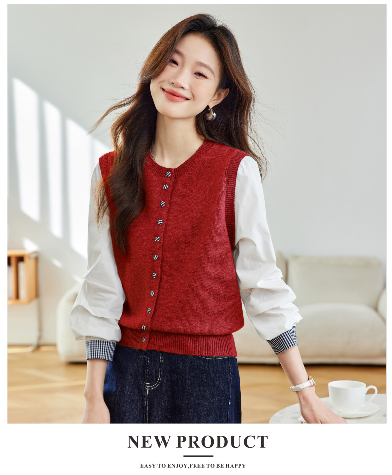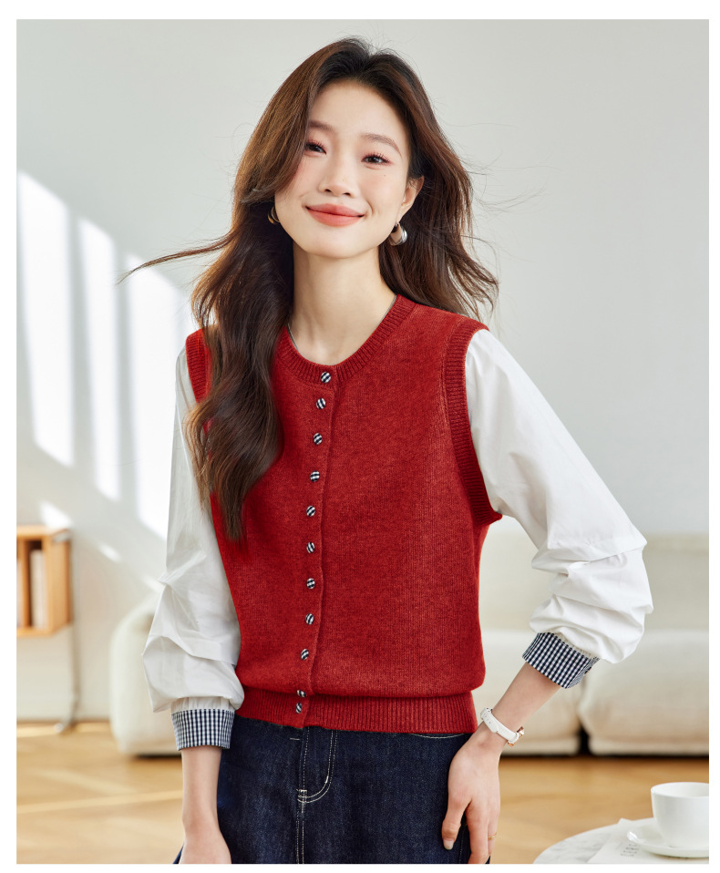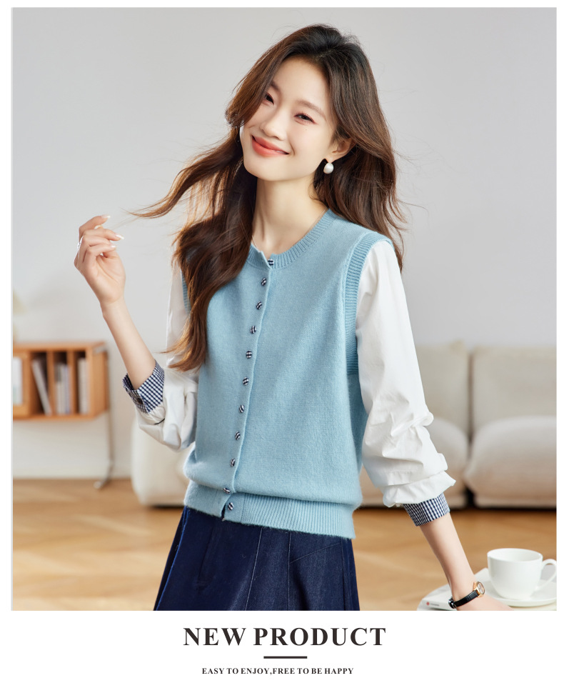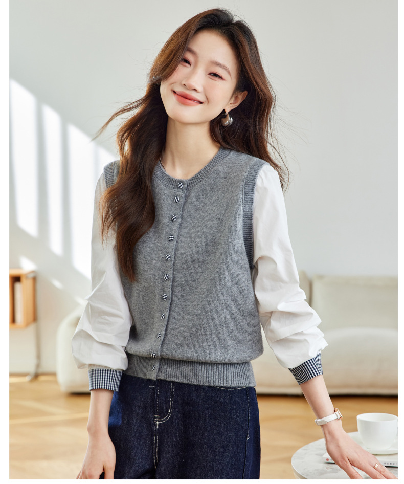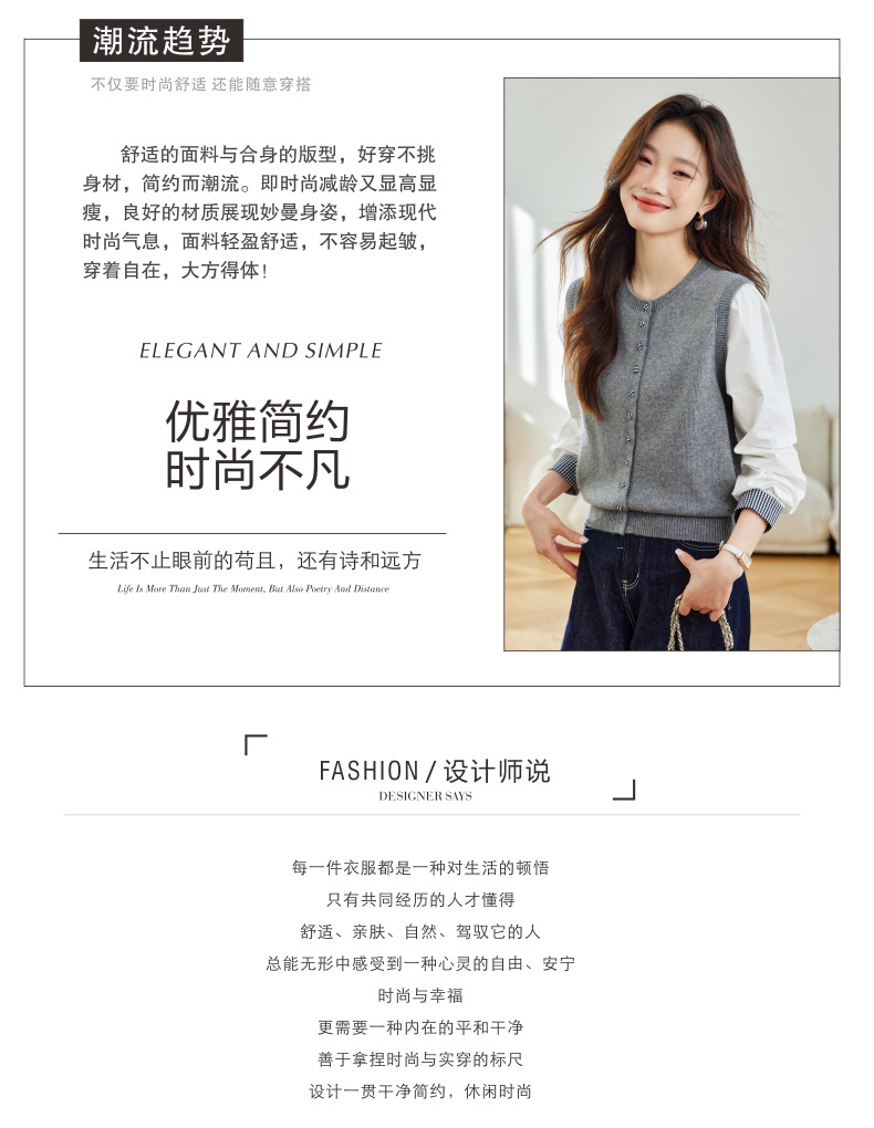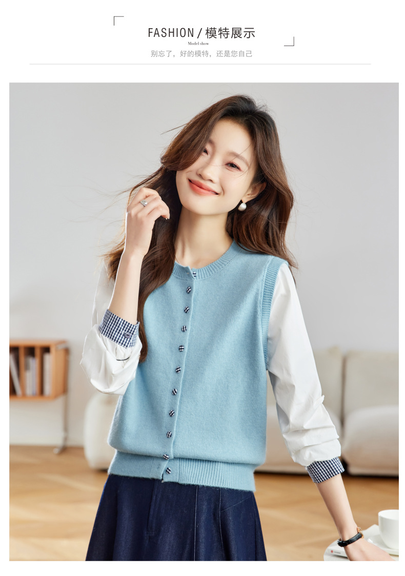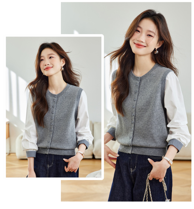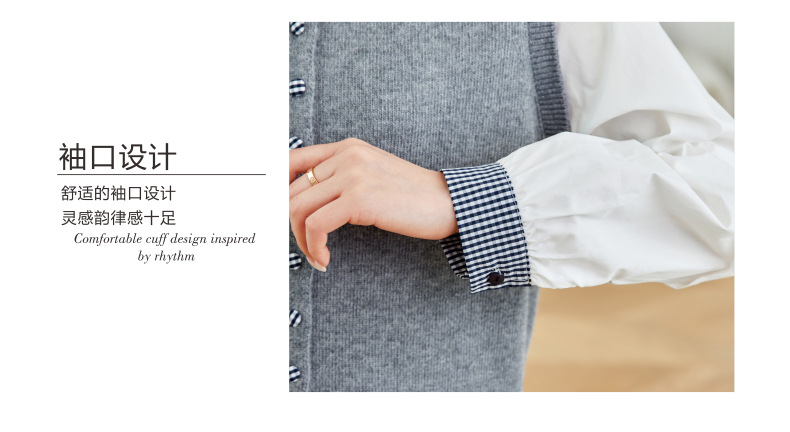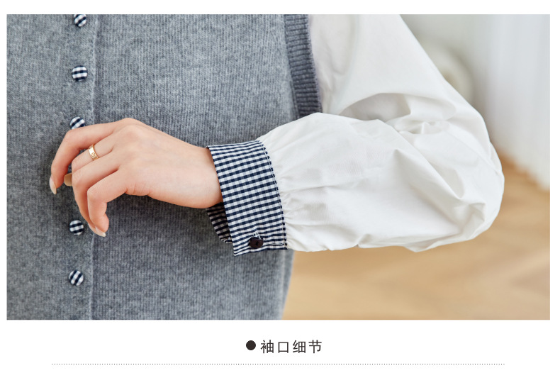 马甲拼接衬衫袖假两件,毛衣外套上衣CC-27-2513