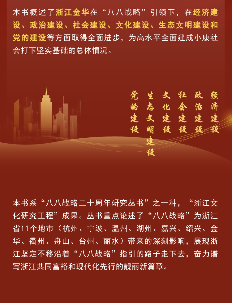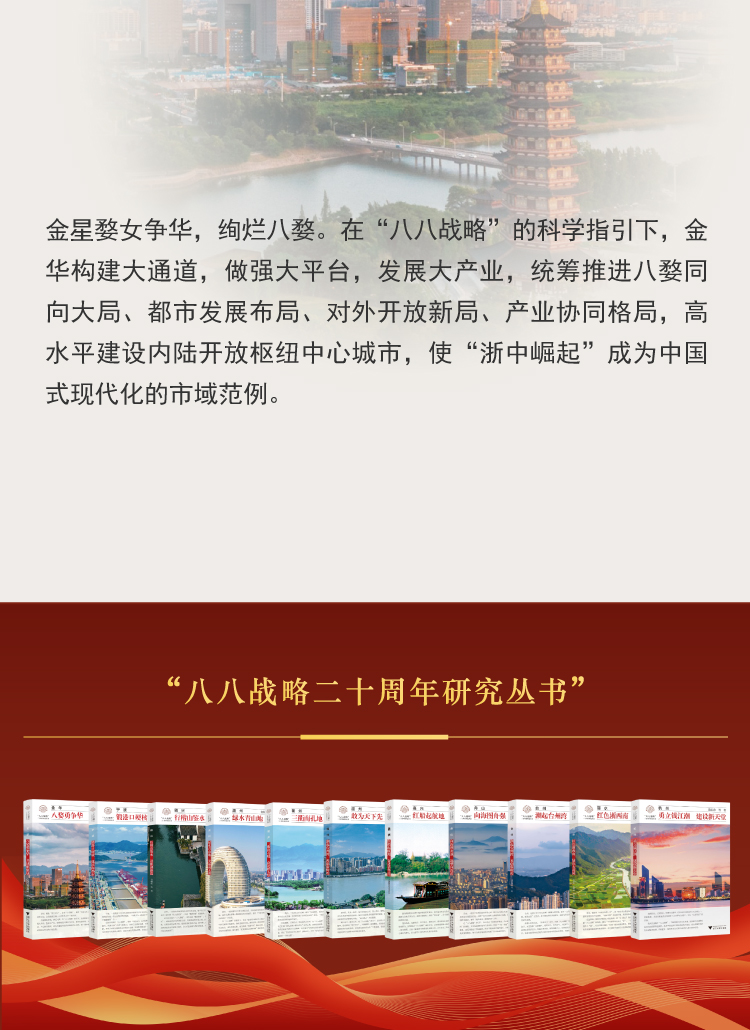 金星婺女争华,绚烂八婺。在“八八战略”的科学指引下,金华构建大通道,做强大平台,发展大产业,统筹推进八婺同向大局、都市发展布局、对外开放新局、产业协同格局,高水平建设内陆开放枢纽中心城市,使“浙中崛起”成为中国式现代化的市域范例。