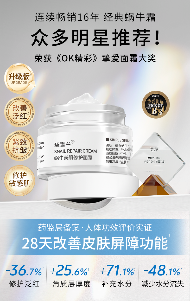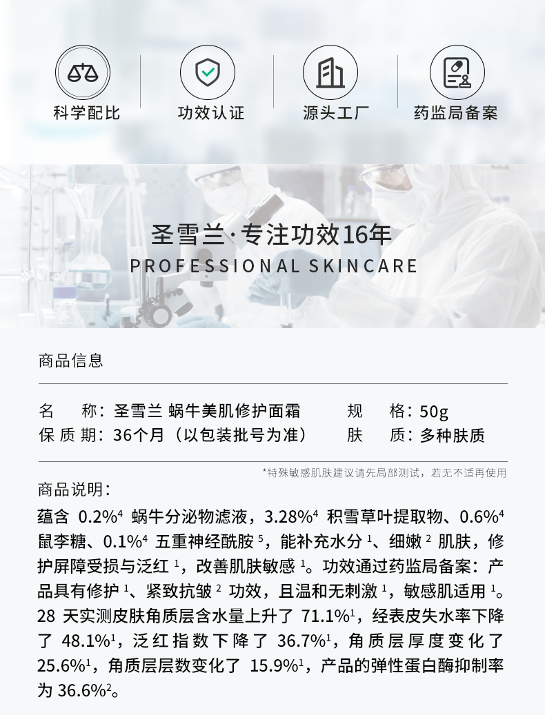 【自营】 明星同款 圣雪兰 蜗牛霜50g 镇店之宝!年度挚爱国货面霜大奖!连续热卖16年