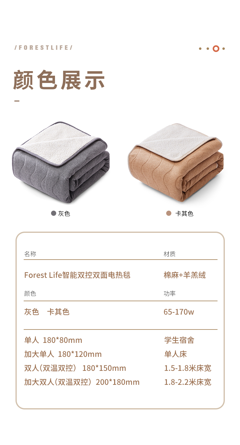 forestlife-短毛羊羔绒电热毯 棉麻 加厚羊羔绒,智能定时睡眠控温