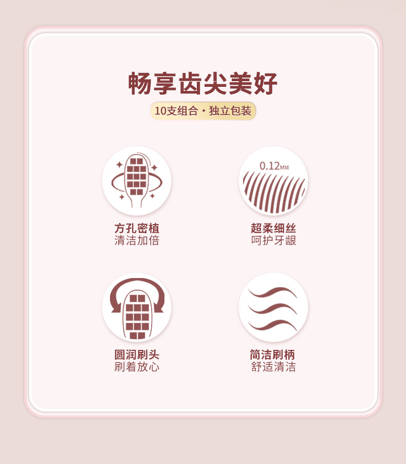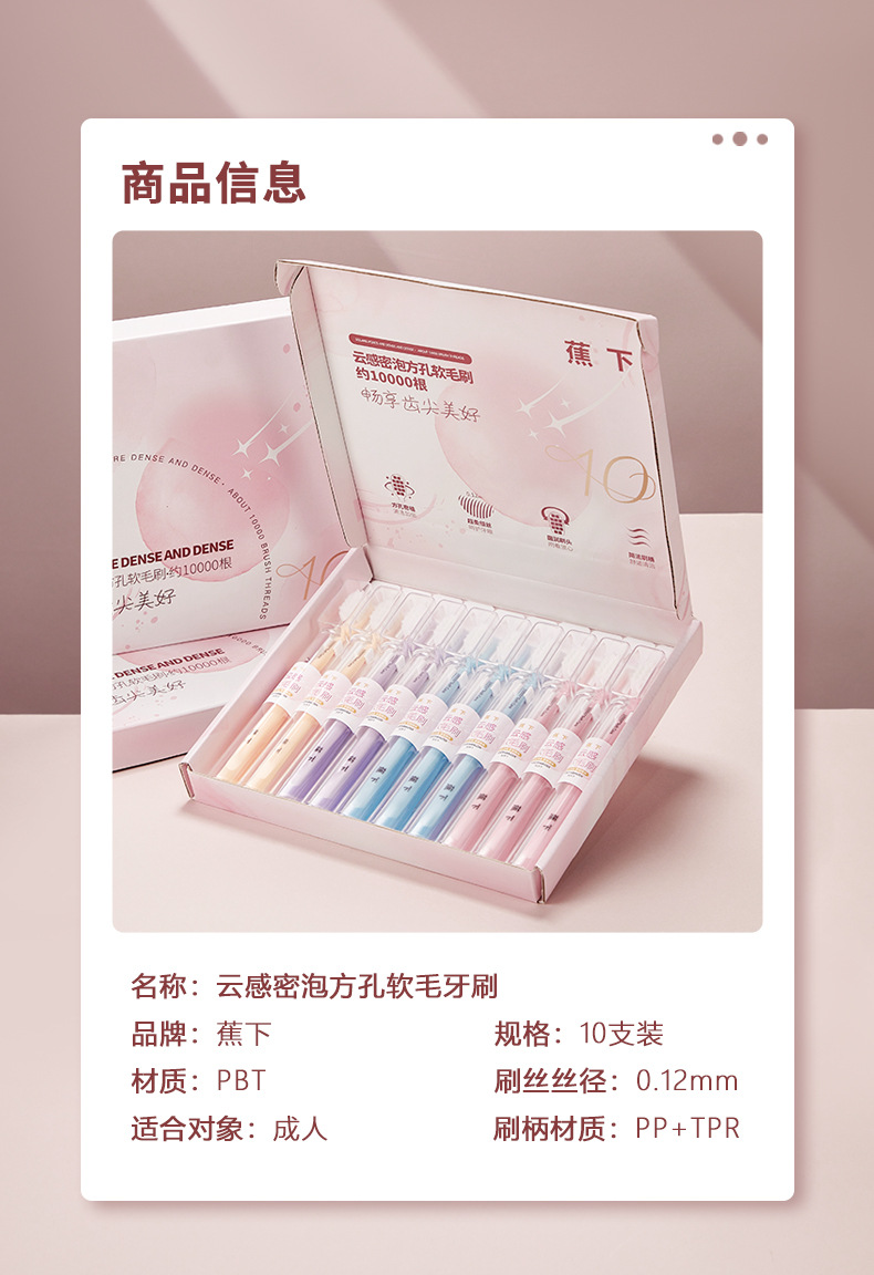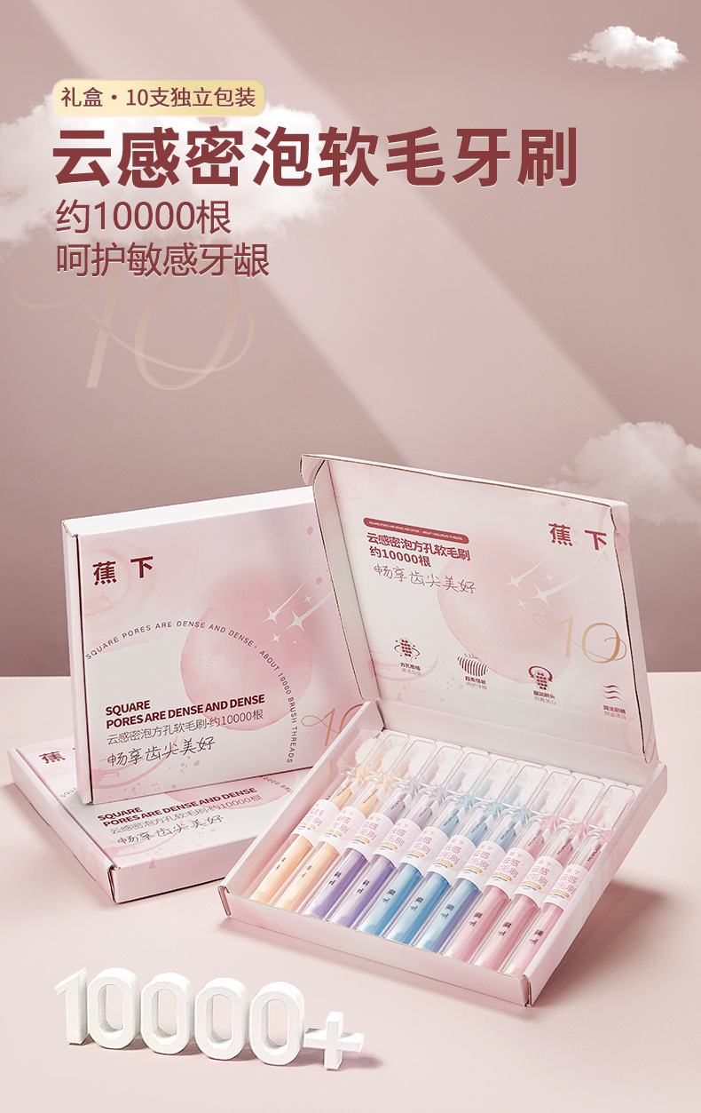 【礼盒装!10支独立装】高定礼盒云感超软毛方孔万毛牙刷 家庭情侣牙刷 约10000根 呵护敏感牙龈-QQ
