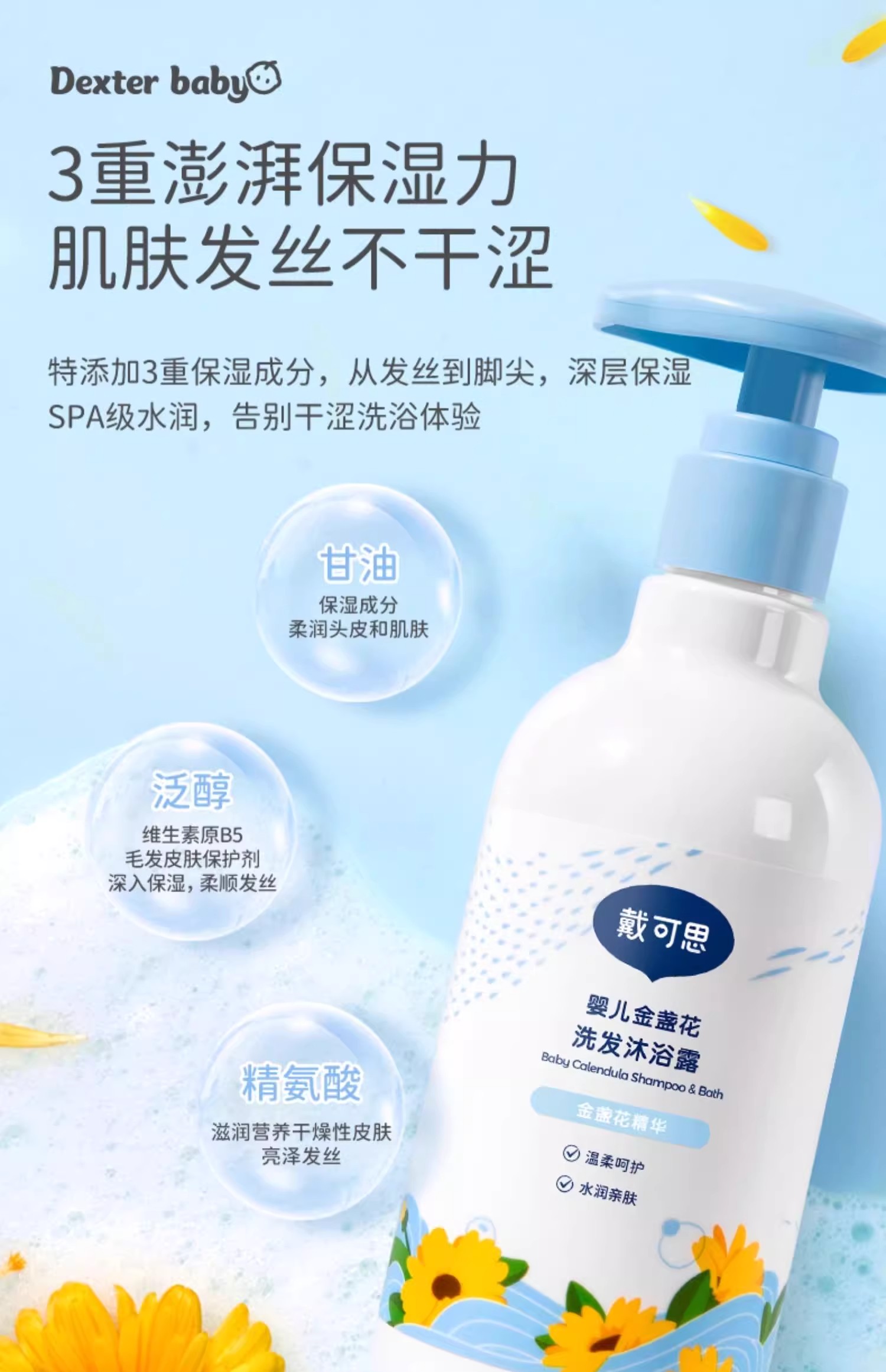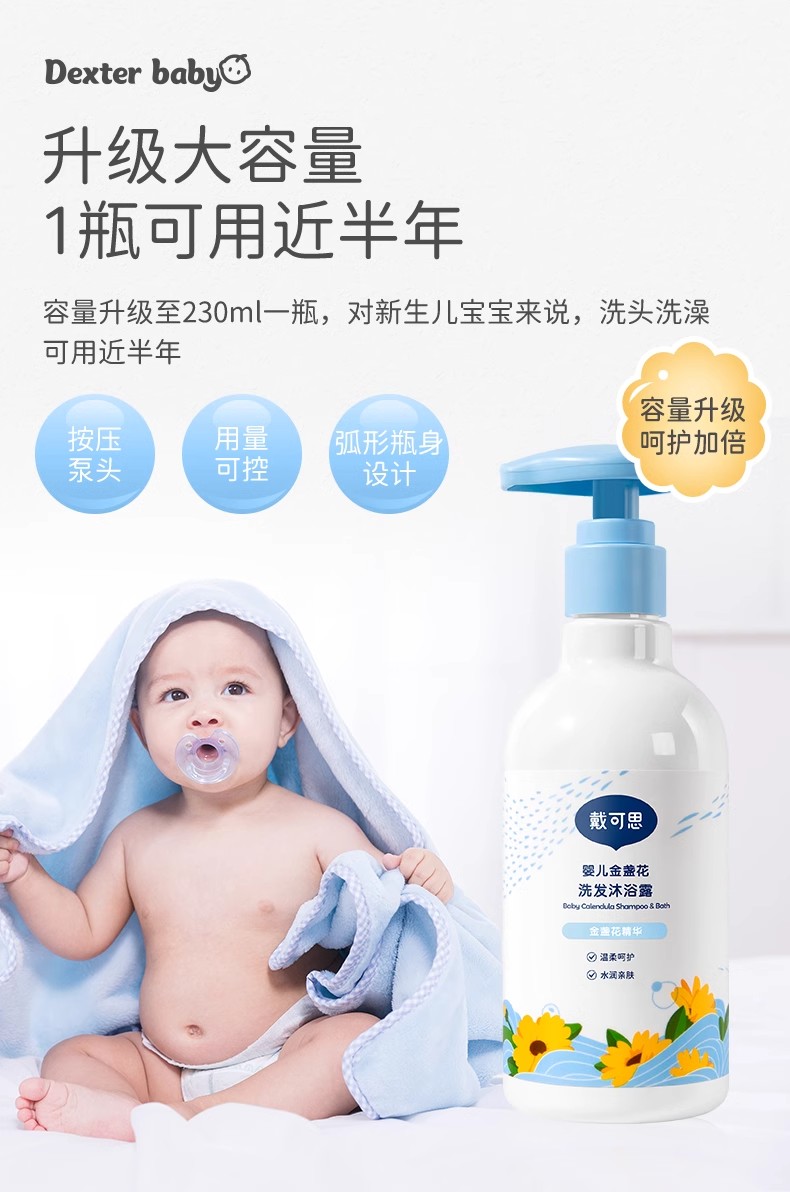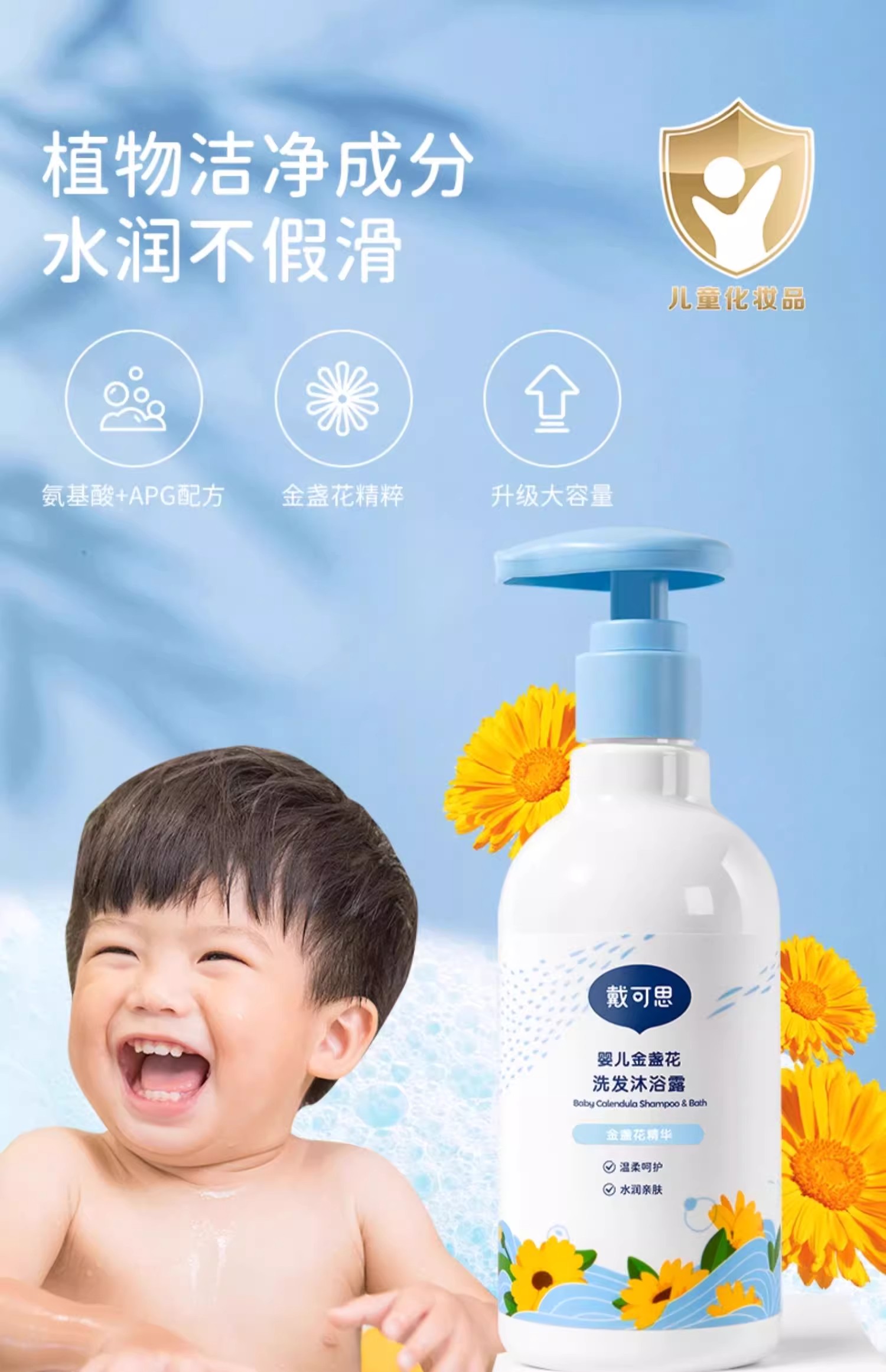 【从胎发到脚丫,洗护1瓶搞定!】戴可思婴儿金盏花洗发沐浴二合一,儿童牛奶泡泡沐浴露蓝胖子500ml-lm!