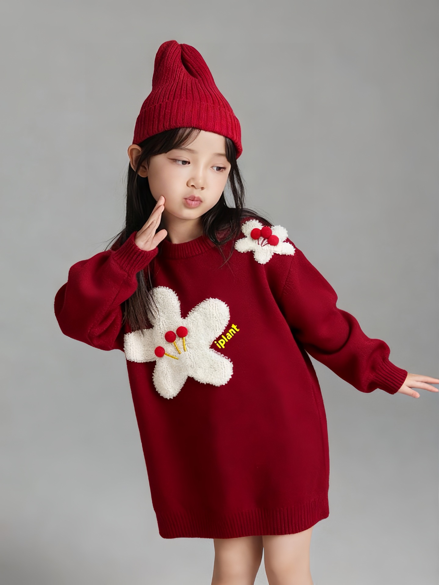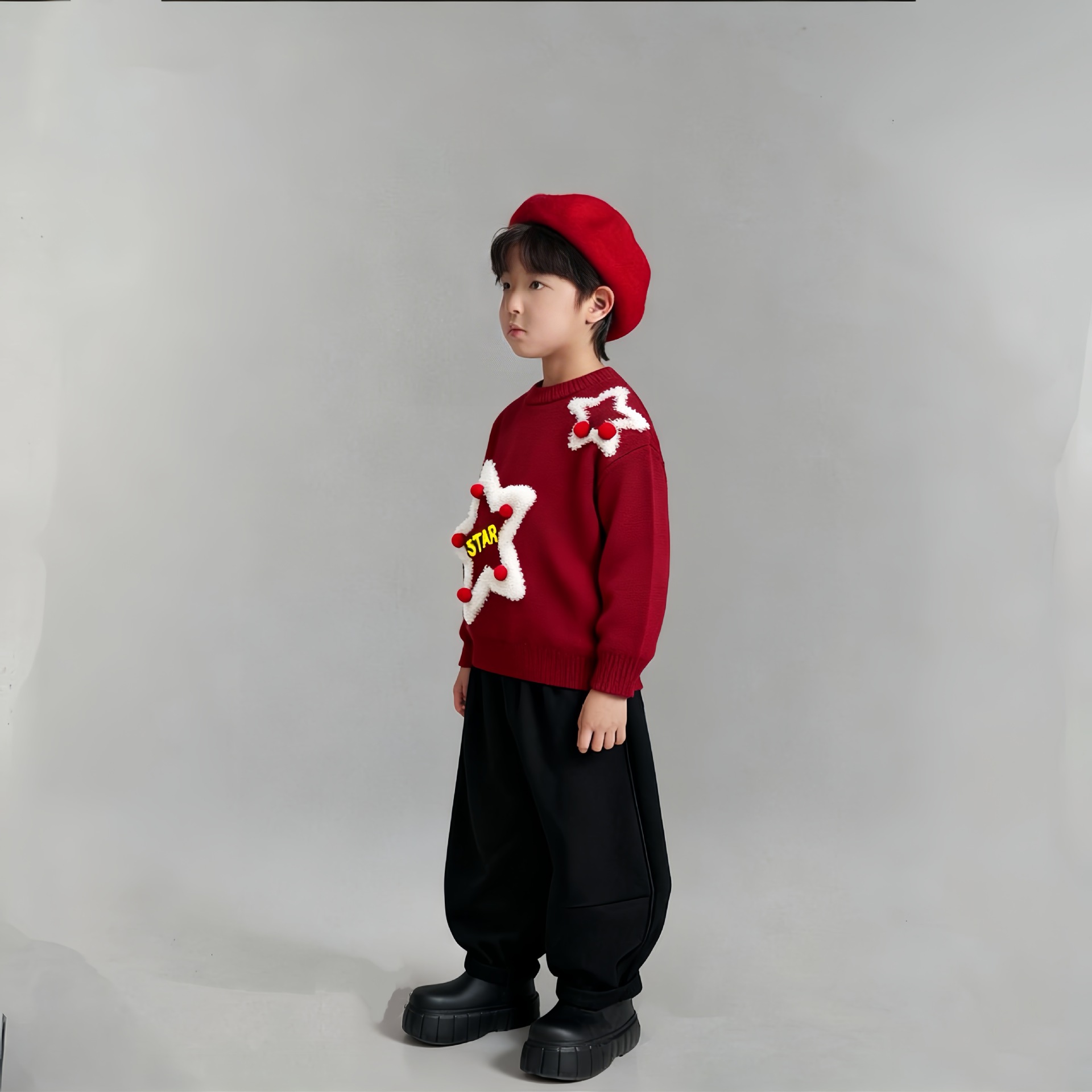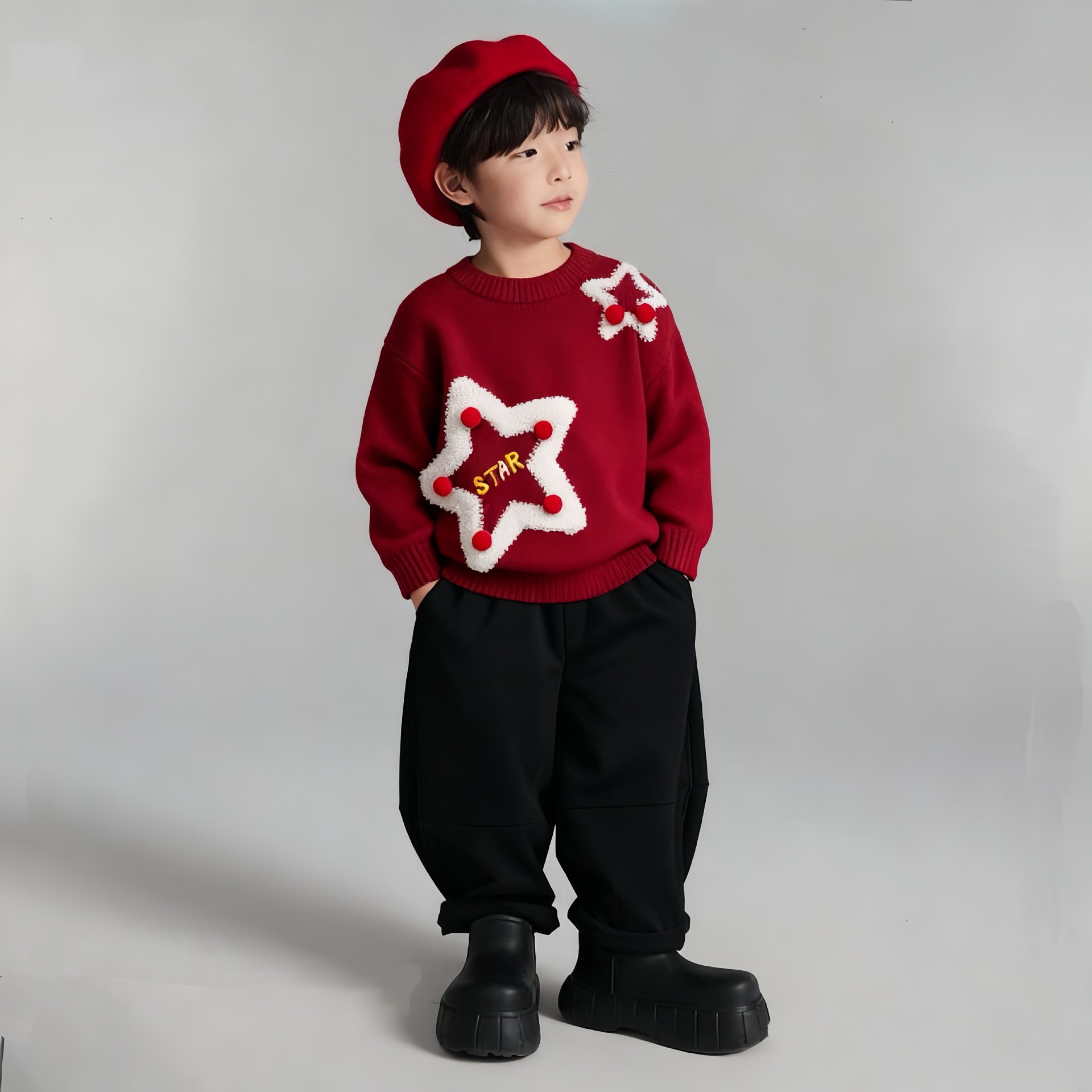 【柔软保暖舒适❗️新年仪式感满满】2026新年春节姐弟毛衣秋冬新款男女童过年红色五角星百搭圣诞针织新年红色上衣。jc
