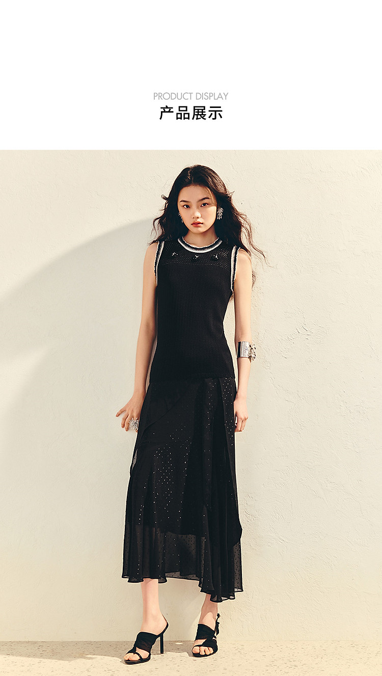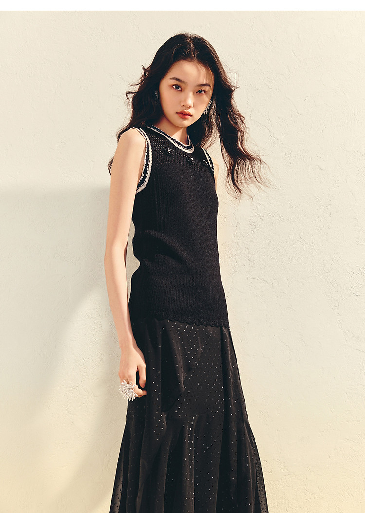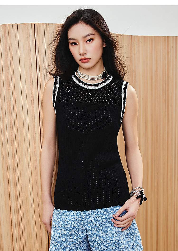 精致优雅感黑白撞色边针织25春季显瘦上衣女(货号:MS86SW040A9003)