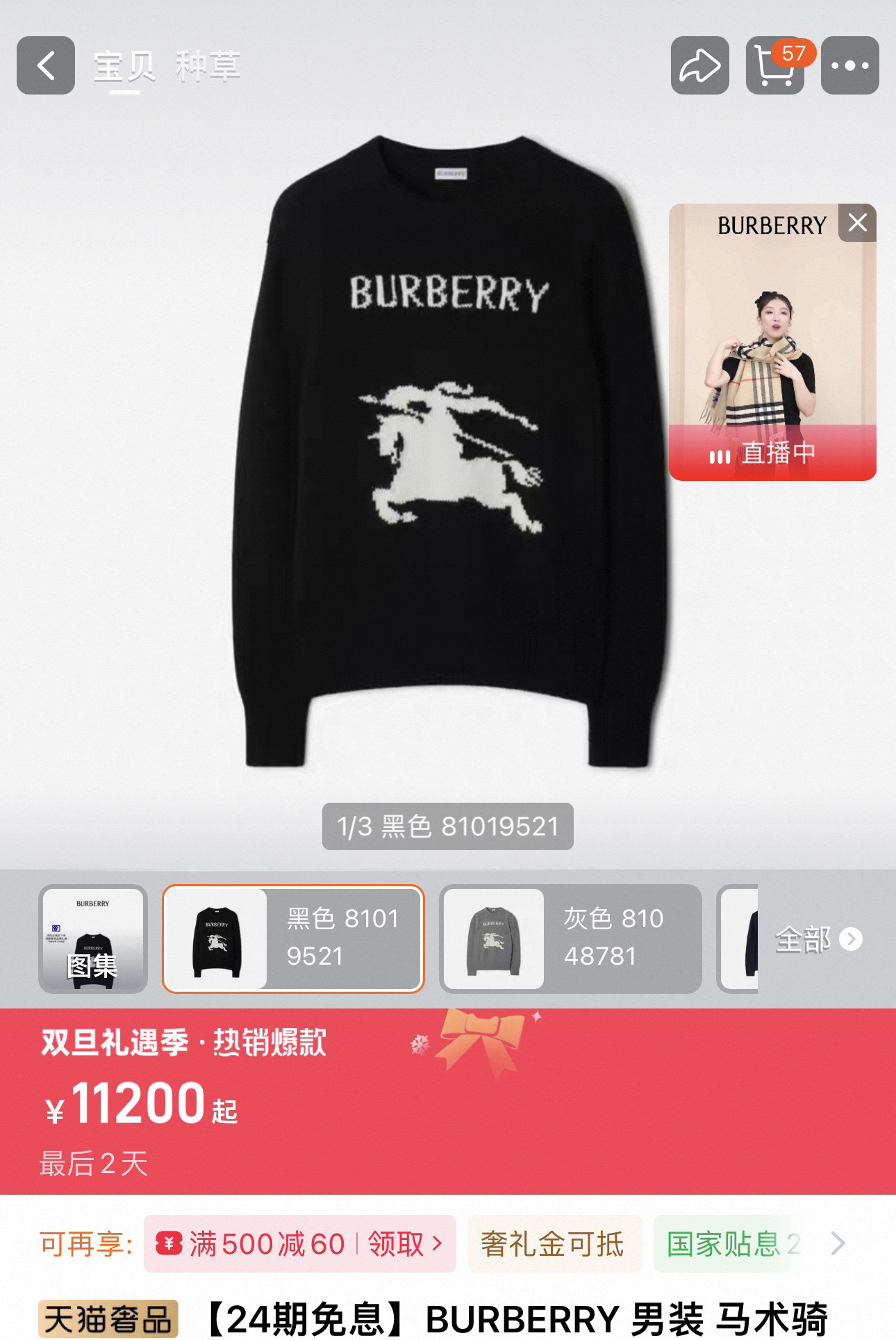 顺丰包邮 已入库 贸易公司订单剩余 性价比超高 Bur男女款骑士徽标羊毛针织衫~官网售价11200 同步两色,⚠️量少 个别码数只有十几件 标牌齐全 推荐自留 可直接送人!