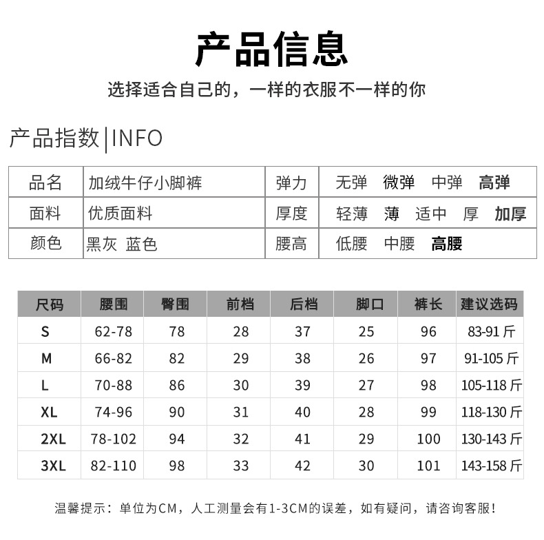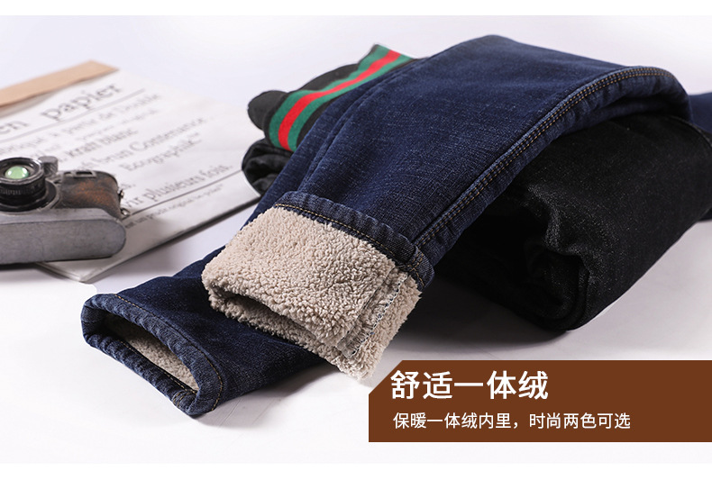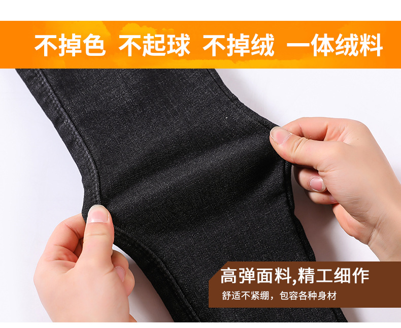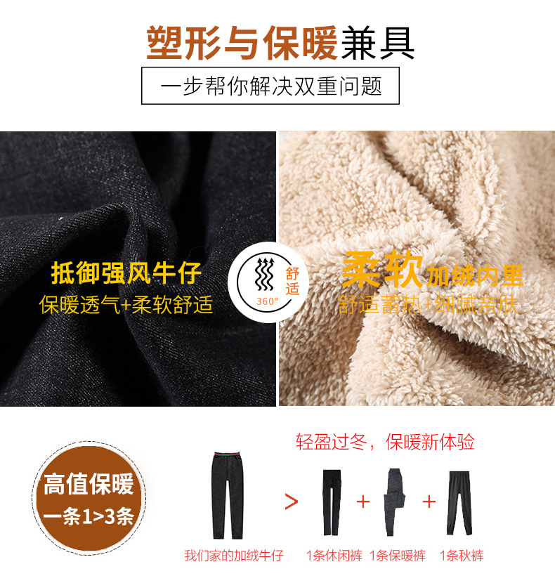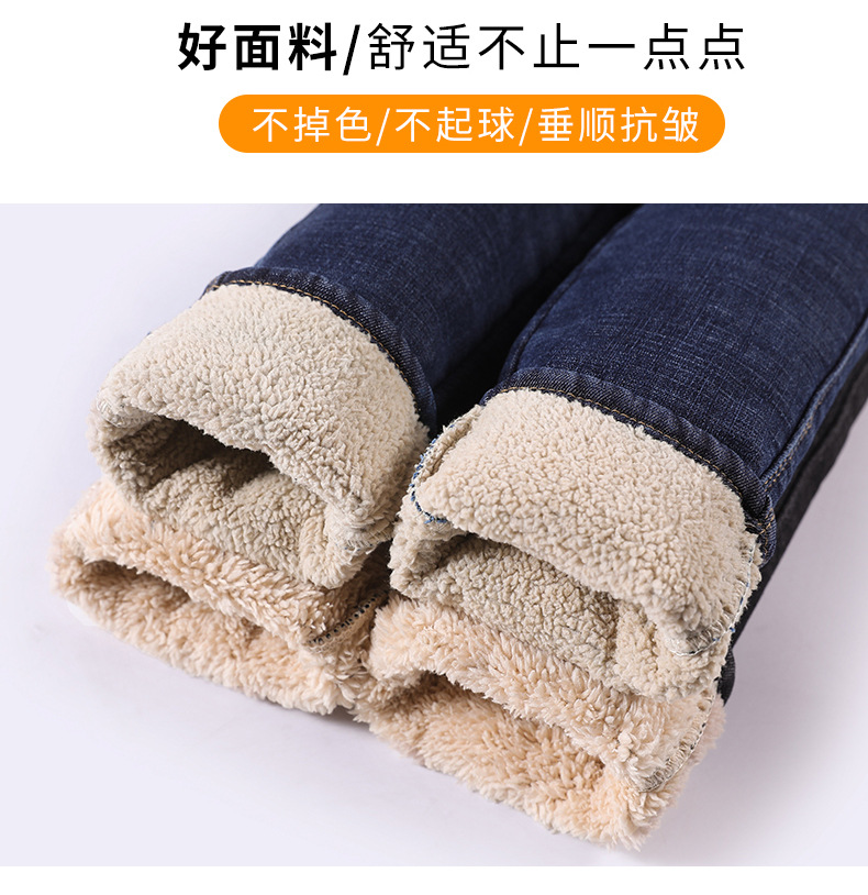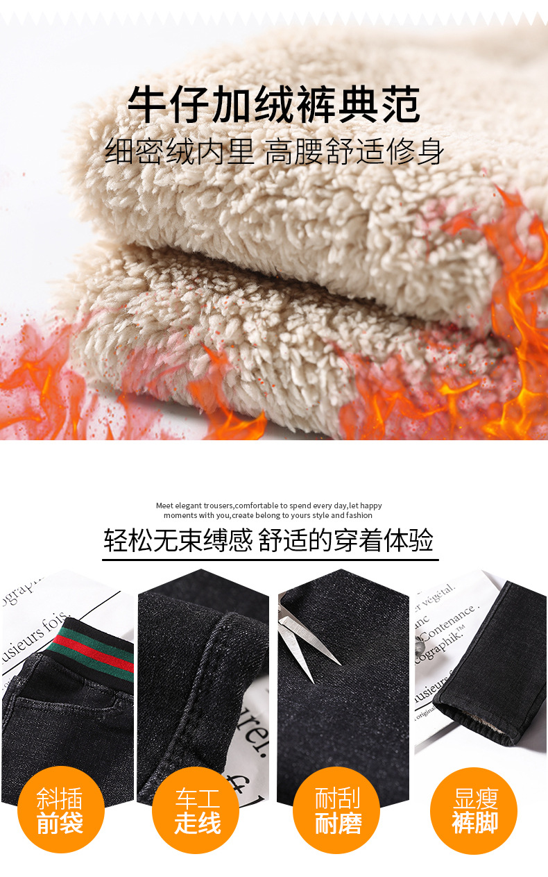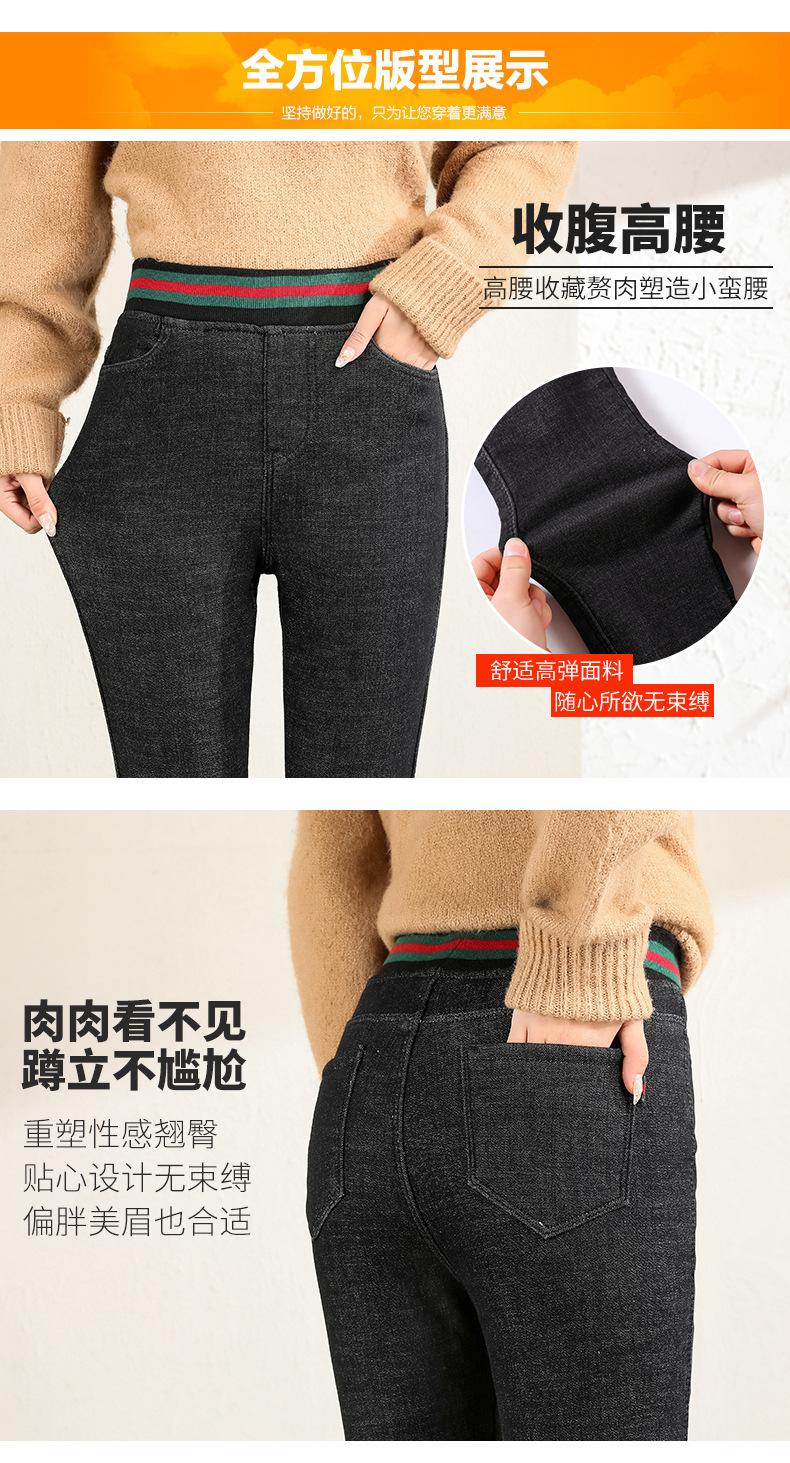 百媚生 松紧腰加厚羊羔绒牛仔裤高腰铅笔裤9090