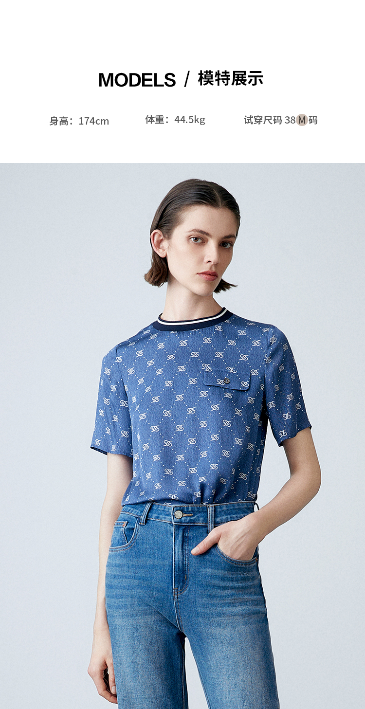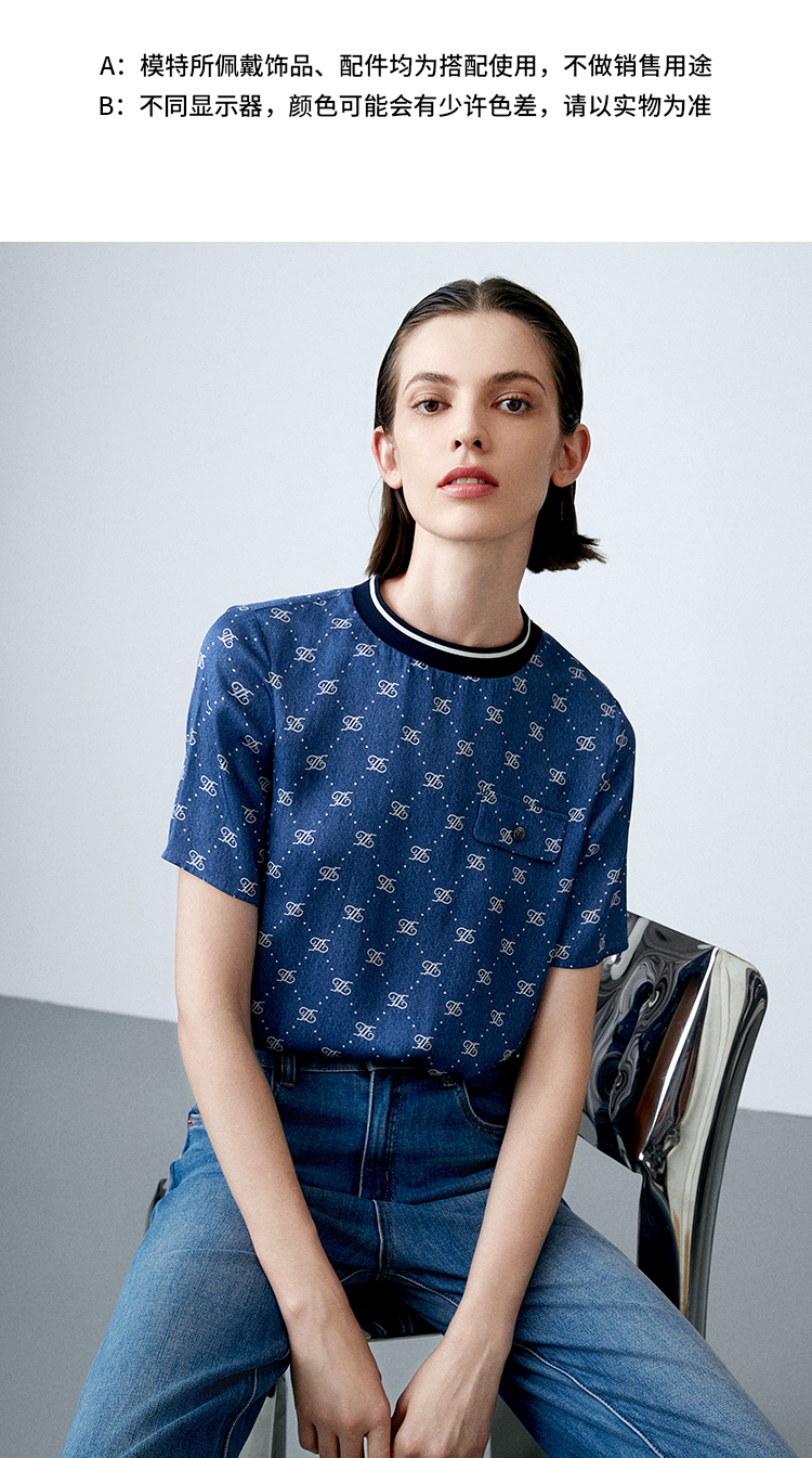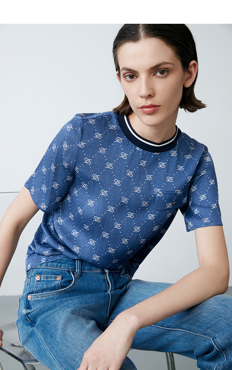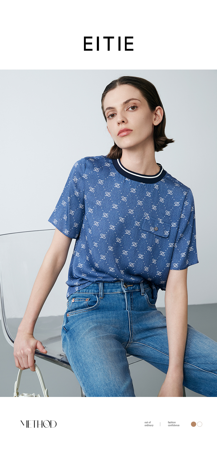 EITIE爱特爱夏季新款修身显瘦百搭印花小上衣7813519