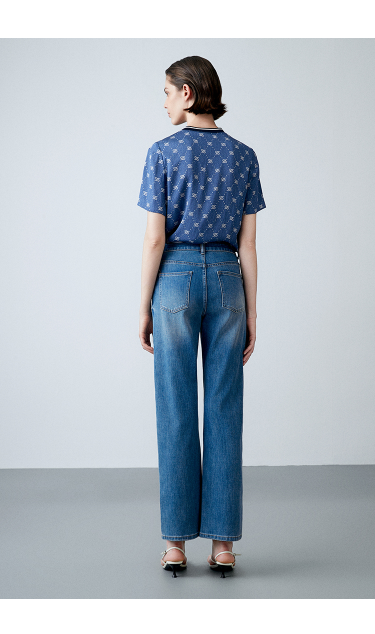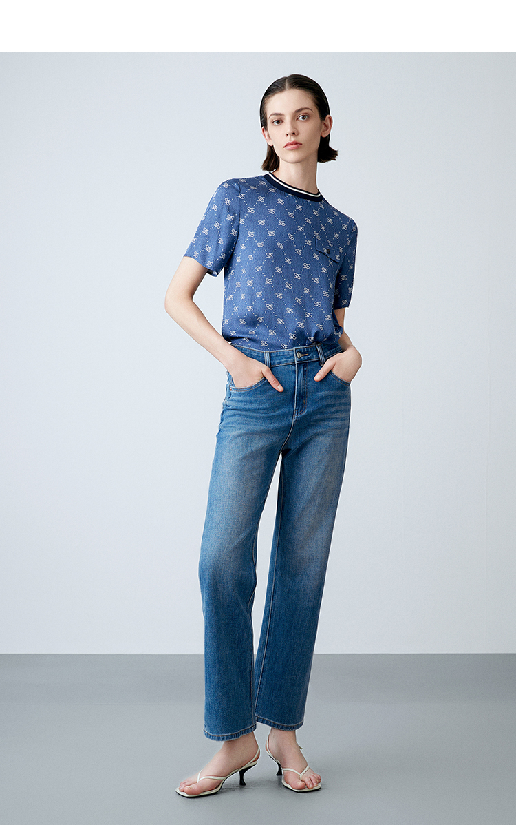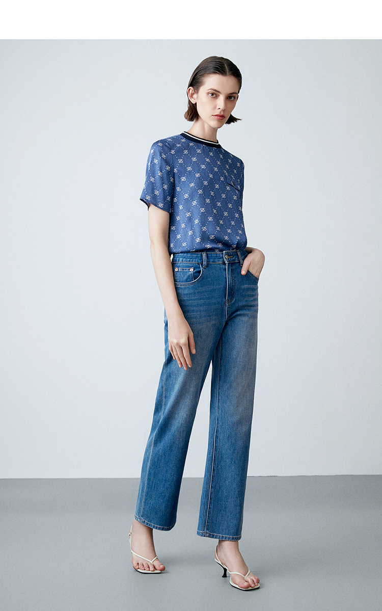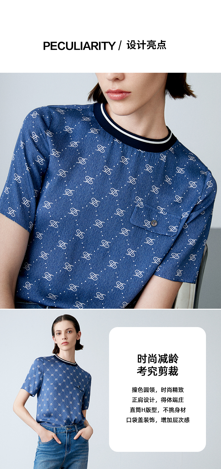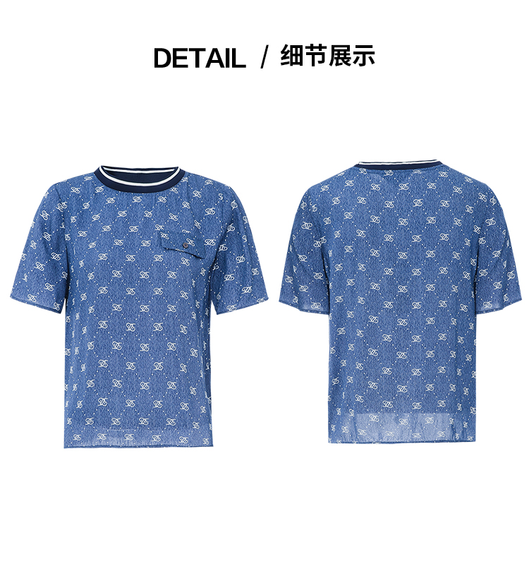 EITIE爱特爱夏季新款修身显瘦百搭印花小上衣7813519
