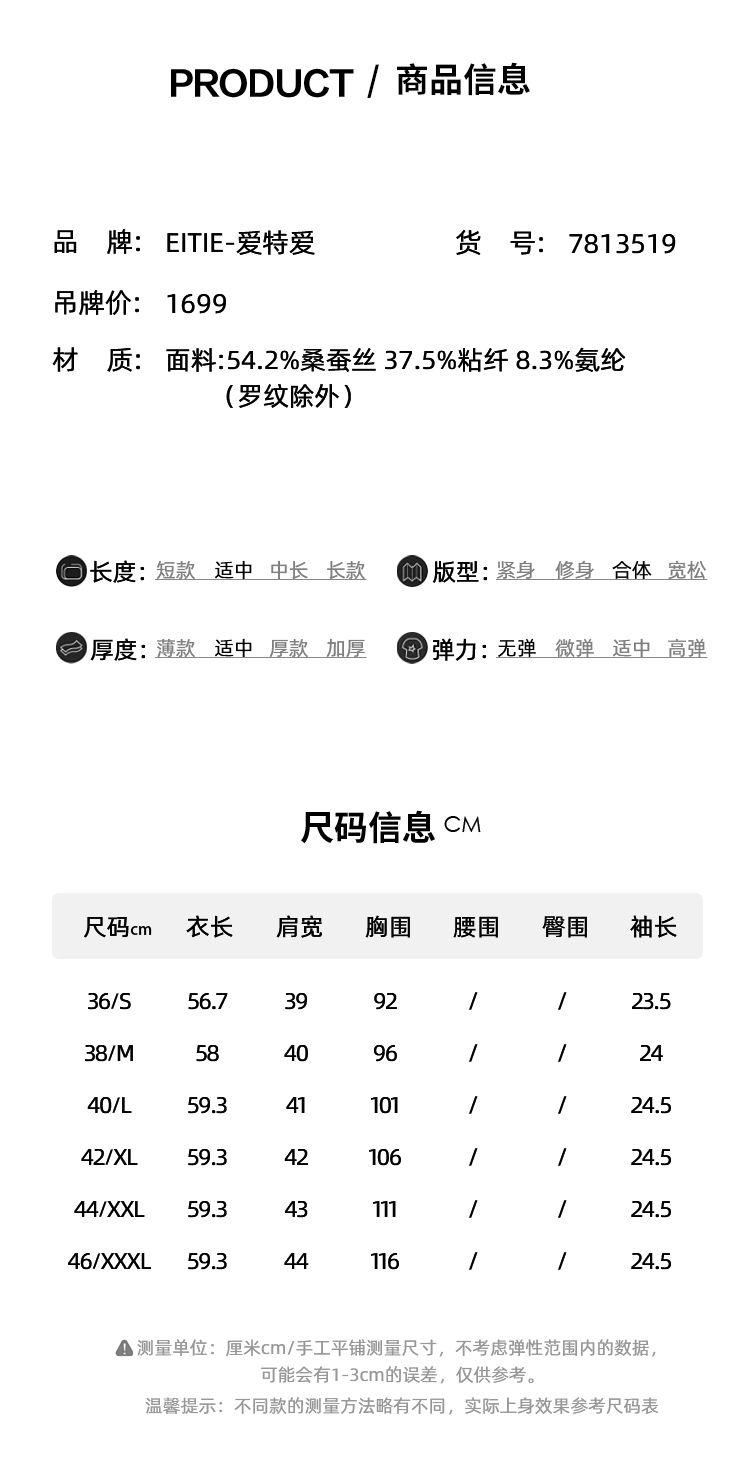 EITIE爱特爱品牌女装冬季修身OL风格长袖纯色针织衫女5801511