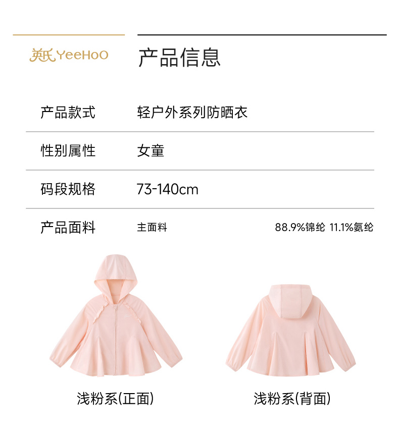 【商场同款】英氏儿童防晒衣夏季2026新款女童宝宝连帽外套防晒服