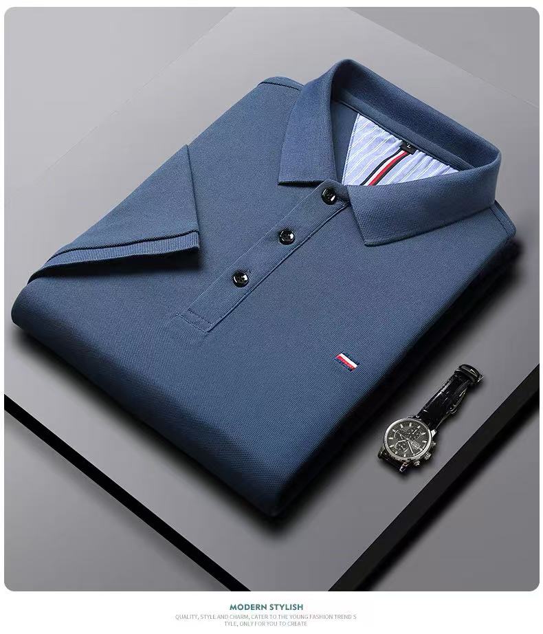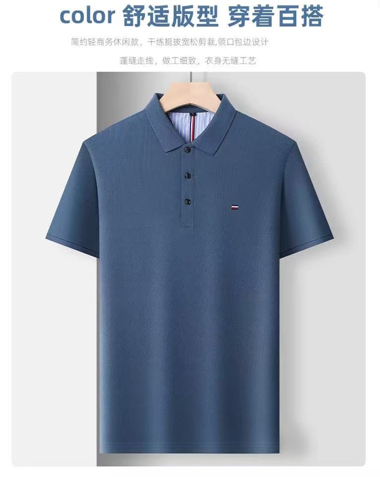 【孤品捡漏】G213男士蓝色翻领短袖T恤-喜出