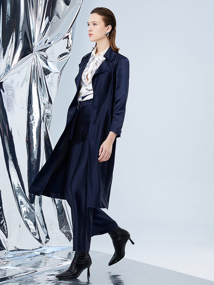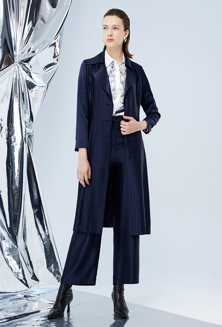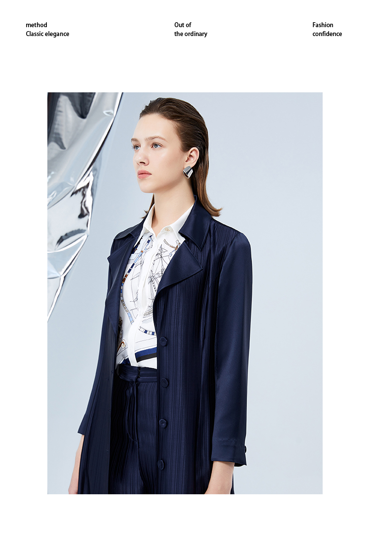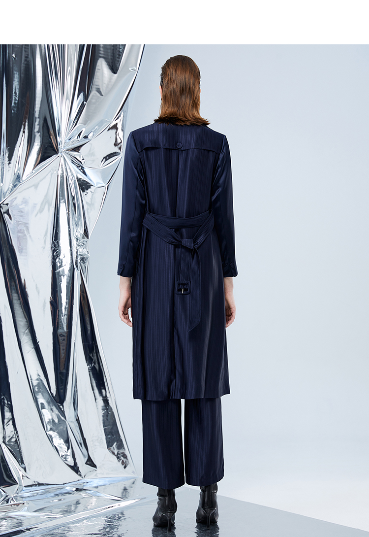 EITIE爱特爱秋款新款简洁系带收腰显瘦通勤纯色风衣7504201
