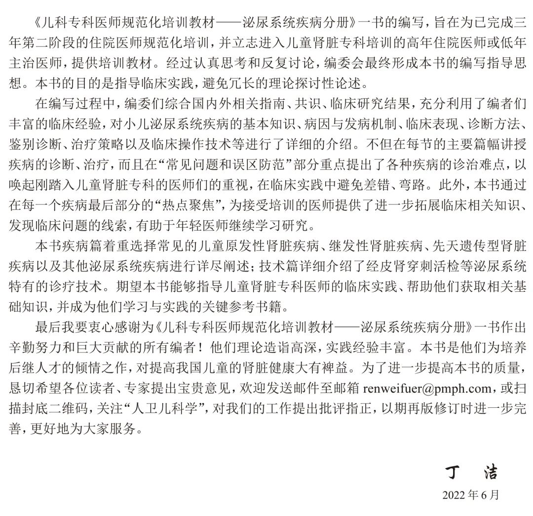1.本书旨在为已完成三年第二阶段的住院医师规范化培训,并立志进入儿童肾脏专科培训的高年住院医师或低年主治医师,提供培训教材。