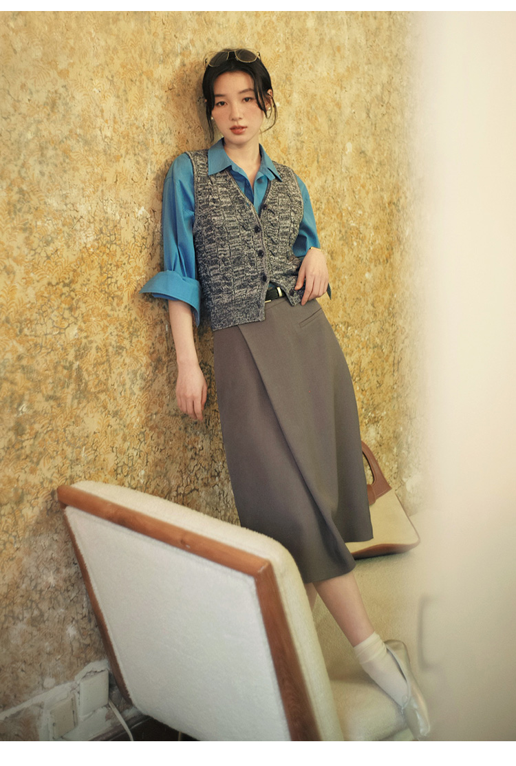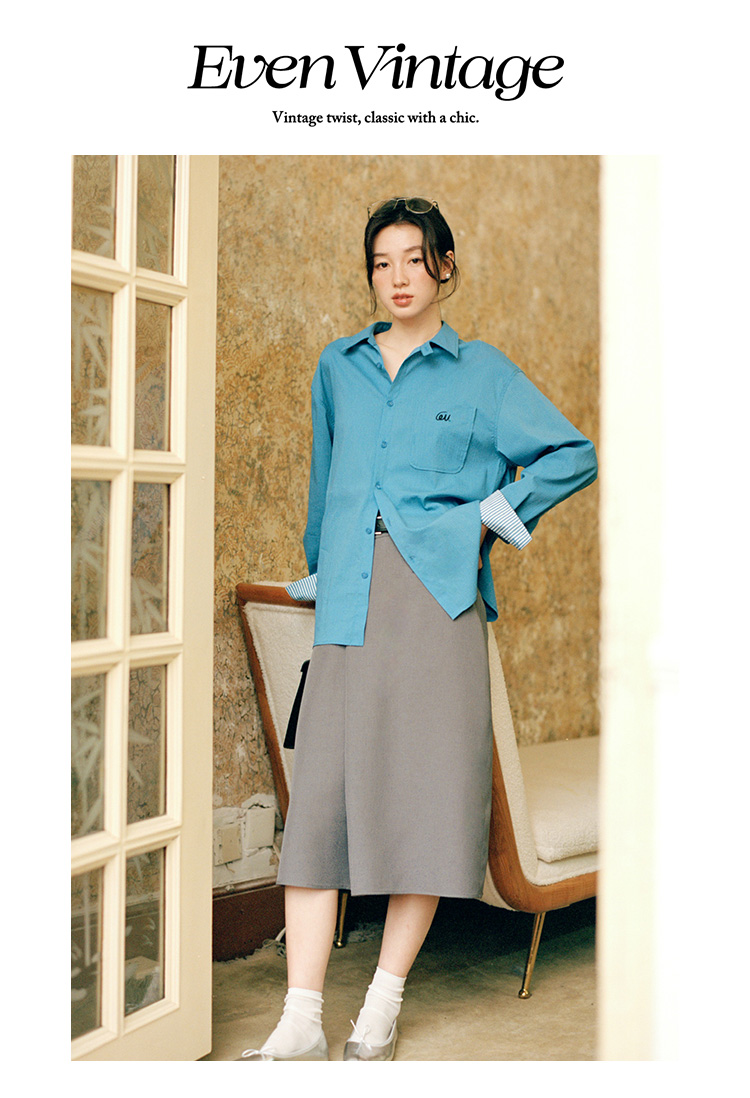 Even Vintage | 百搭高JI感 原创设计A字斜门襟显瘦高腰半身裙女