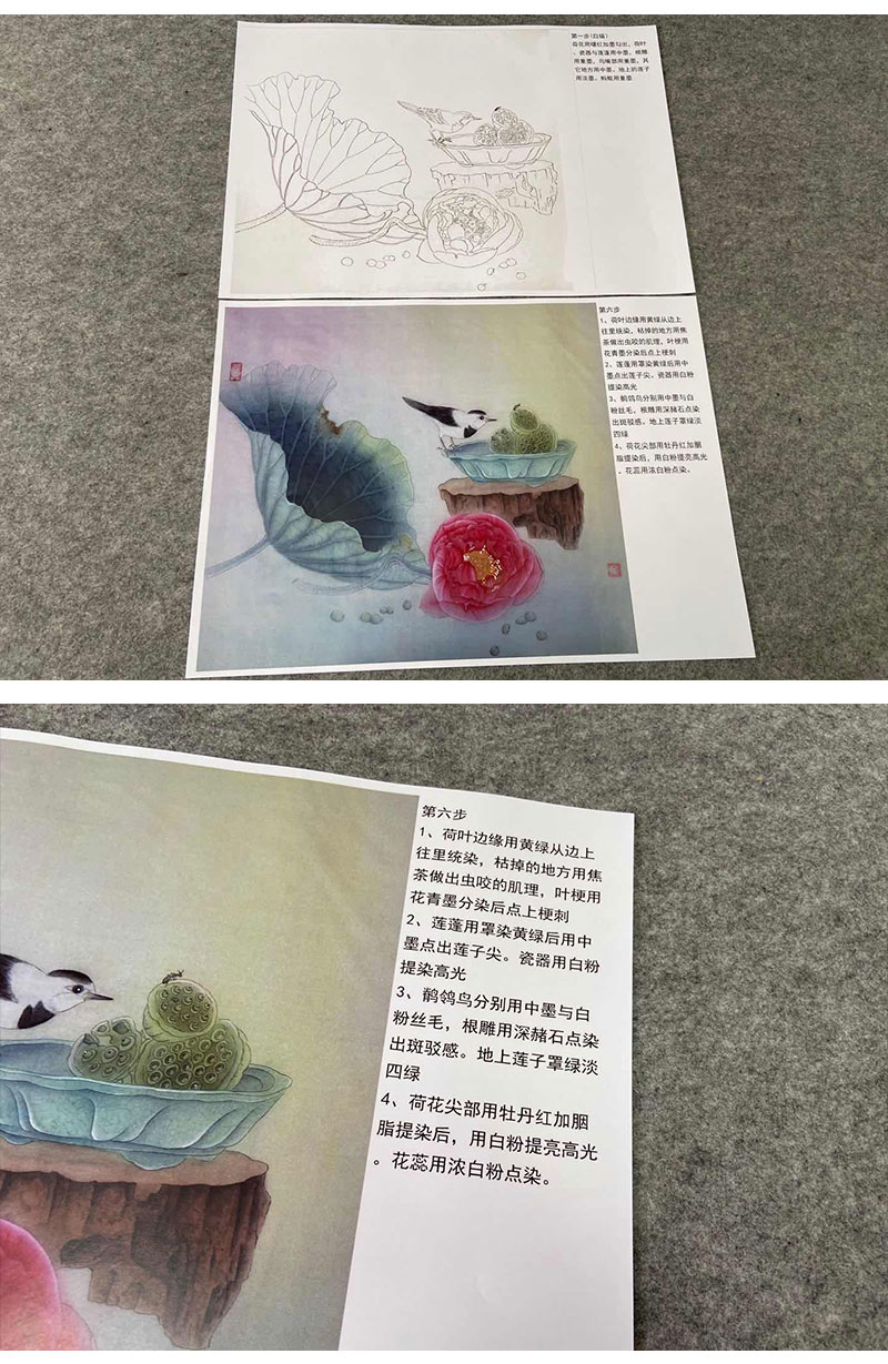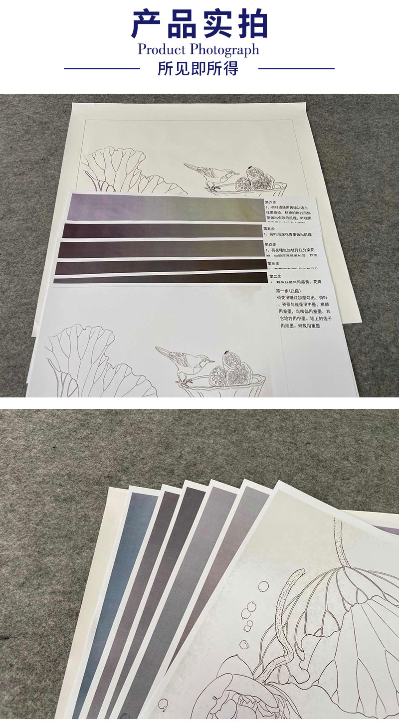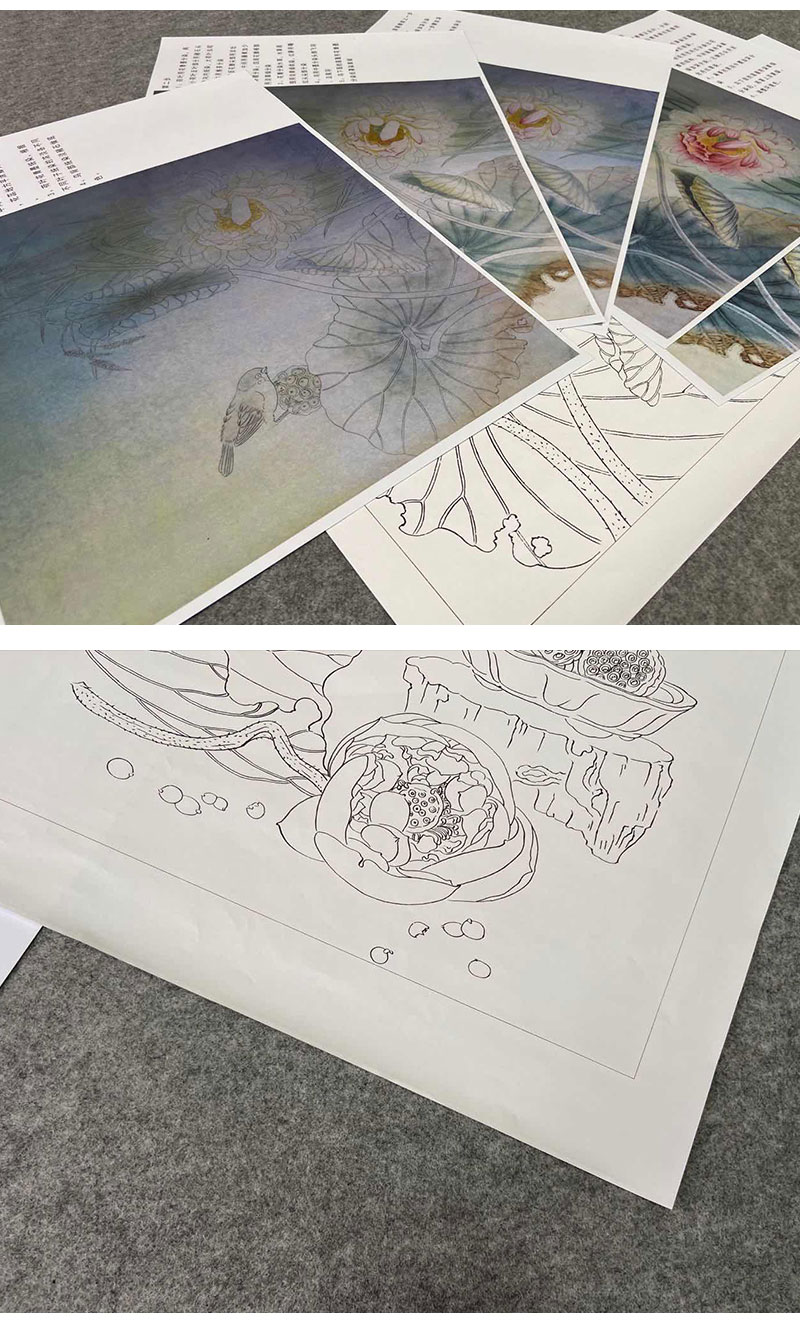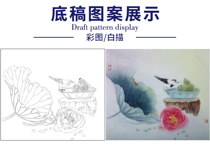 【有步骤、大彩图】杨冬冬工笔画白描底稿斗方小品《一帘清香》荷花鹡鸰鸟初学者临摹花鸟线稿HD43